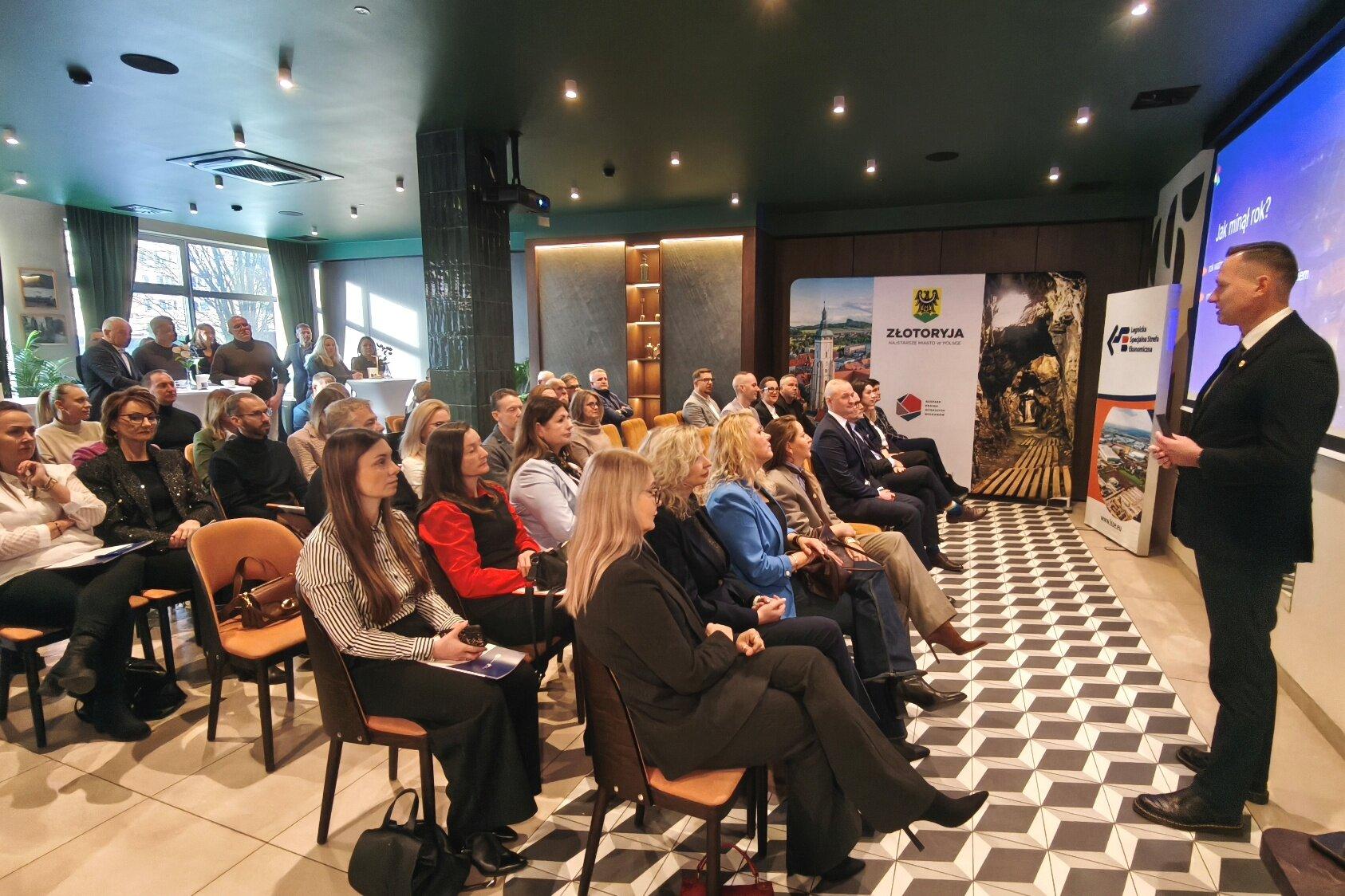 ZŁOTORYJA. To było kolejne na przestrzeni ostatnich kilku lat spotkanie z przedsiębiorcami, ale chyba na żadnym z dotychczasowych liczba uczestników nie dopisała tak jak na dzisiejszym. – Ta frekwencja na sali pokazuje, jak bardzo jest ono ważne, a o jego randze świadczy fakt, że przyjechał do nas cały zarząd Legnickiej Specjalnej Strefy Ekonomicznej – podkreślał burmistrz Paweł Kulig.