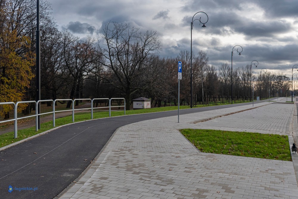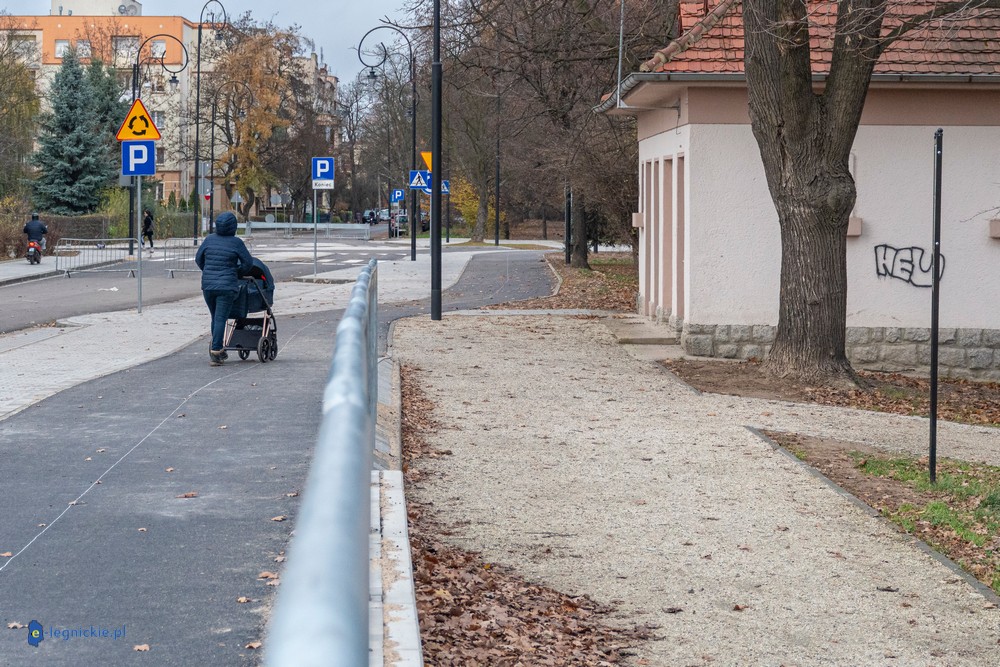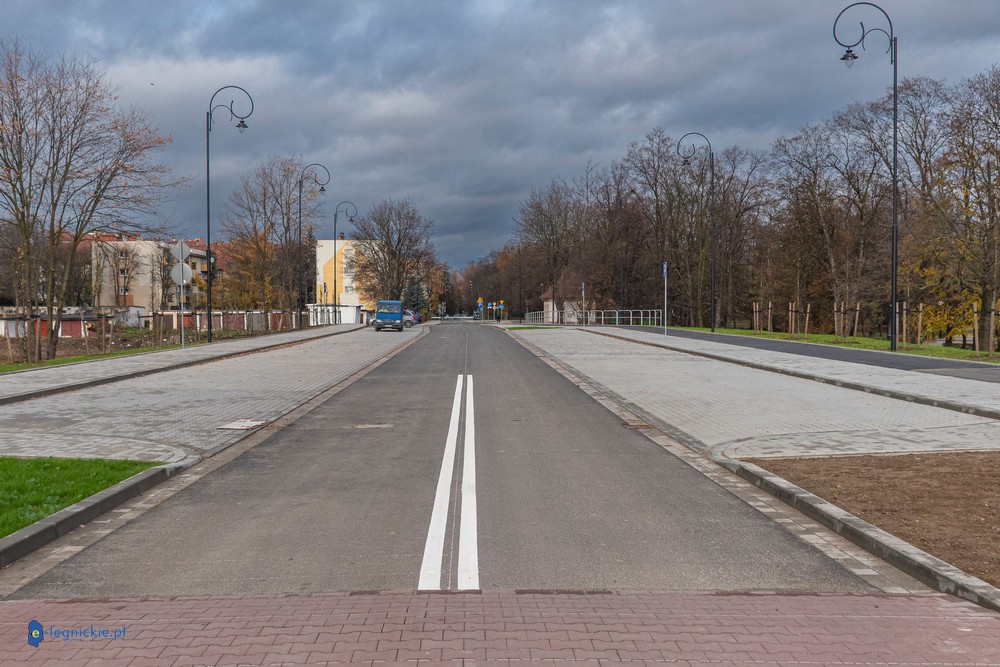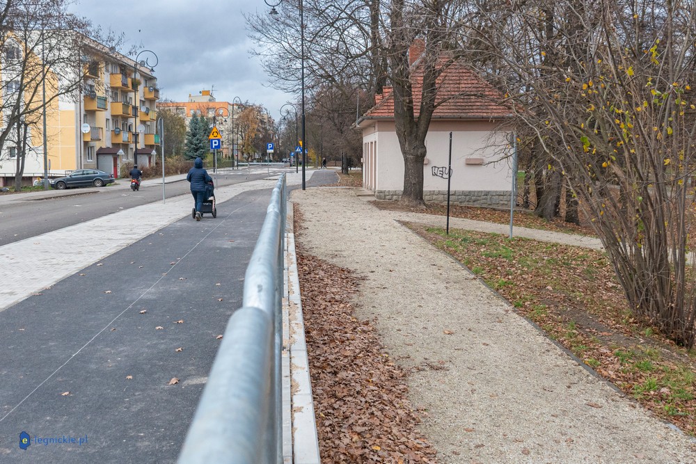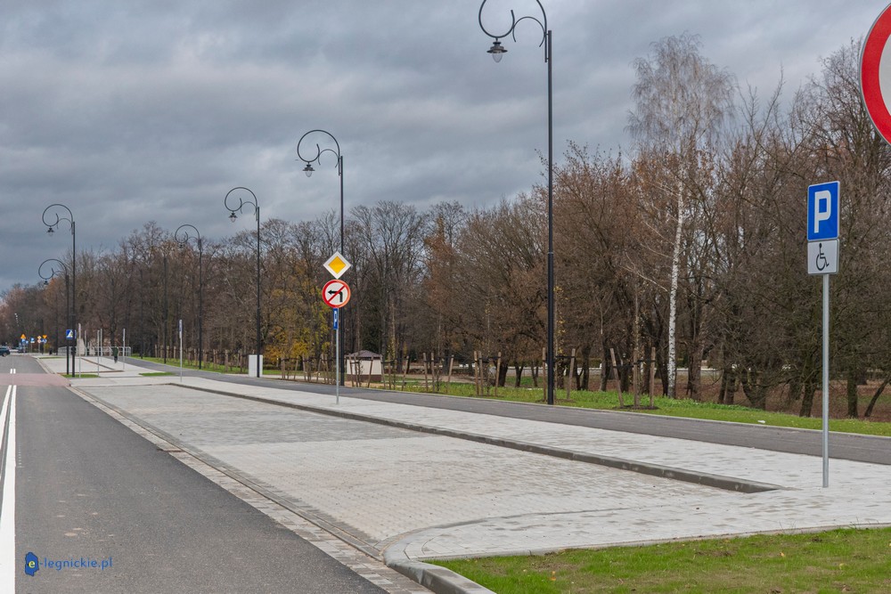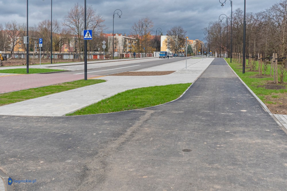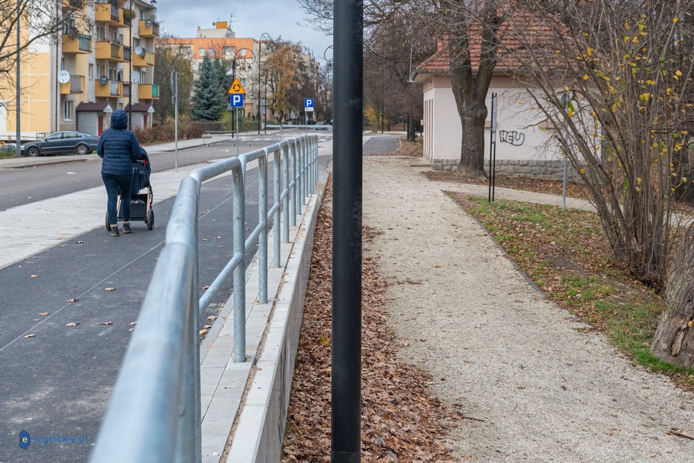 LEGNICA. Budowa ul. Adama Mickiewicza na odcinku od ul. Oświęcimskiej do al. 100-lecia Odzyskania Niepodległości dobiegła końca. W ostatnich tygodniach wykonano chodniki, ścieżkę rowerową, sporo miejsc postojowych oraz nawierzchnię jezdni. Ułożono krawężniki na rondzie przy ul. Oświęcimskiej, na samej ul. Oświęcimskiej oraz w kierunku skrzyżowania z ul. Traugutta. Gotowa jest również sieć kanalizacji deszczowej. Co ważne, po uwagach na etapie realizacji inwestycji, powstaje także ścieżka - wejście do parku, w połowie odcinka nowej ulicy.