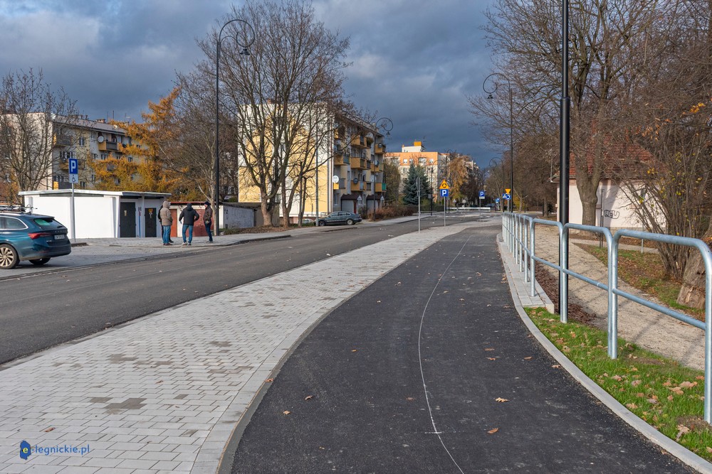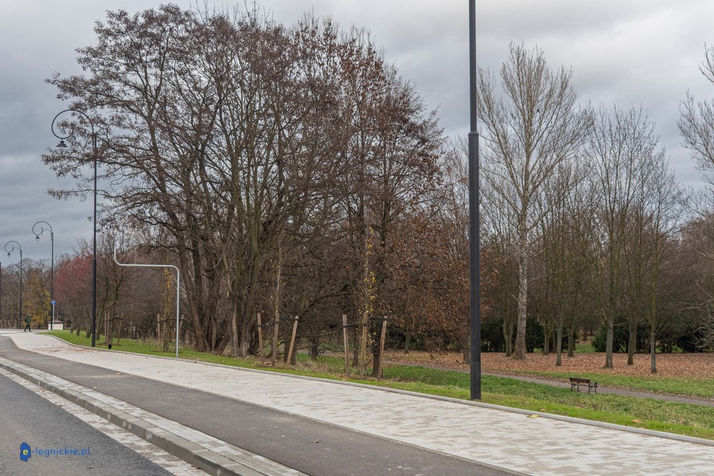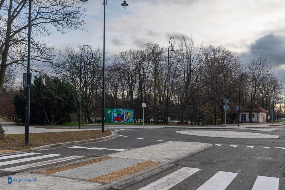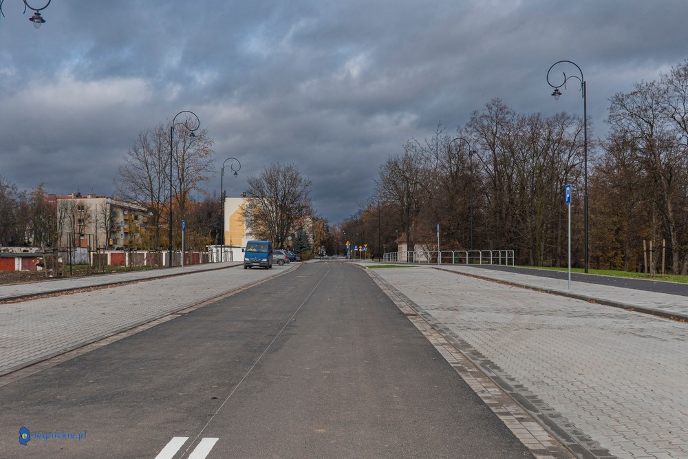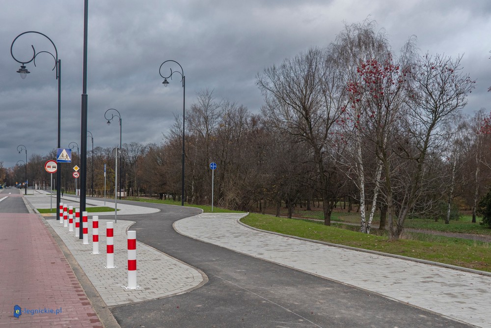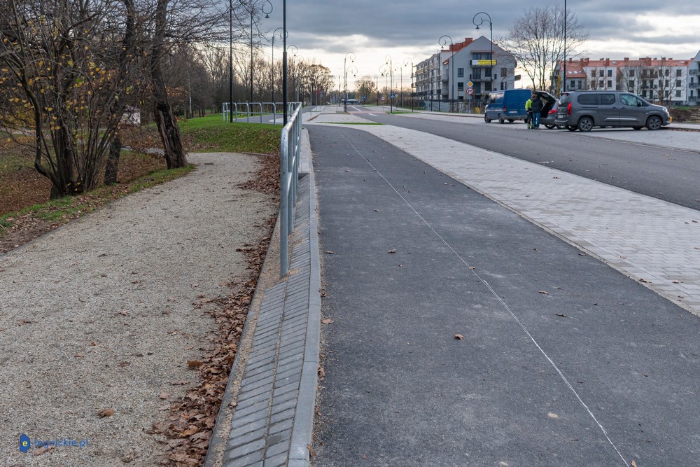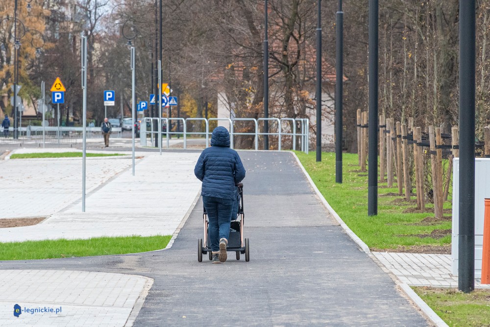 LEGNICA. Budowa ul. Adama Mickiewicza na odcinku od ul. Oświęcimskiej do al. 100-lecia Odzyskania Niepodległości dobiegła końca. W ostatnich tygodniach wykonano chodniki, ścieżkę rowerową, sporo miejsc postojowych oraz nawierzchnię jezdni. Ułożono krawężniki na rondzie przy ul. Oświęcimskiej, na samej ul. Oświęcimskiej oraz w kierunku skrzyżowania z ul. Traugutta. Gotowa jest również sieć kanalizacji deszczowej. Co ważne, po uwagach na etapie realizacji inwestycji, powstaje także ścieżka - wejście do parku, w połowie odcinka nowej ulicy.