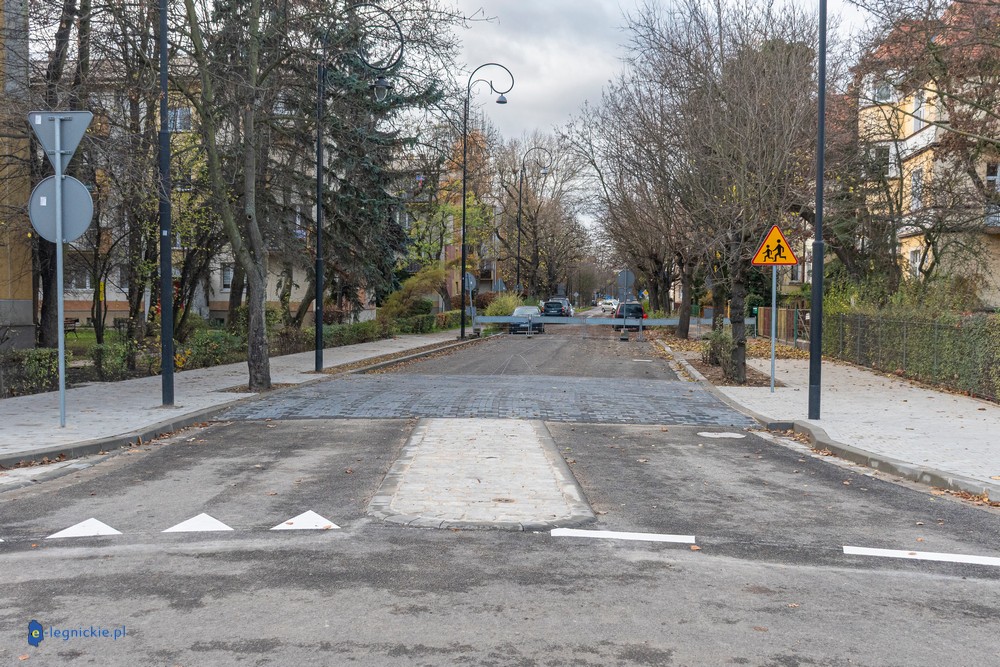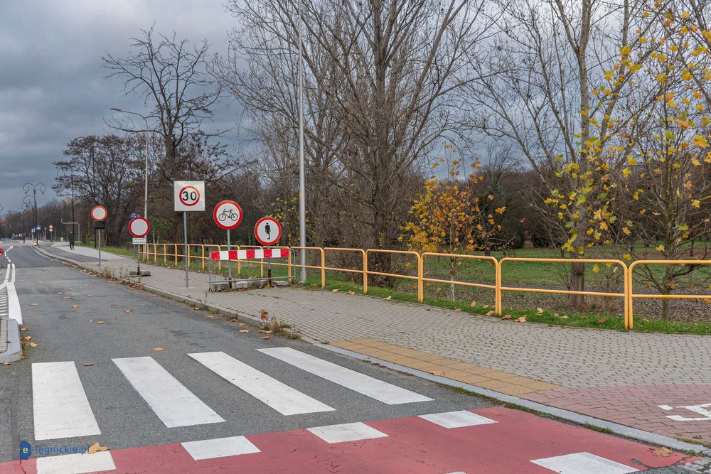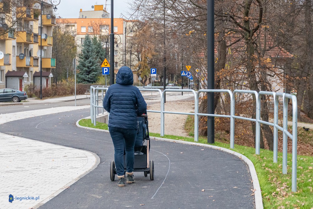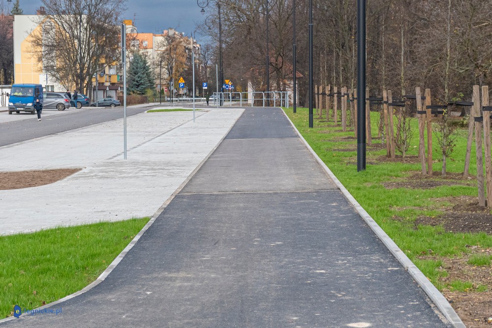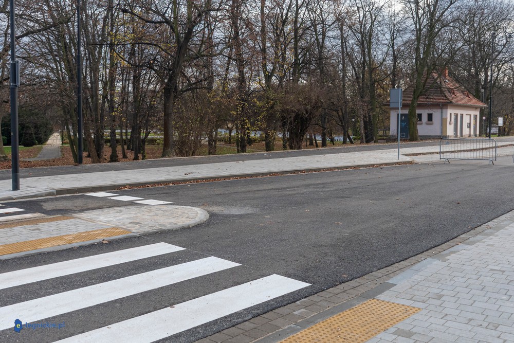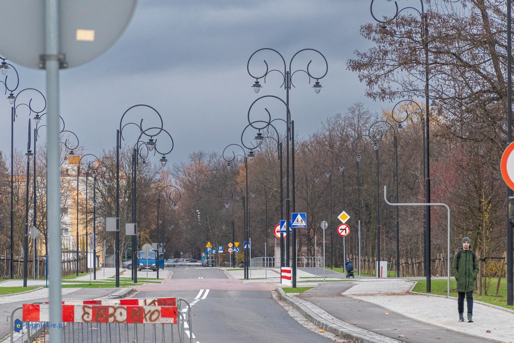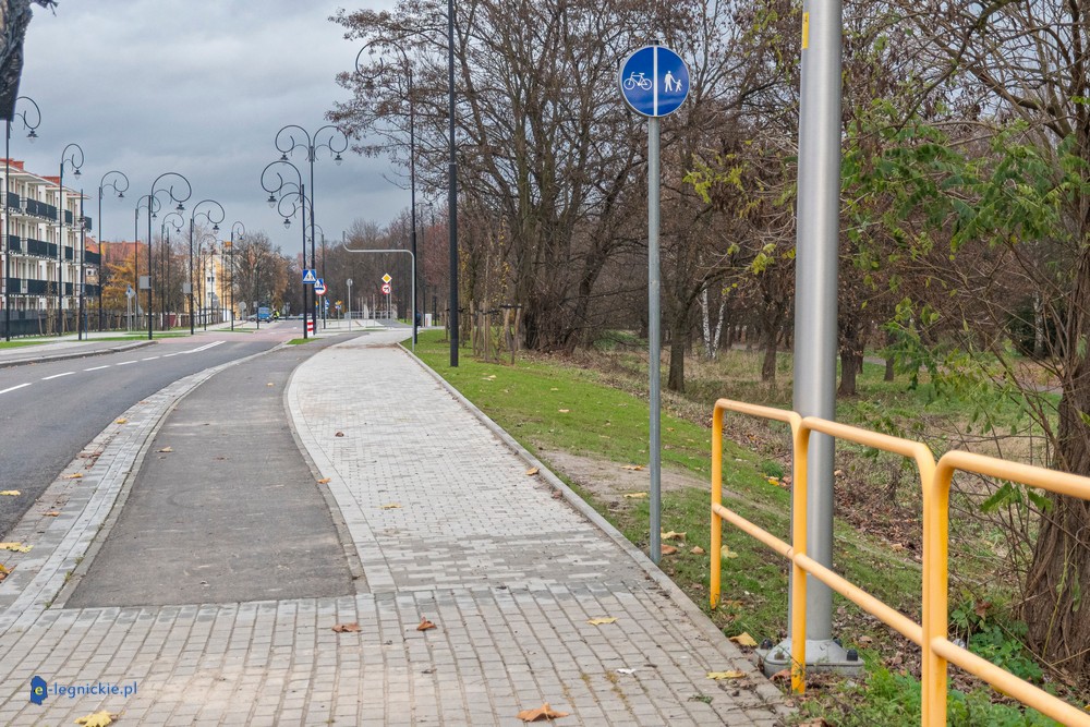 LEGNICA. Budowa ul. Adama Mickiewicza na odcinku od ul. Oświęcimskiej do al. 100-lecia Odzyskania Niepodległości dobiegła końca. W ostatnich tygodniach wykonano chodniki, ścieżkę rowerową, sporo miejsc postojowych oraz nawierzchnię jezdni. Ułożono krawężniki na rondzie przy ul. Oświęcimskiej, na samej ul. Oświęcimskiej oraz w kierunku skrzyżowania z ul. Traugutta. Gotowa jest również sieć kanalizacji deszczowej. Co ważne, po uwagach na etapie realizacji inwestycji, powstaje także ścieżka - wejście do parku, w połowie odcinka nowej ulicy.