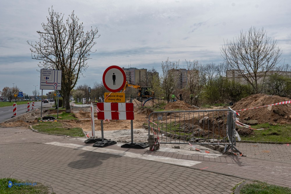 Prace prowadzone są także poza samym terenem inwestycji. Od około półtora miesiąca wyłączony z użytkowania jest odcinek chodnika i ścieżki rowerowej wzdłuż ul. Sikorskiego – od przystanku przy kościele pw. Podwyższenia Krzyża Świętego do ronda Niepodległości. Trwa tam przebudowa infrastruktury pieszo-rowerowej, która jest niezbędna, ponieważ wjazd i wyjazd do żłobka będą zlokalizowane właśnie od tej strony.