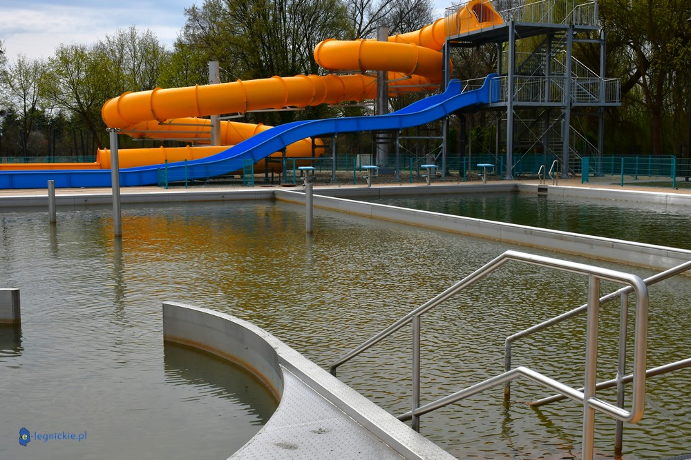 Powstały obiekty techniczne: pomieszczenia szatniowe, sanitariaty oraz kasy. Już z daleka widać wyniesioną konstrukcję zjeżdżalni, których wcześniej na ścinawskim basenie nie było, żółta rurowa oraz niebieska, płaska i falista w swej górnej części są już zmontowane. Na terenie odkrytej pływalni trwają obecnie, zlecone poza głównym kontraktem, dodatkowe prace, dotyczą one m.in.: rewitalizacji pergoli.