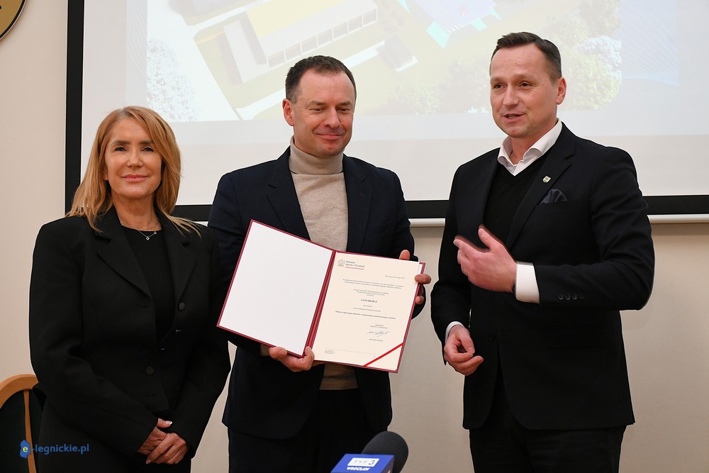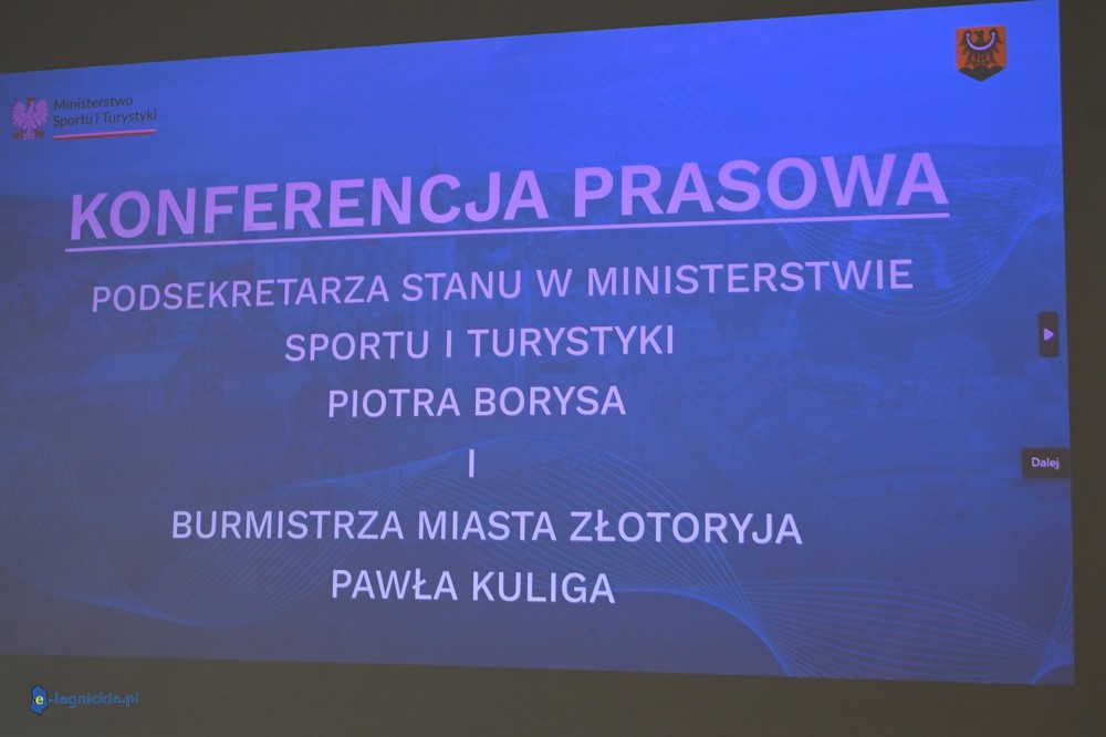 ZŁOTORYJA. W Urzędzie Miejskim w Złotoryi odbył się briefing prasowy poświęcony rządowemu dofinansowaniu budowy lodowiska w mieście. W wydarzeniu wzięli udział Sekretarz Stanu w Ministerstwie Sportu i Turystyki Piotr Borys, Burmistrz Miasta Złotoryja Paweł Kulig oraz Poseł na Sejm RP Iwona Krawczyk.
