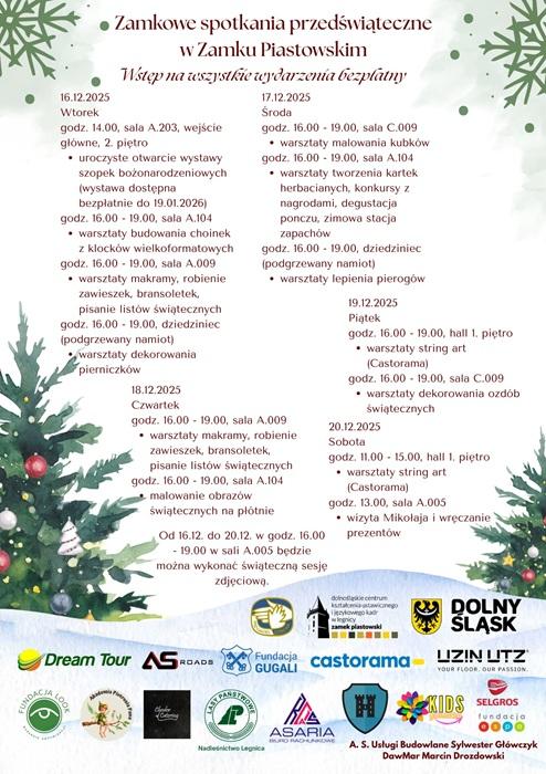 LEGNICA. Zapraszamy na świąteczne warsztaty dla dzieci na Zamku Piastowskim. Warsztaty odbędą się w dniach 16-20 grudnia 2025 r.