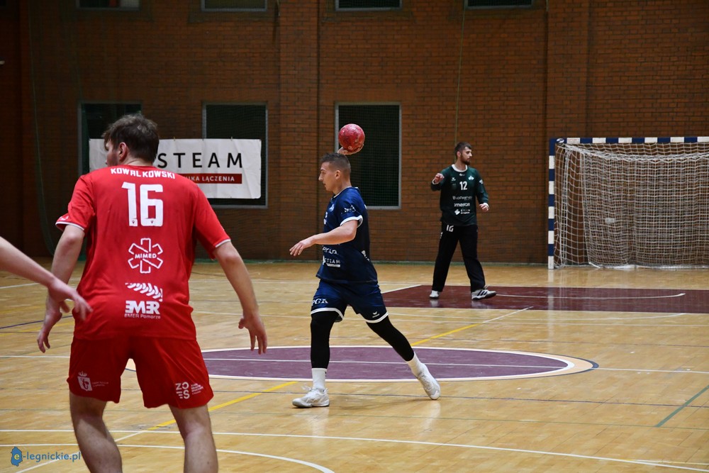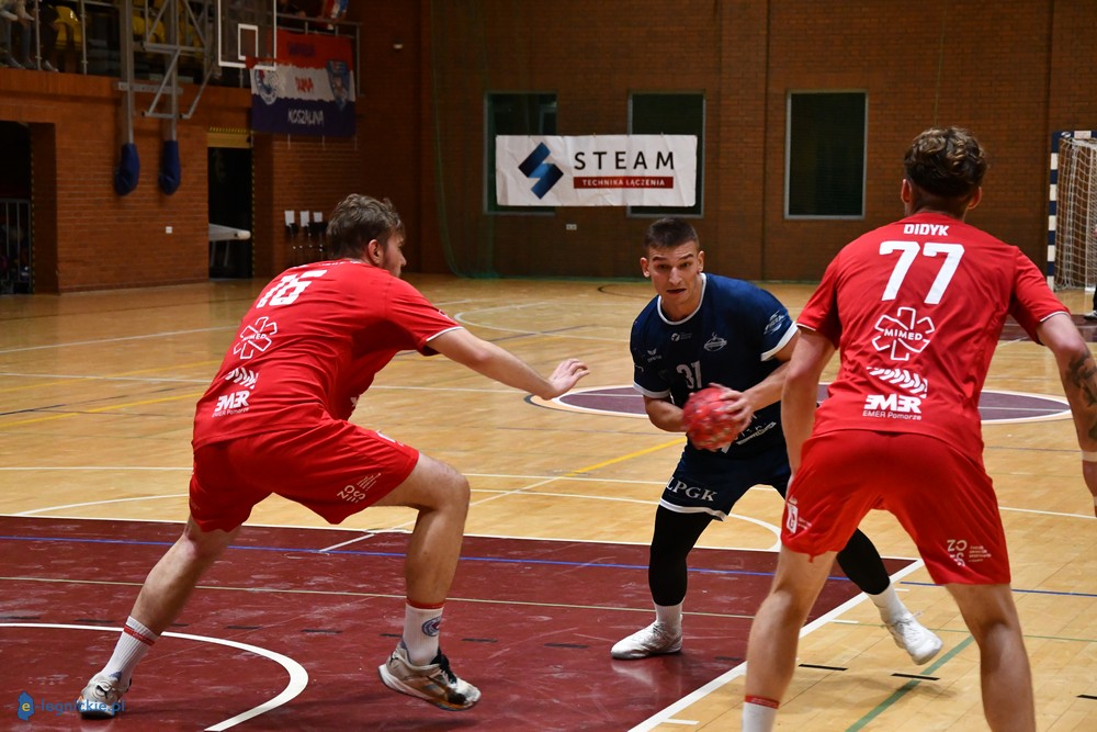Początku sezonu w lidze centralnej legniczanie nie mieli najlepszego, bo przegrali pierwsze cztery kolejki. Pierwsze zwycięstwo przyszło w 5. serii spotkań. Była to wygrana zdecydowanie zasłużona, choć jeszcze w pierwszej połowie potyczka była wyrównana. Znacznie lepiej Siódemce poszło w drugiej odsłonie. Podopieczni Tomasza Górecznego nie tylko byli skuteczni w ataku, ale lepiej radzili sobie też w obronie. Na dodatek poza interwencjami bramkarza Maksyma Lobczuka dobrze na karne wychodził Piotr Śliwiński, który miał patent na rzucających z Koszalina.