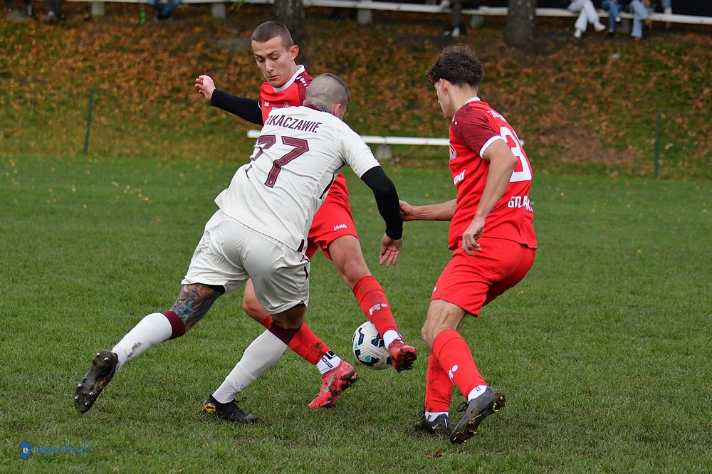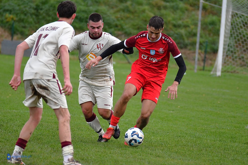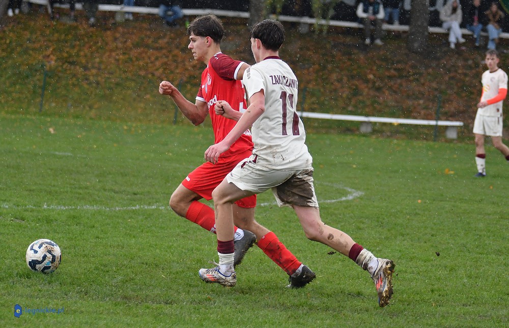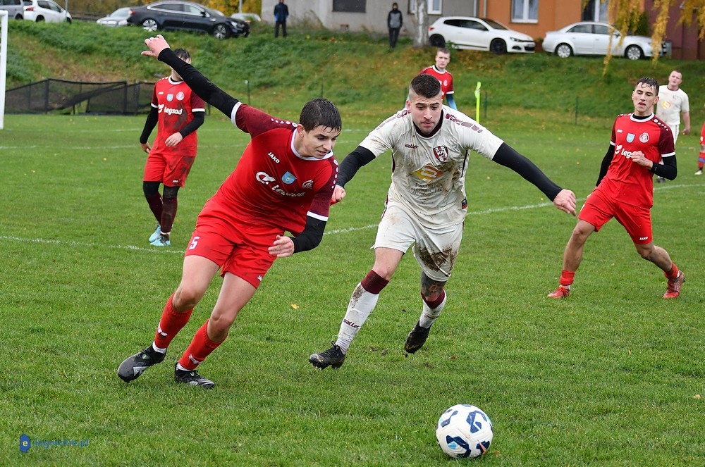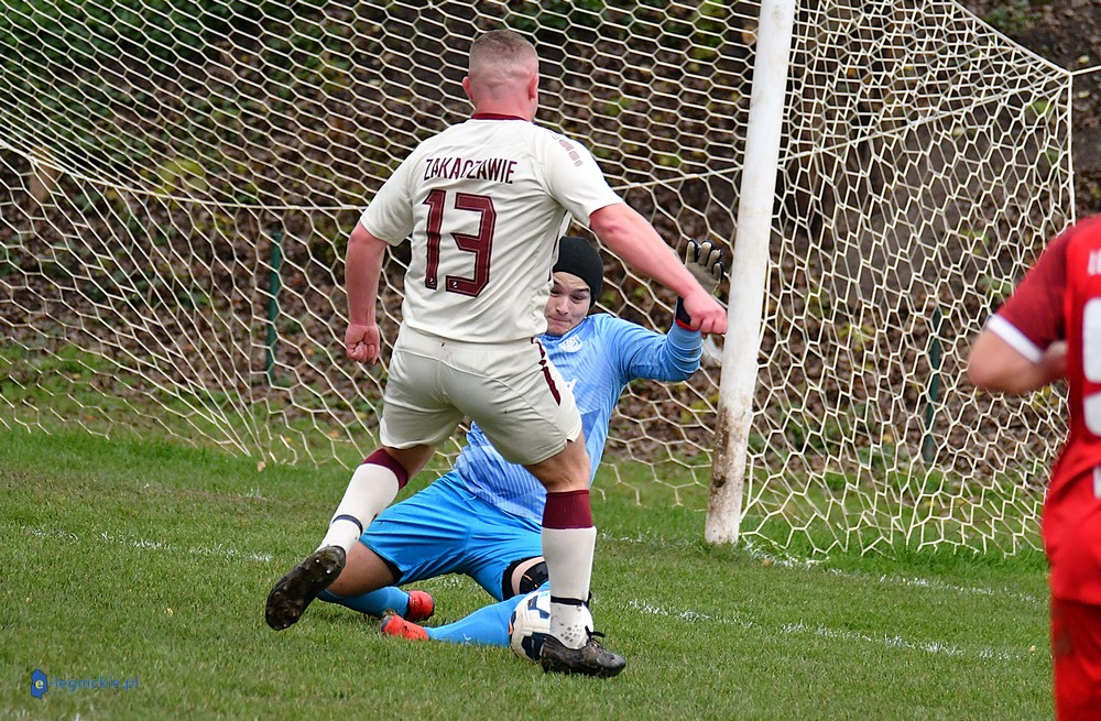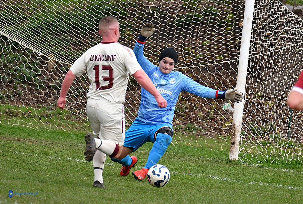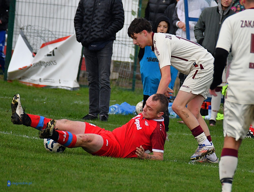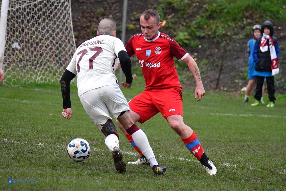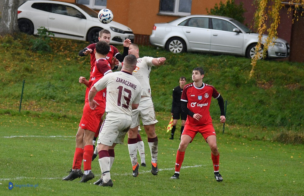 Zacznijmy od pokonanych. To fajna sprawa, że beniaminek 4 ligi dba o młodzież w swoim klubie i o tzw. zaplecze. No i drużyna pod wodzą młodego szkoleniowca którym jest Daniel MATYSIAK czyni systematyczne postępy, i z pewnością już w tym sezonie w silnej grupie B-klasy zamelduje się na ligowym podium za mocarzami jakimi są Zakaczawie , Rycerz Legnickie Pole czy Krokus Kwiatkowice. W zespole gra kilku zawodników dla których kwestią czasu i wylanego potu na treningach jest sprawa zameldowania się w szeregach pierwszego LegSadu. Dzisiaj Zakaczawiu wysoko zawiesili poprzeczkę i pokazali kawał solidnego, jak na ten poziom rozgrywek, futbolu...