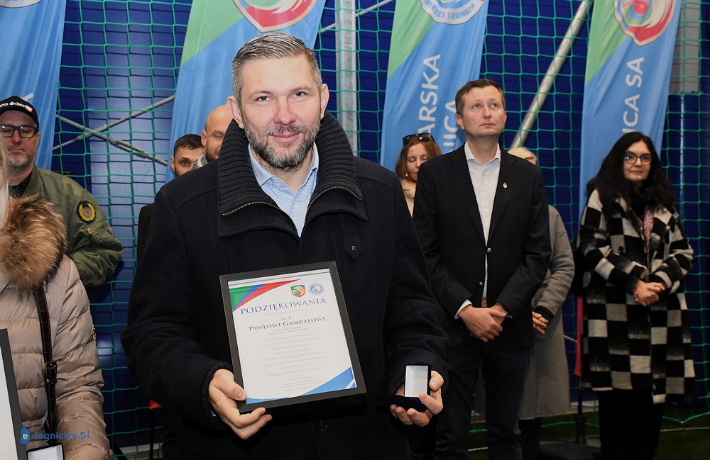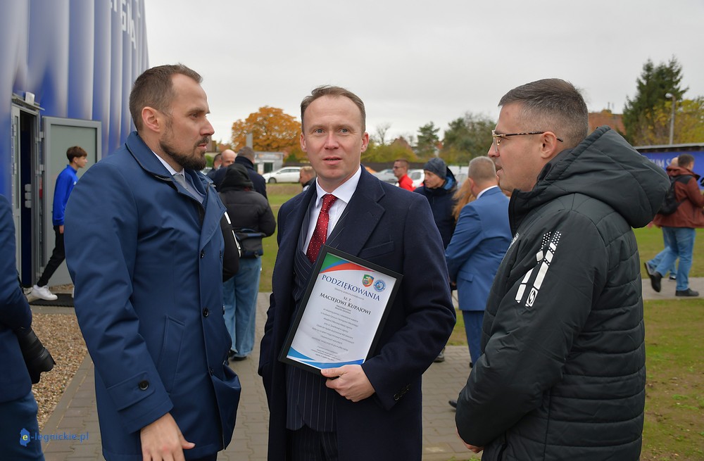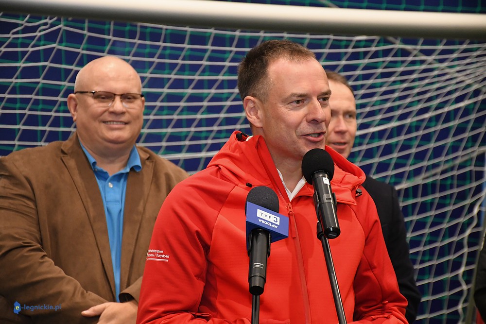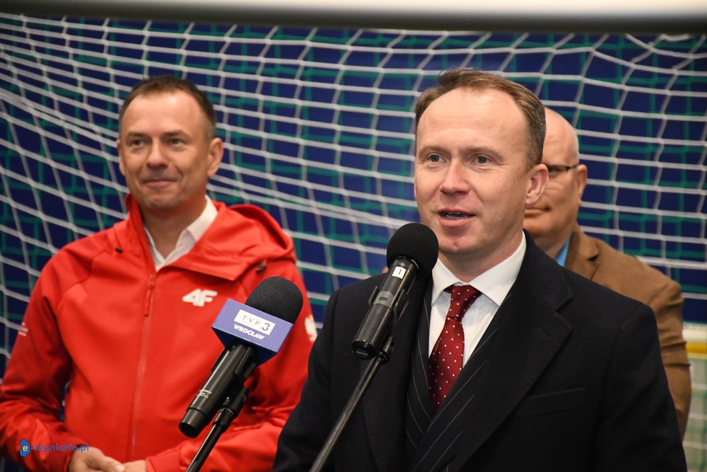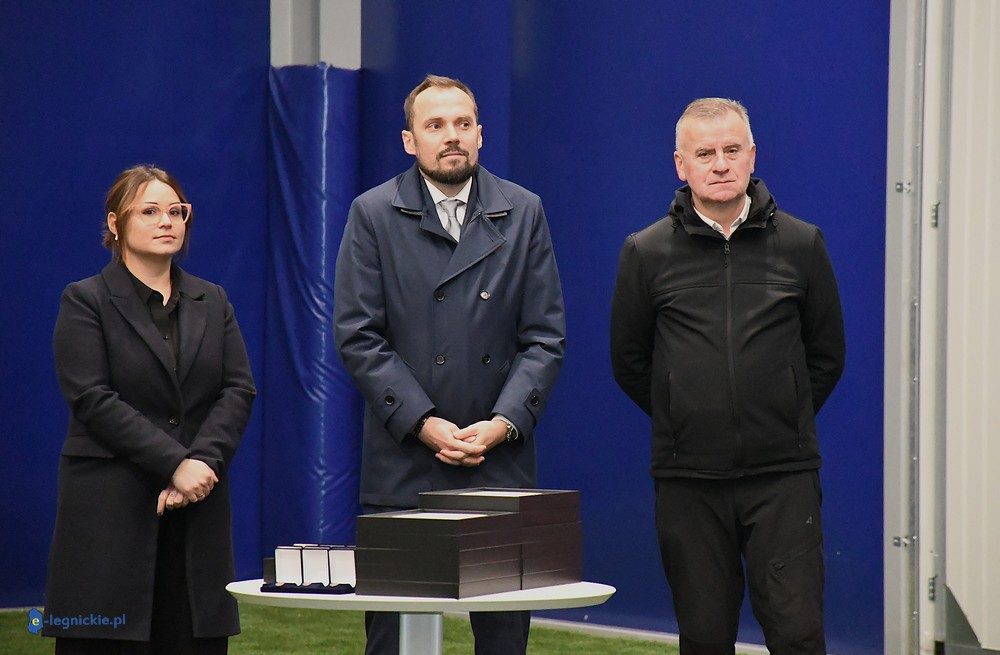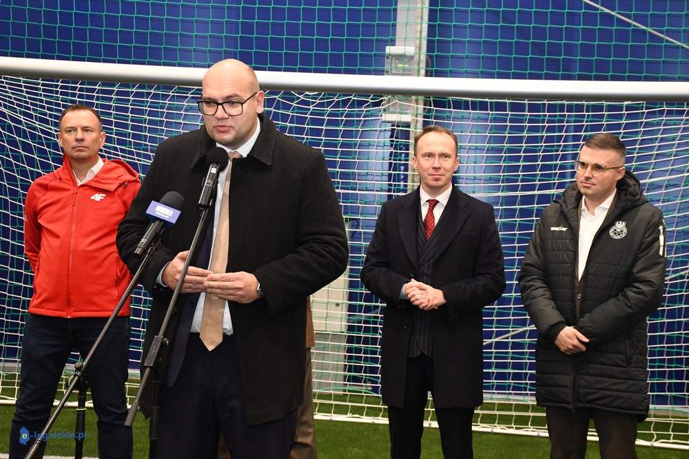 Piotr OCHOCKI, właściciel firmy BUD - ZIEM. - Inwestycja trwała prawie 2 lata ale z efektu końcowego trudno nie być zadowolonym. Trzy boiska i zwłaszcza boisko w hali robi wrażenie. Od razu uprzedzę, że latem ten obiekt pod dachem nie będzie "parownikiem". Zostaje dach a boki hali są rozsuwane i z pewnością żaden piłkarz nie zaparzy się trenując czy grając mecze. Element hali był najdroższym elementem inwestycji , kosztował ponad 4,5 mln złotych ale jego uniwersalność sprawi , że baza Akademii Piłkarskiej Miedzi zyska na jakości i to bardzo. Dla nas partnerem w realizacji inwestycji była Miedź Legnica i z tego miejsca chciałbym podziękować klubowi, Spółce Akcyjnej za bardzo, ale to bardzo profesjonalną współpracę w realizacji inwestycji. Życzyłbym sobie wszędzie mieć taki partnerów przy moich kolejnych inwestycjach.