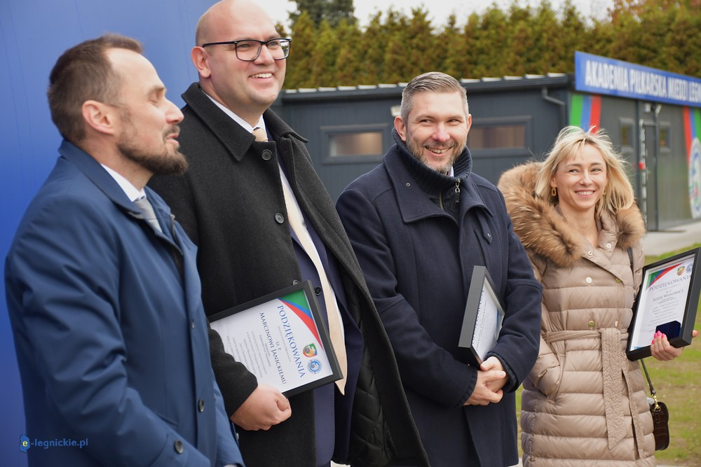 LEGNICA. "...kiedyś było ściernisko a obecnie jest...". Może nie San Francisco ale z pewnością obiekt Akademii Piłkarskiej Miedzi Legnica,którym można pochwalić się w ekstraklasie czy na arenie międzynarodowej. Z udziałem ministra sportu, posła Piotra BORYSA, właściciela Miedzi Andrzeja DADEŁŁO, prezydenta Legnicy Macieja KUPAJA, Marcina JANICKIEGO, prezesa Pierwszej Ligi Piłkarskiej oraz Łukasza CZAJKOWSKUEGO, prezesa Dolnośląskiego Związku Piłki Nożnej uroczyście oddano do użytku Centrum Treningowe "Świerkowa Arena" Akademii Piłkarskiej Miedzi Legnica.