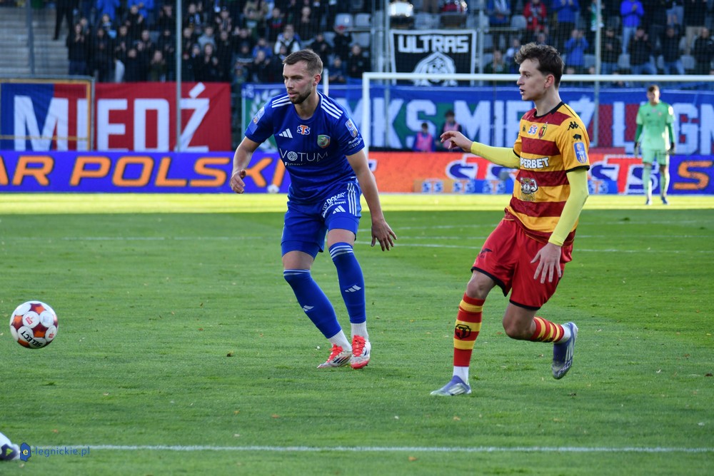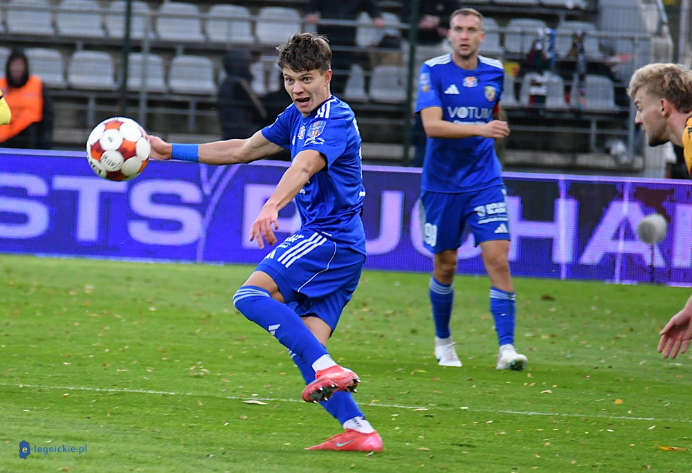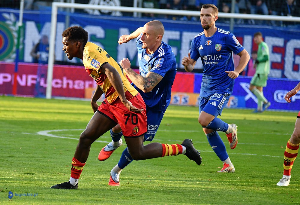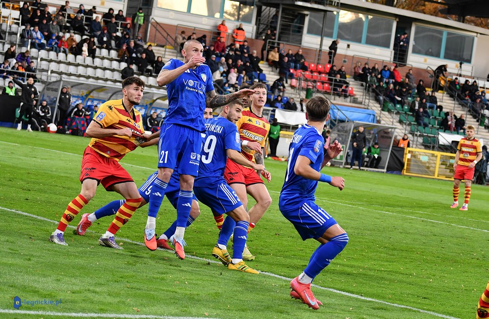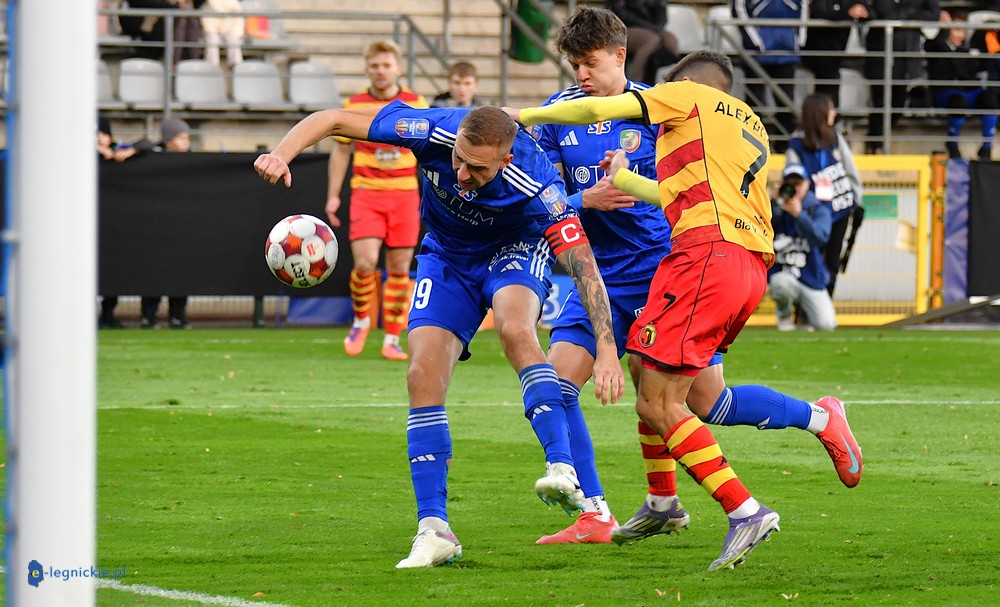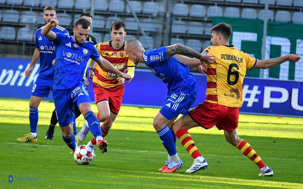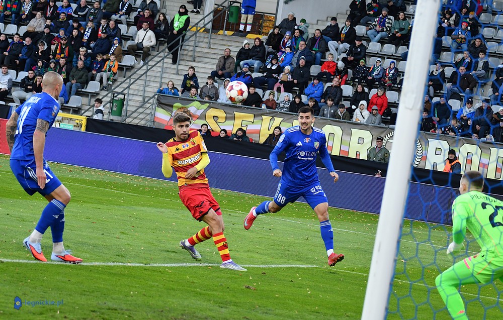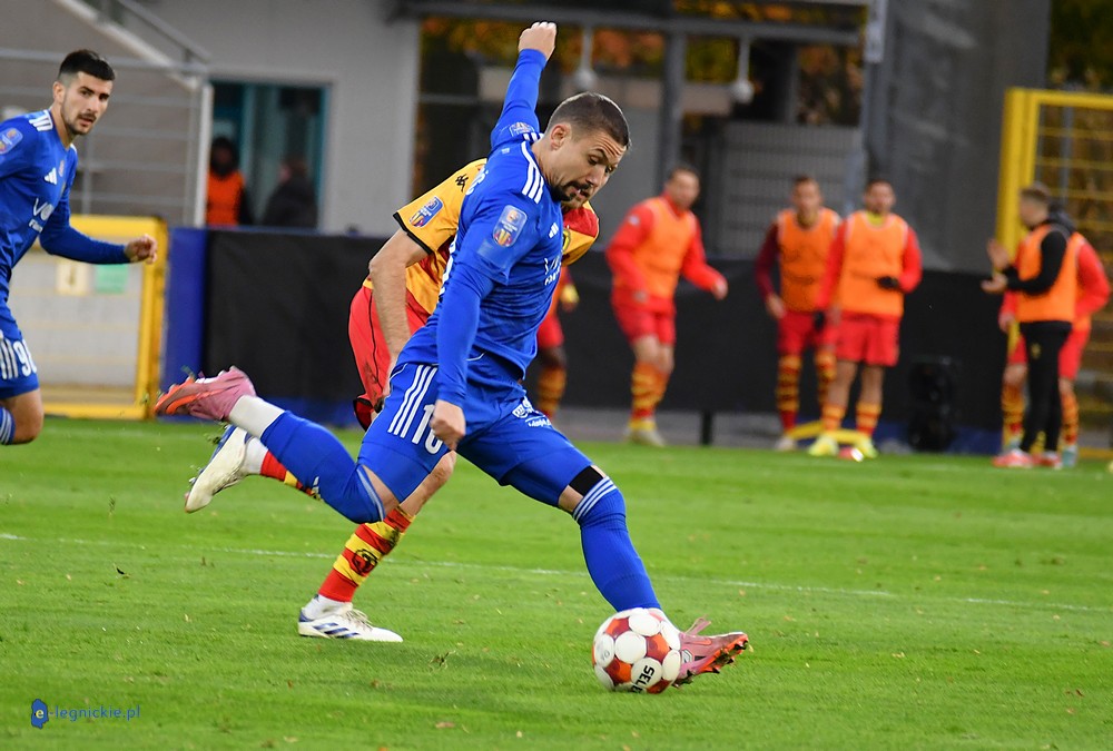 Legniczanie zdołali wyrównać w 36. minucie, kiedy Kamil Antonik uderzył głową i piłka jeszcze odbiła się od Alejandro Pozo i wpadła do siatki.