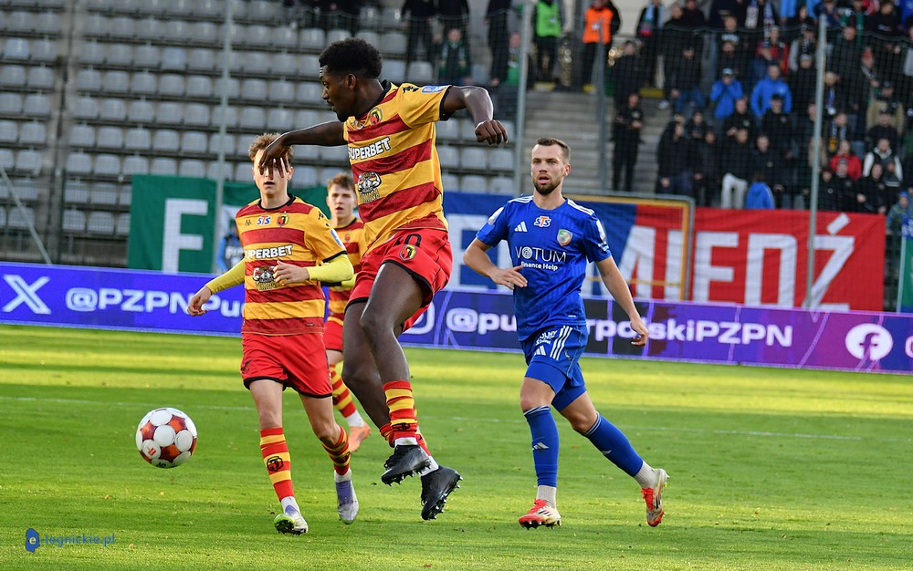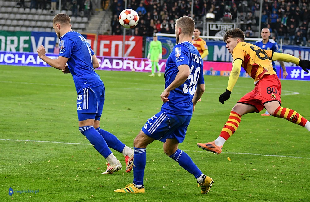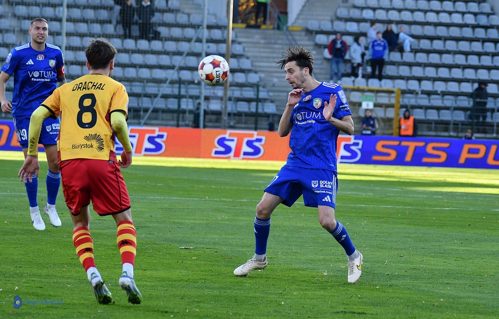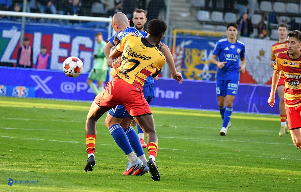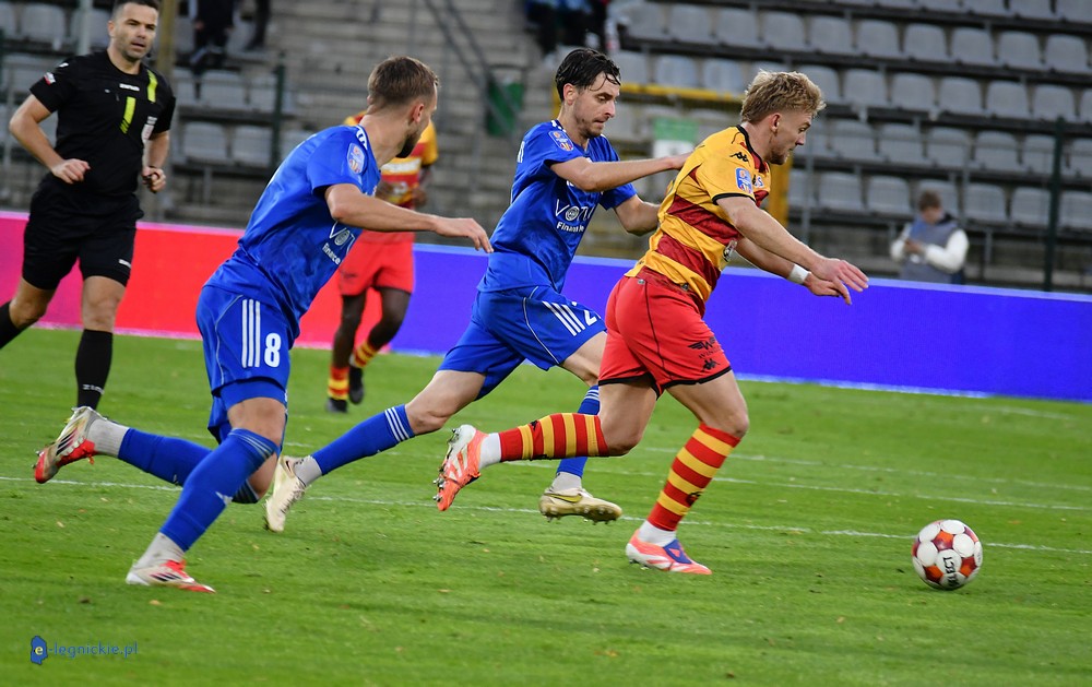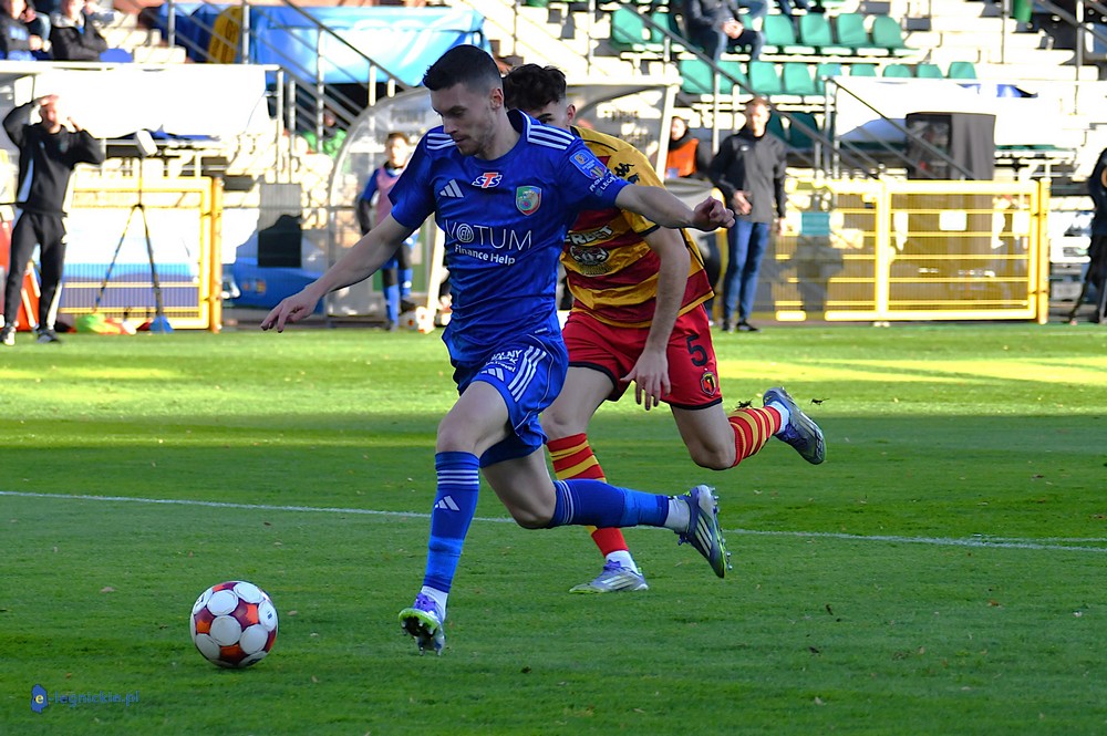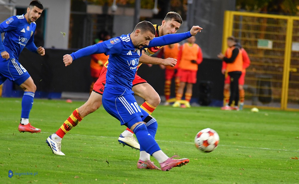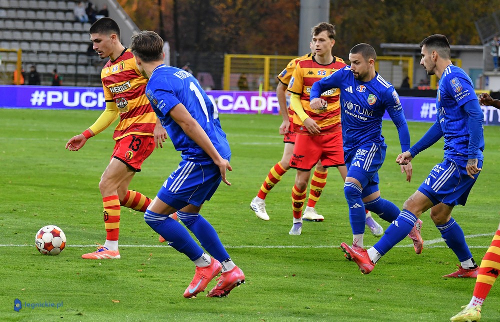 Legniczanie zdołali wyrównać w 36. minucie, kiedy Kamil Antonik uderzył głową i piłka jeszcze odbiła się od Alejandro Pozo i wpadła do siatki.