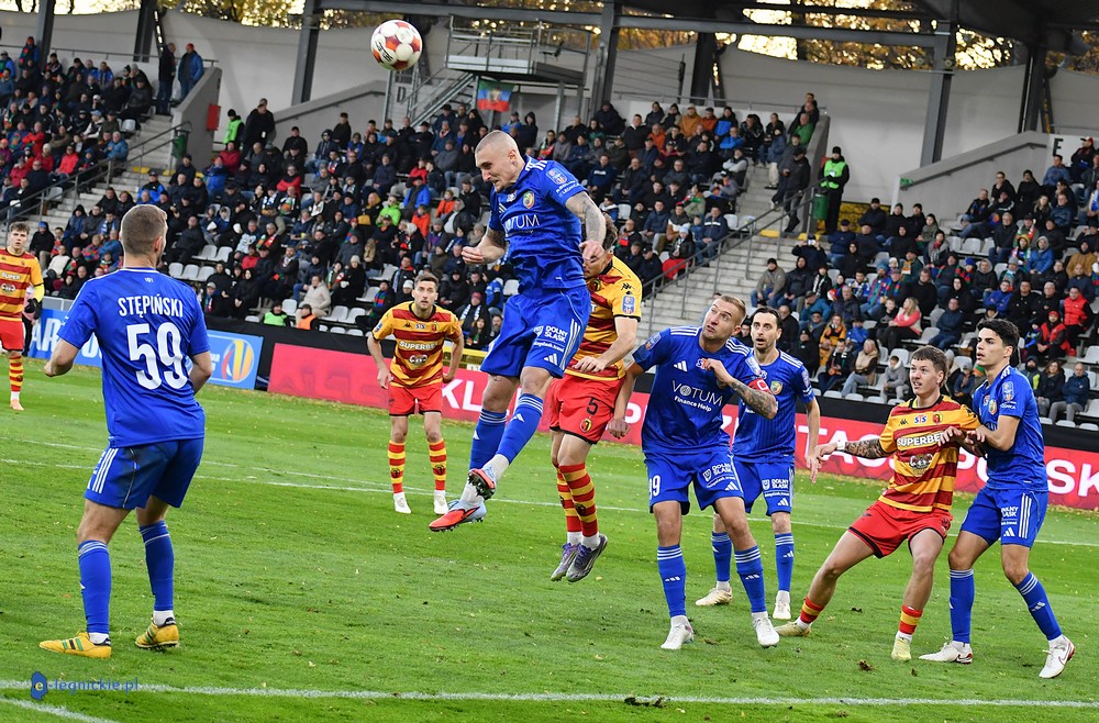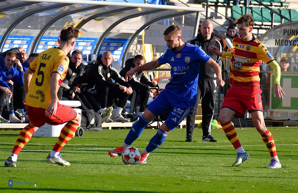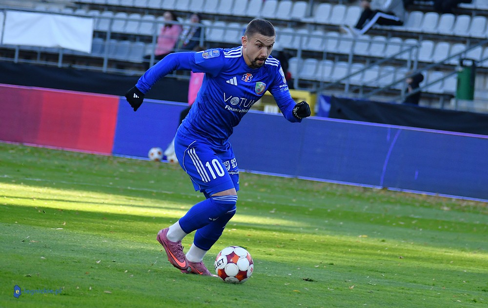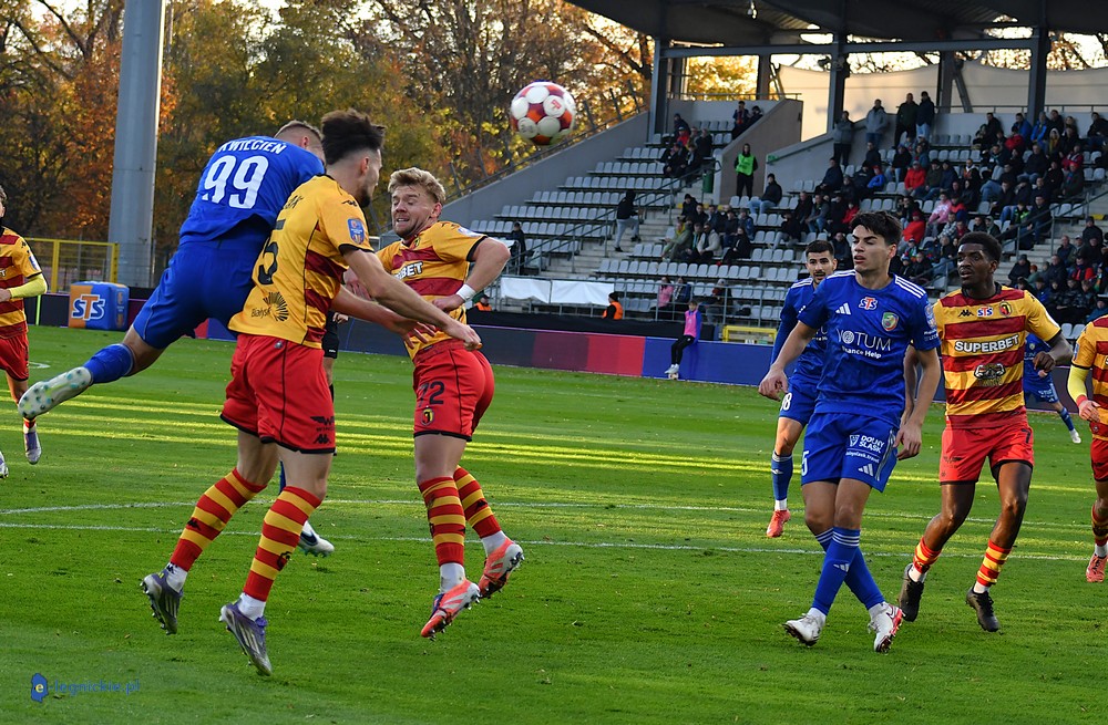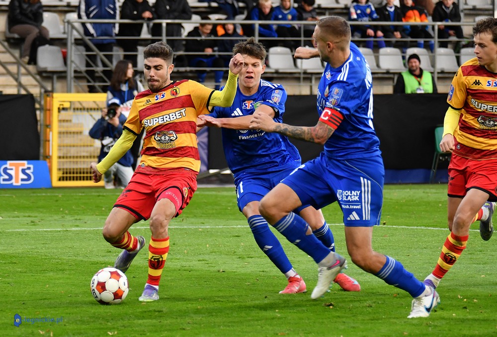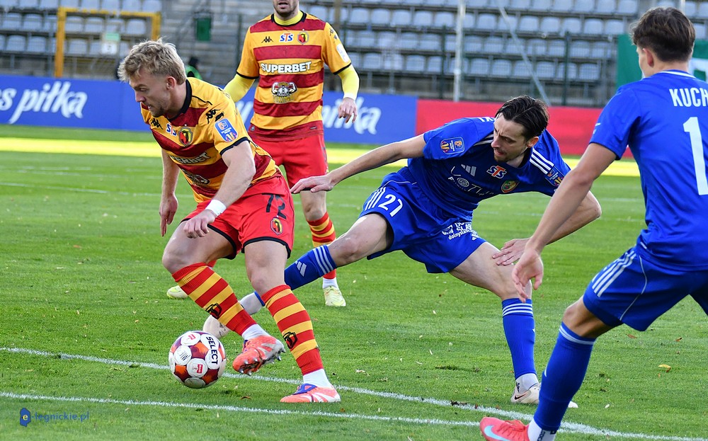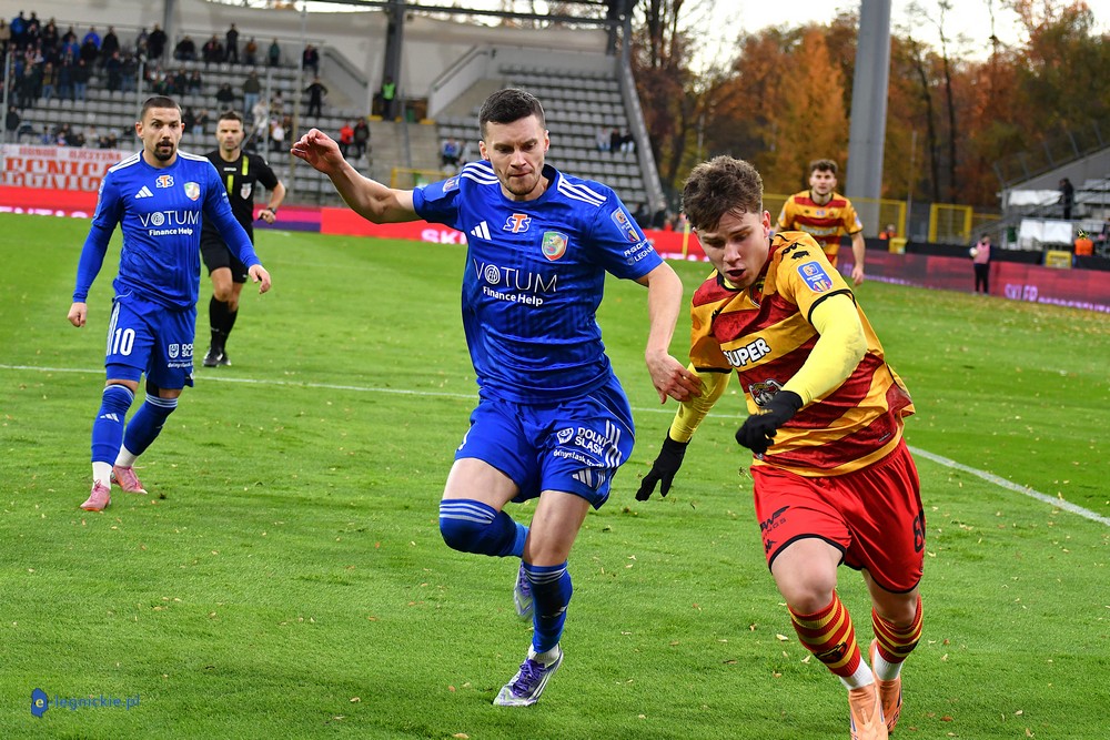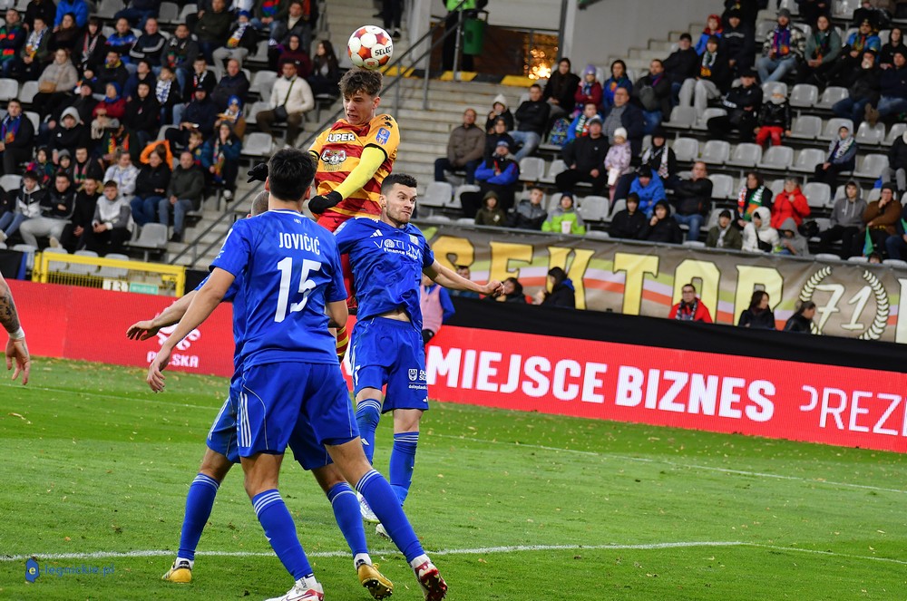 Legniczanie zdołali wyrównać w 36. minucie, kiedy Kamil Antonik uderzył głową i piłka jeszcze odbiła się od Alejandro Pozo i wpadła do siatki.