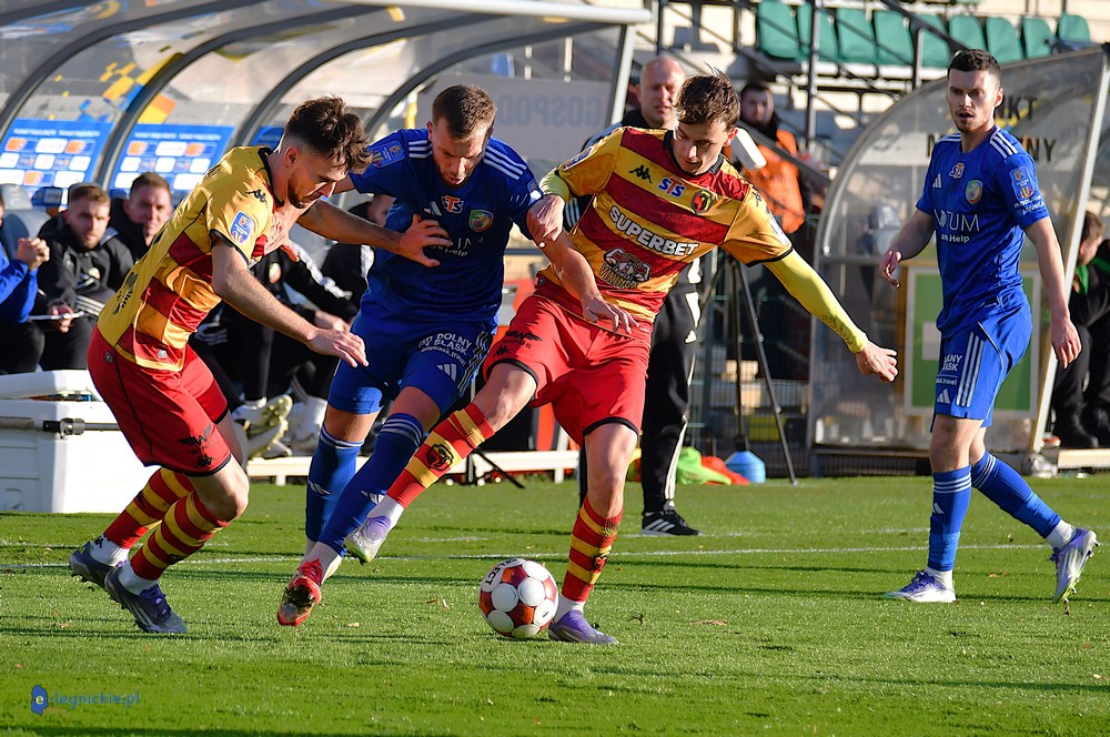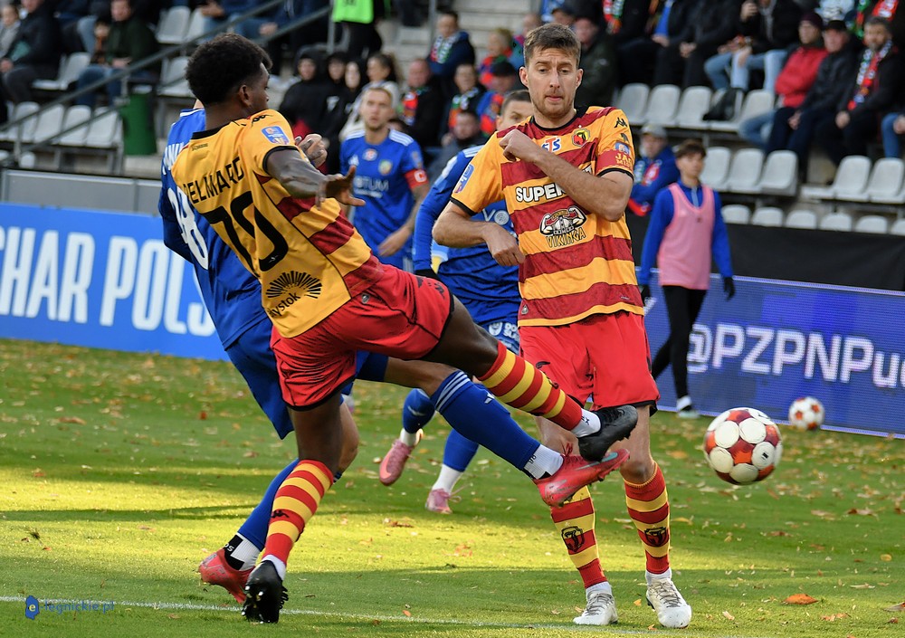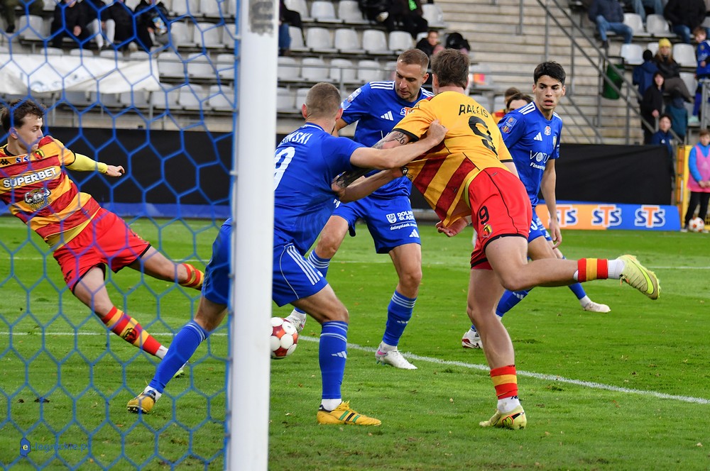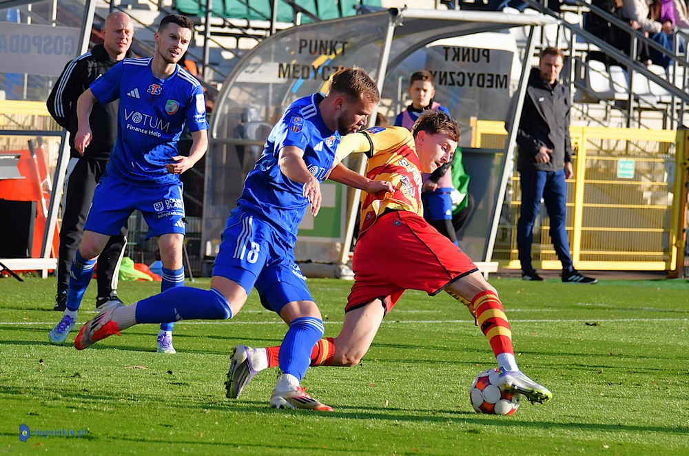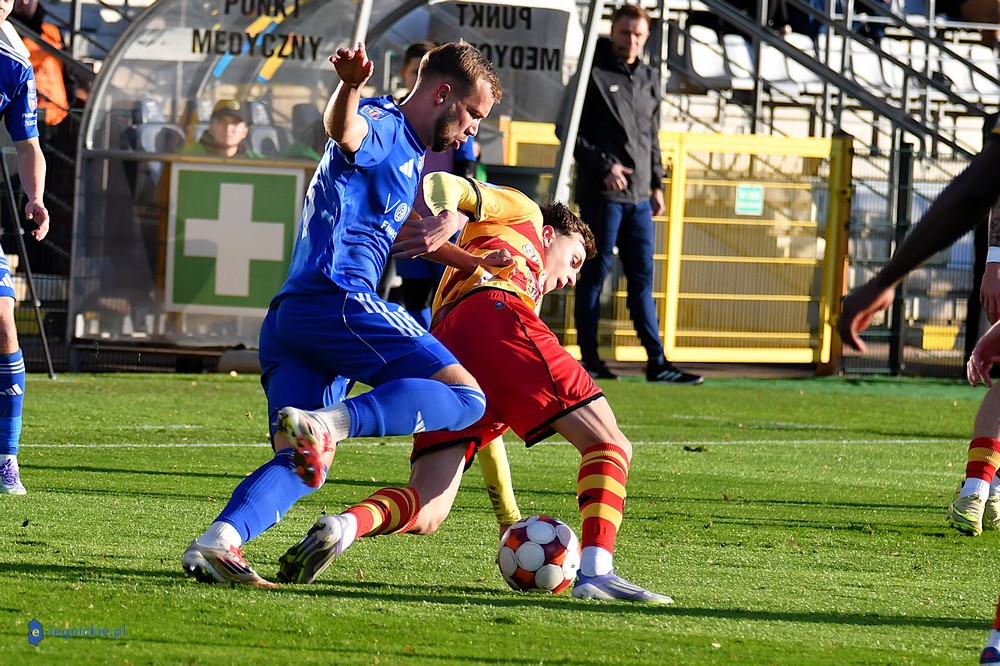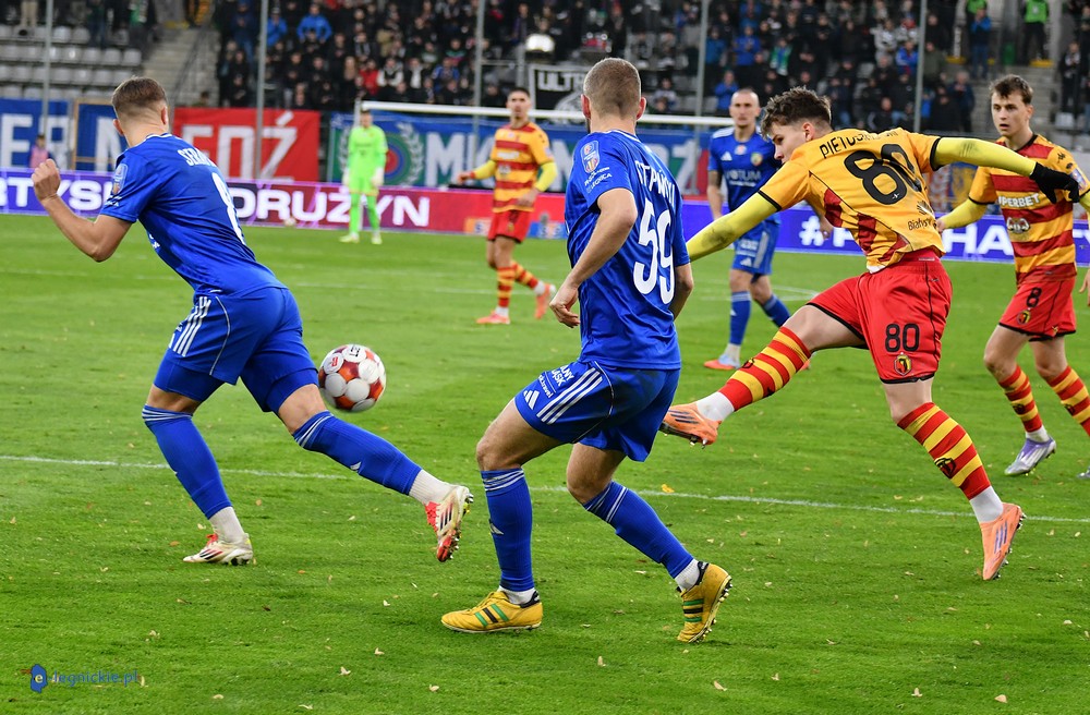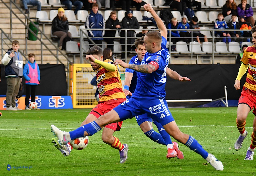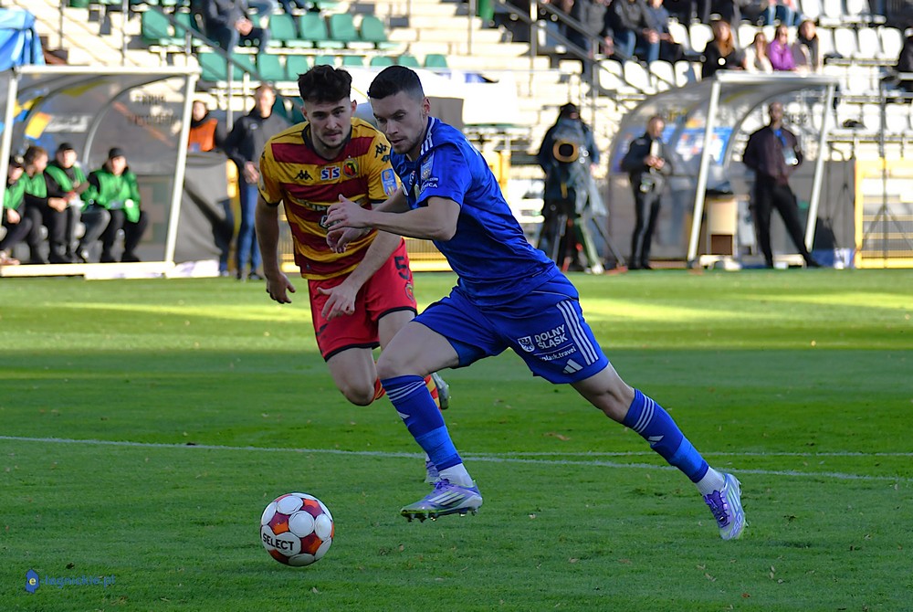 Legniczanie zdołali wyrównać w 36. minucie, kiedy Kamil Antonik uderzył głową i piłka jeszcze odbiła się od Alejandro Pozo i wpadła do siatki.