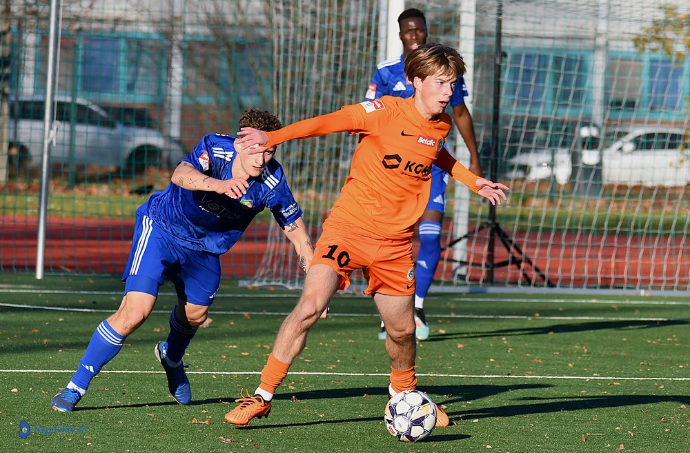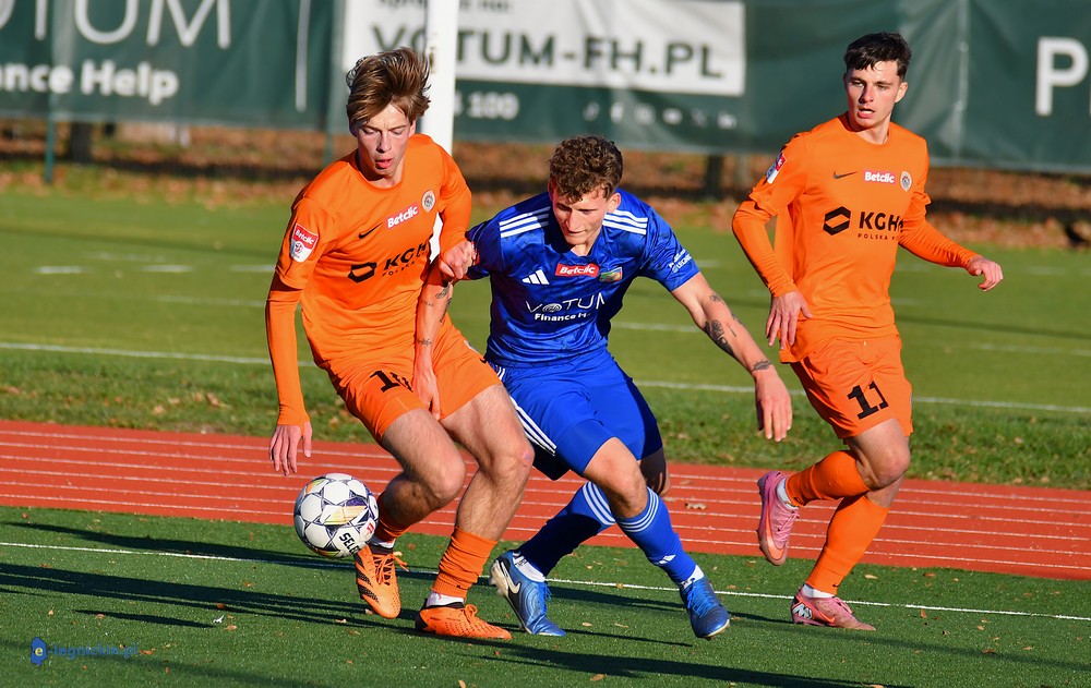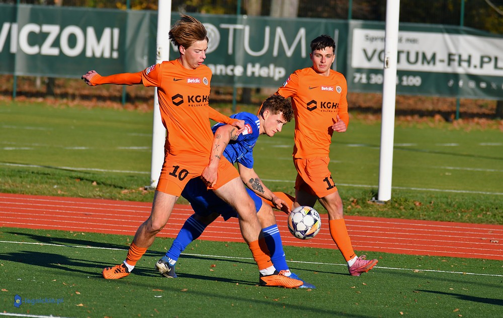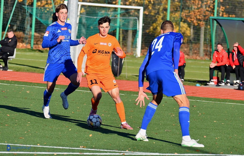 LEGNICA. Rezerwy Zagłębia Lubin już dawno zapomnieli o ligowym falstarcie i krok po kroku przekonują, że chcą być perłą Akademii Piłkarskiej KGHM Zagłębia. W derbowym spotkaniu w Legnicy podopieczni Arkadiusza RADOMSKIEGO nie mieli litości dla rezerw Miedzi do...69 minuty meczu. Wtedy to po koncertowej grze zwłaszcza w drugiej części meczu prowadzili 1:5. Ale potem odpaliła maszyna Miedzi trenera Marcina GARUCHA i po fantastycznym pościgu, "wielbłądach" w obronie gości doprowadzili do remisu.