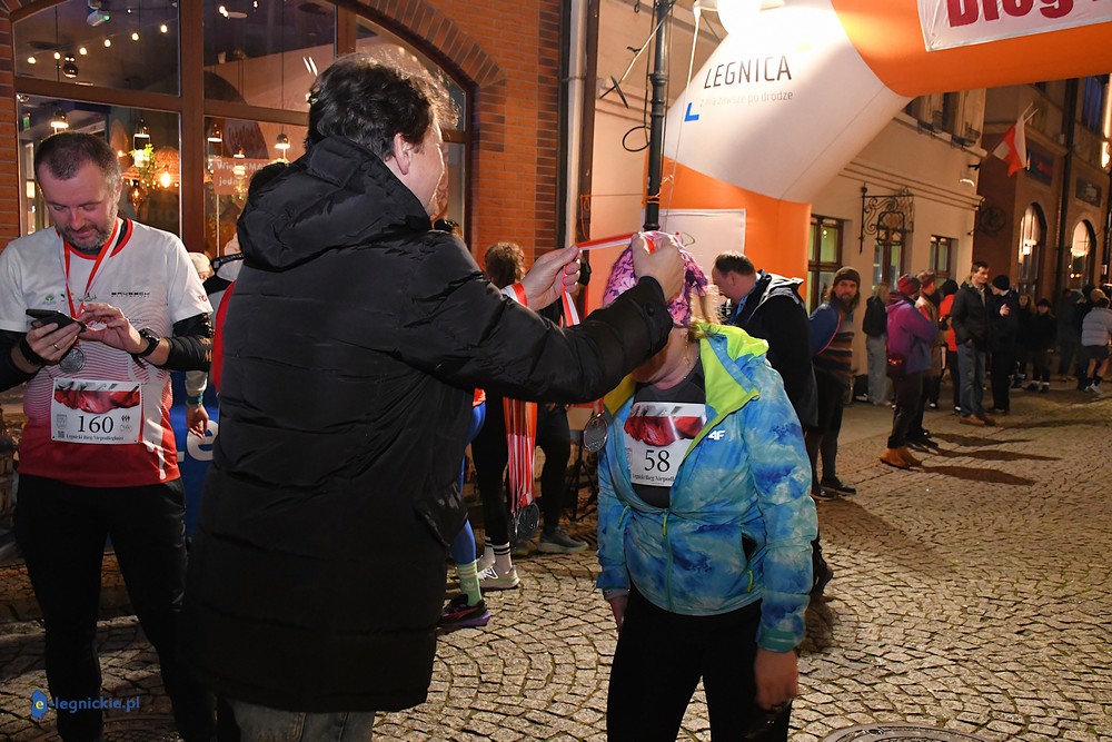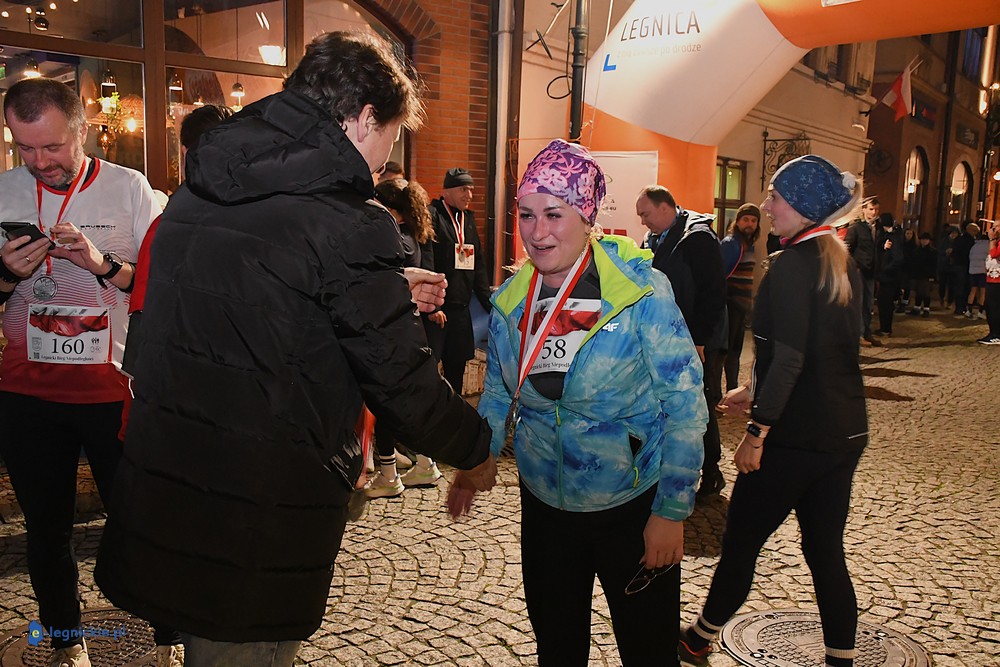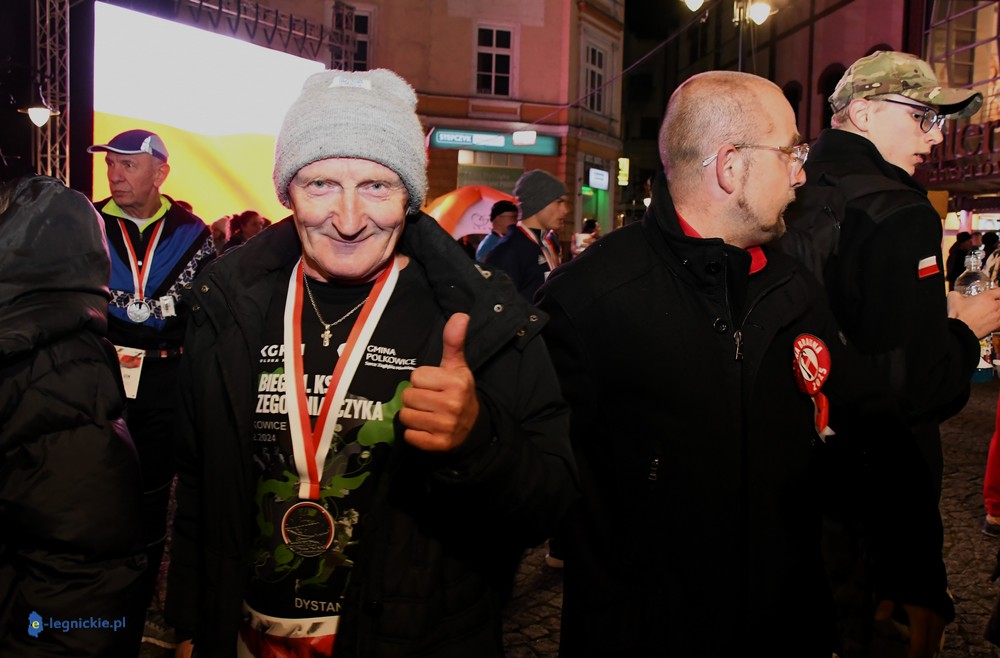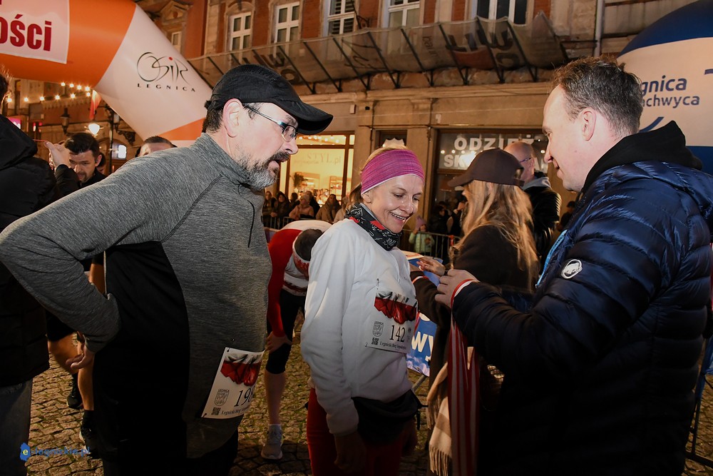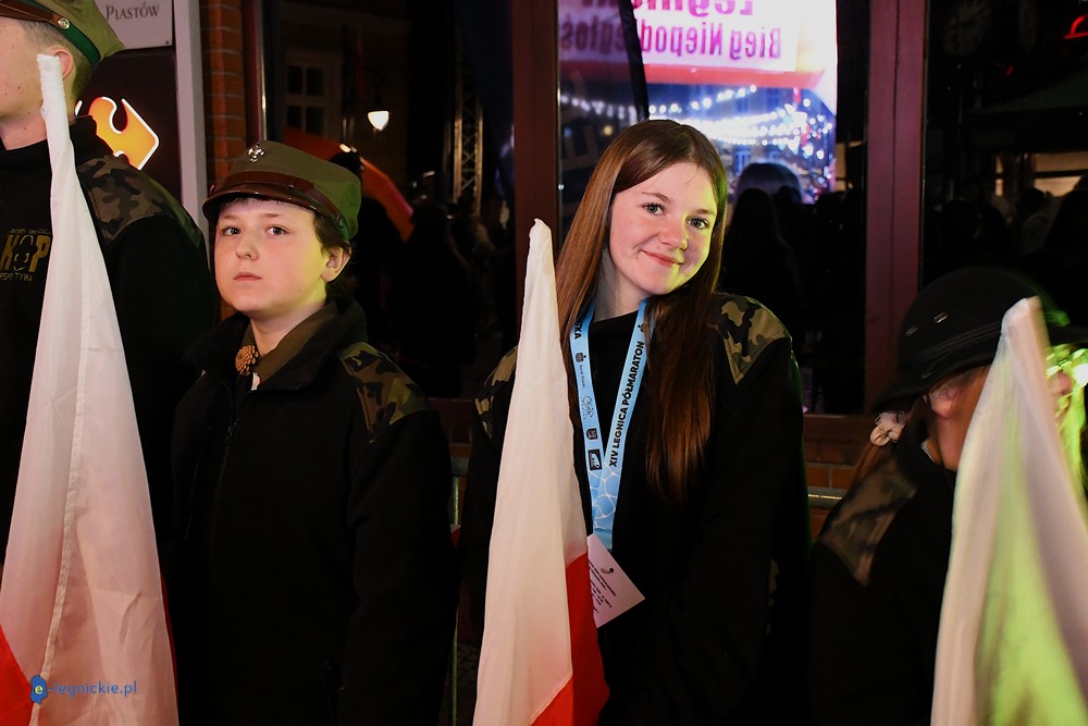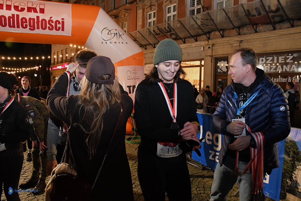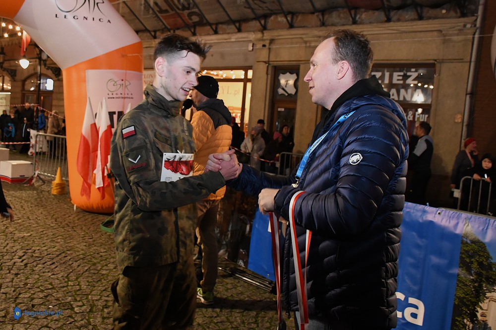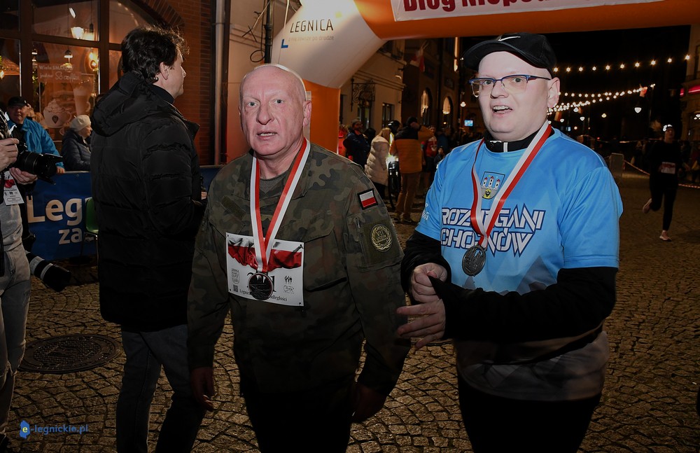 Bieg miał kapitalną, patriotyczną oprawę i nie ukrywajmy, powoli ta oprawa jest znakiem rozpoznawczym legnickiej imprezy biegowej. Podobnie jak nietuzinkowy, solidny medal, który dostawał każdy z biegaczy. Przed zawodami odśpiewano hymn, a przy biegnących uczestnikach trzymano biało-czerwone flagi i zapalone pochodnie. Był także poczęstunek dla mieszkańców, którzy mogli spróbować tradycyjnej gęsiny. Oczywiście nie zabrakło herbaty, bo czuć było mocny chłód.