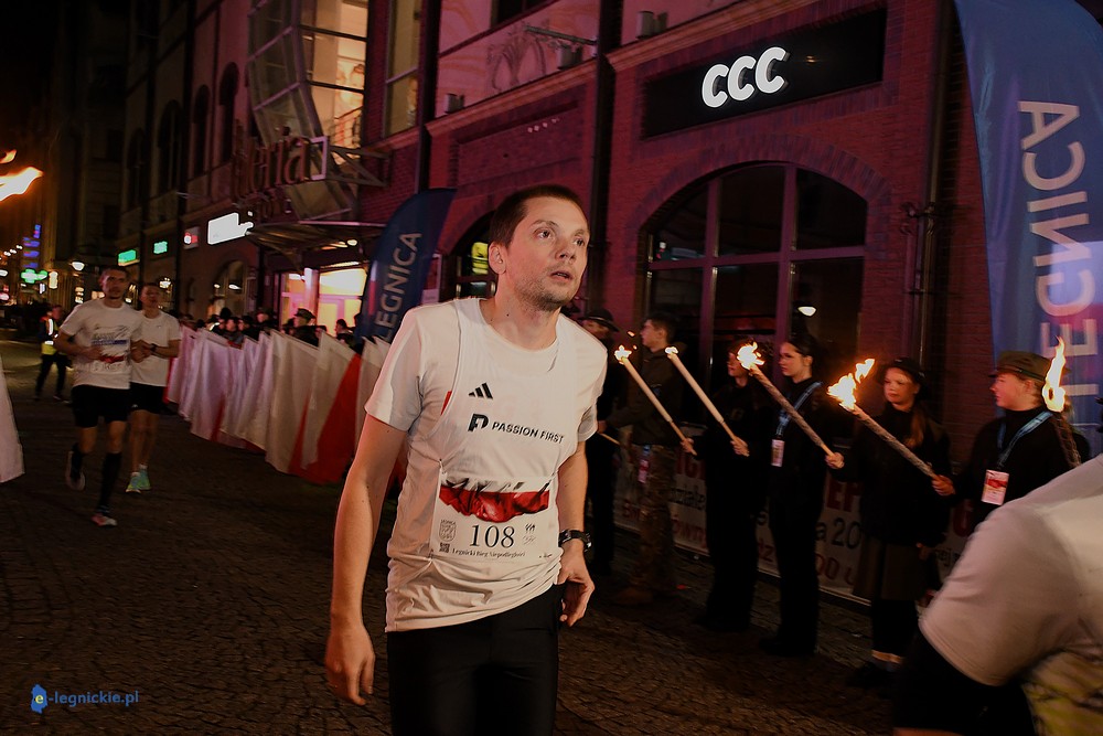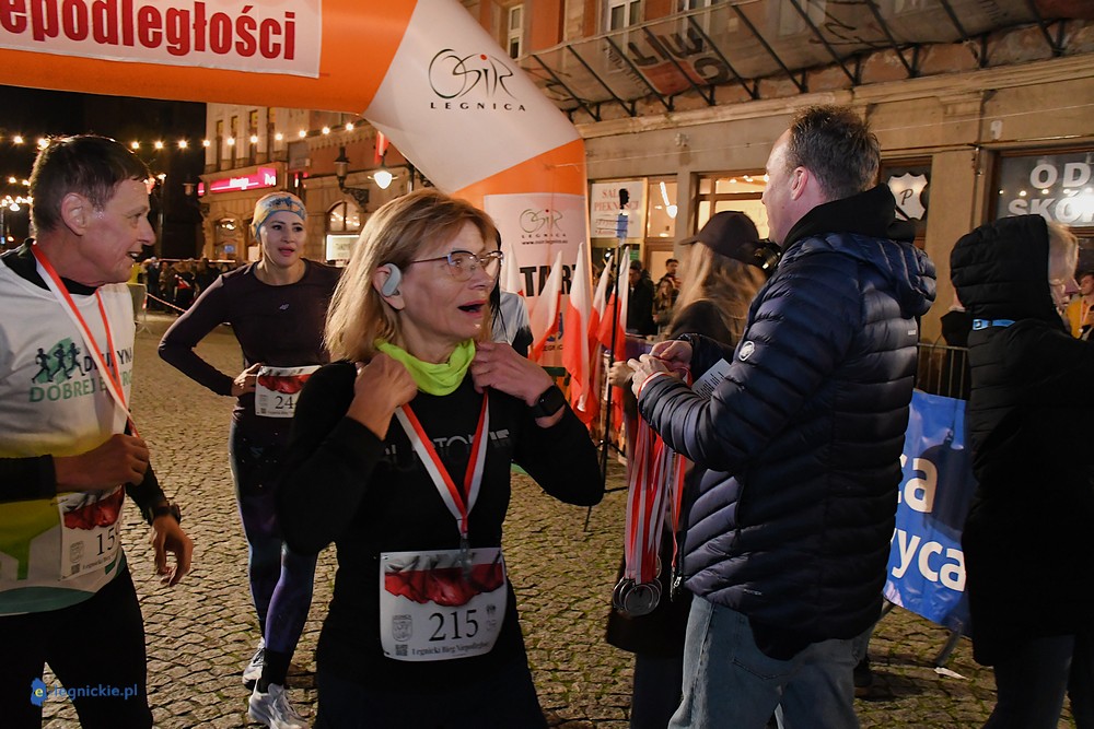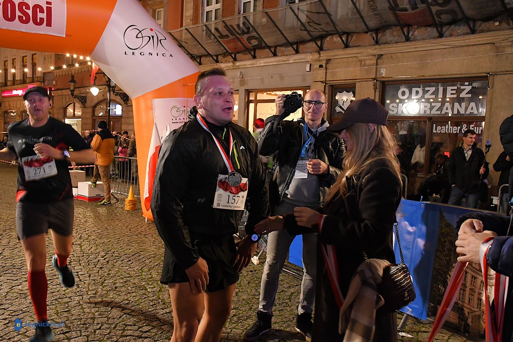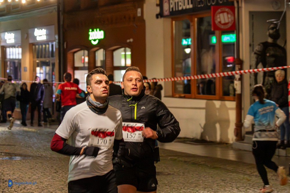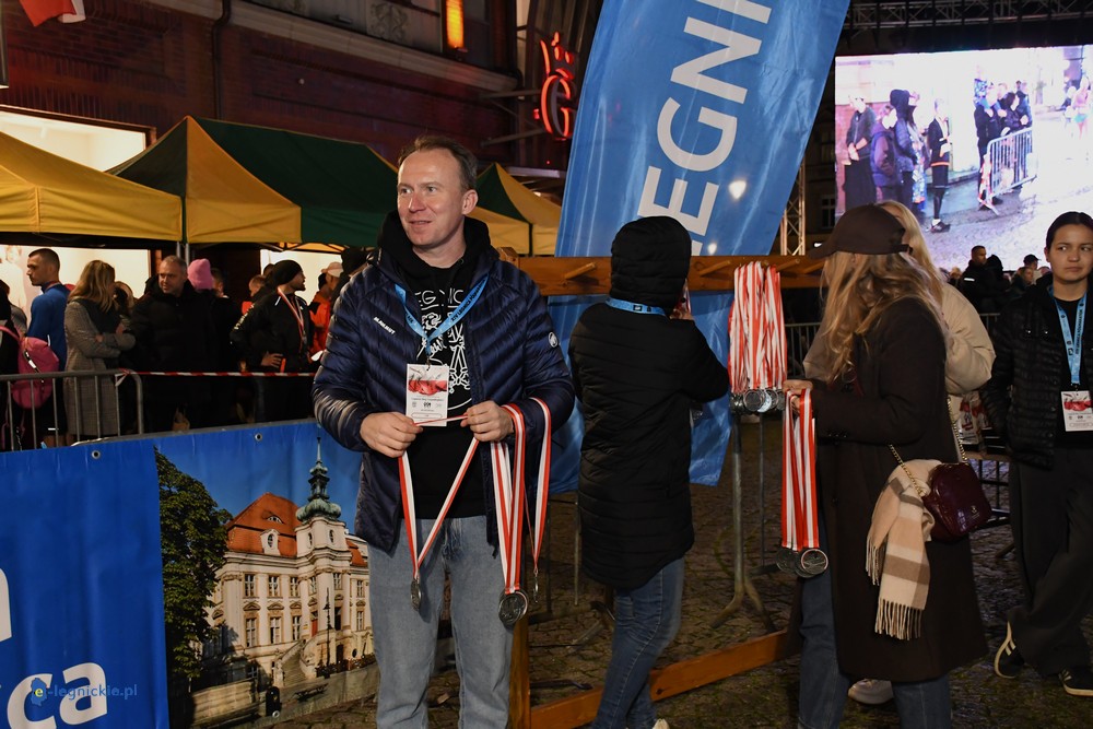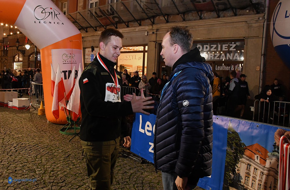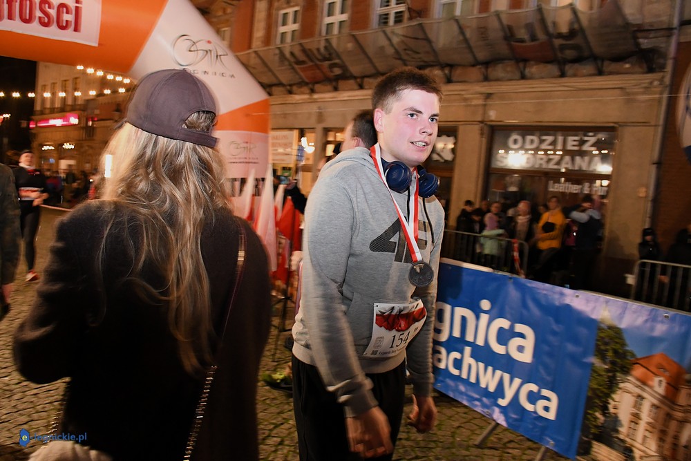 Bieg miał kapitalną, patriotyczną oprawę i nie ukrywajmy, powoli ta oprawa jest znakiem rozpoznawczym legnickiej imprezy biegowej. Podobnie jak nietuzinkowy, solidny medal, który dostawał każdy z biegaczy. Przed zawodami odśpiewano hymn, a przy biegnących uczestnikach trzymano biało-czerwone flagi i zapalone pochodnie. Był także poczęstunek dla mieszkańców, którzy mogli spróbować tradycyjnej gęsiny. Oczywiście nie zabrakło herbaty, bo czuć było mocny chłód.