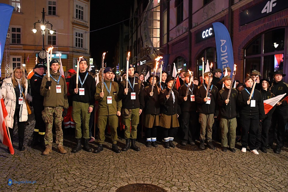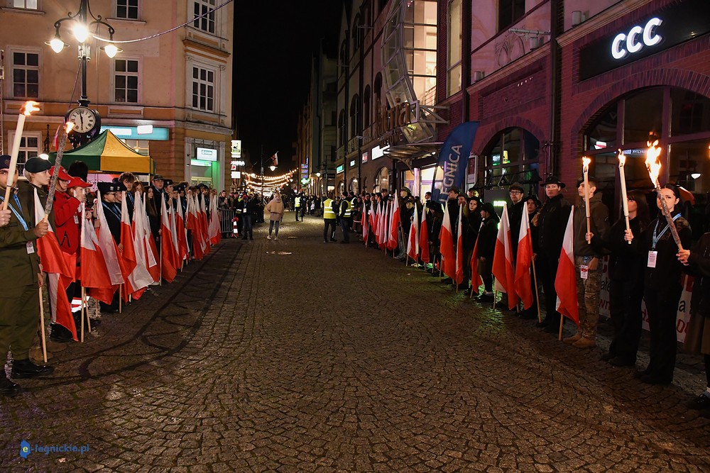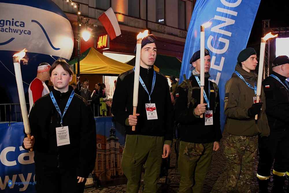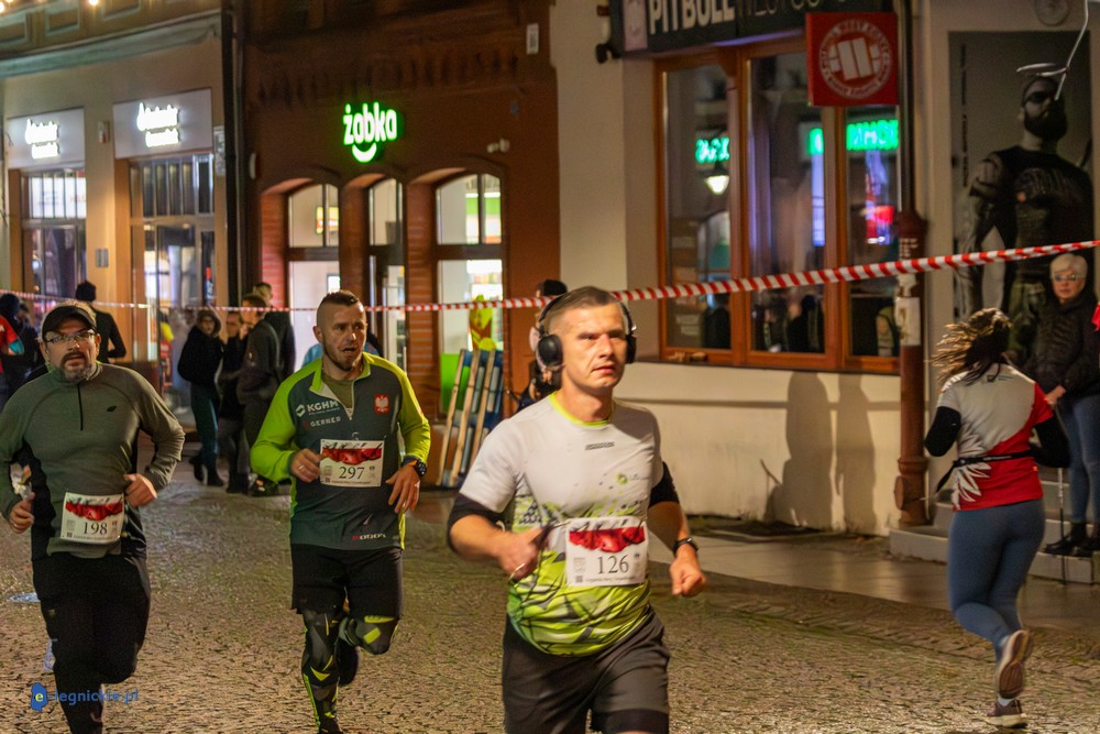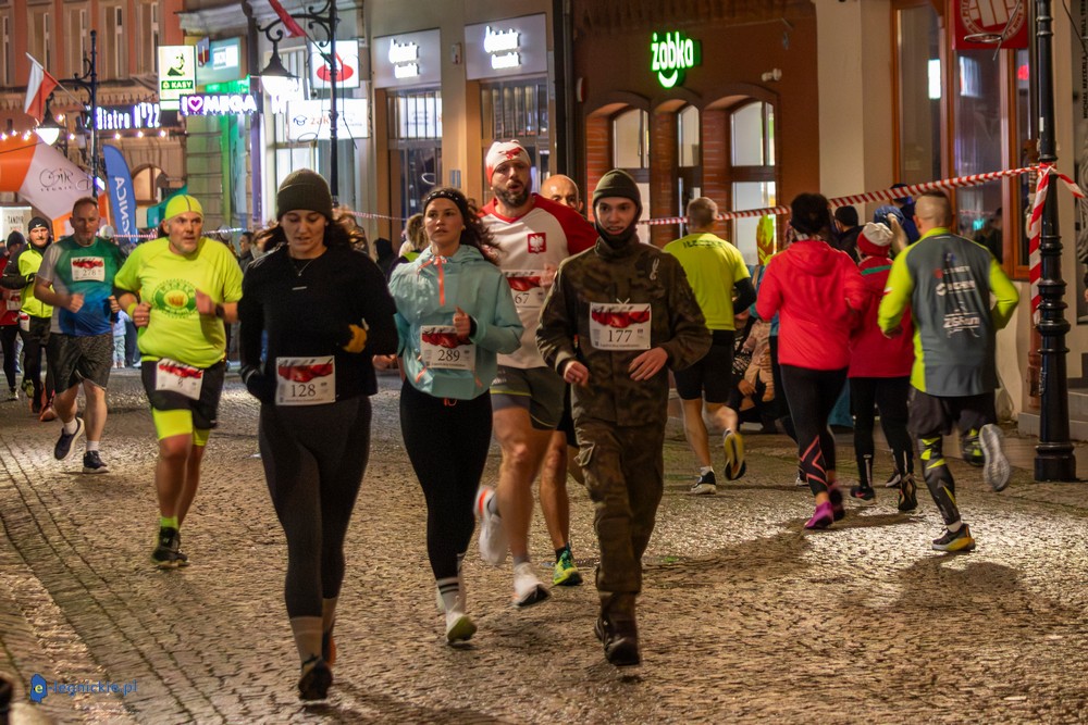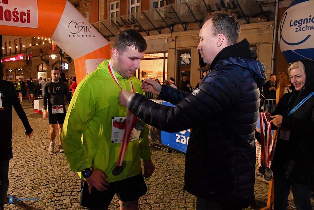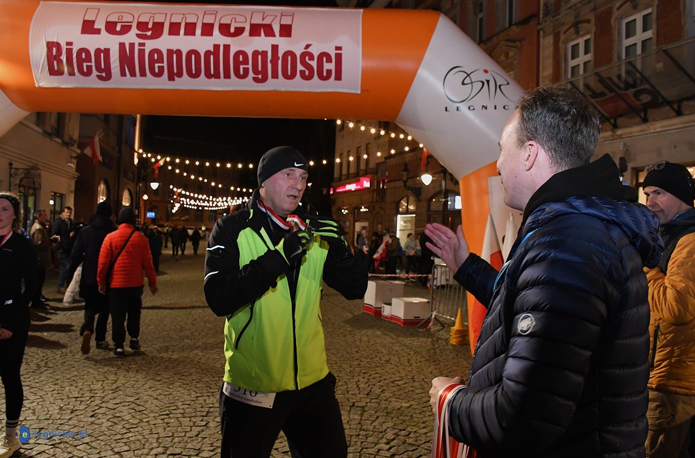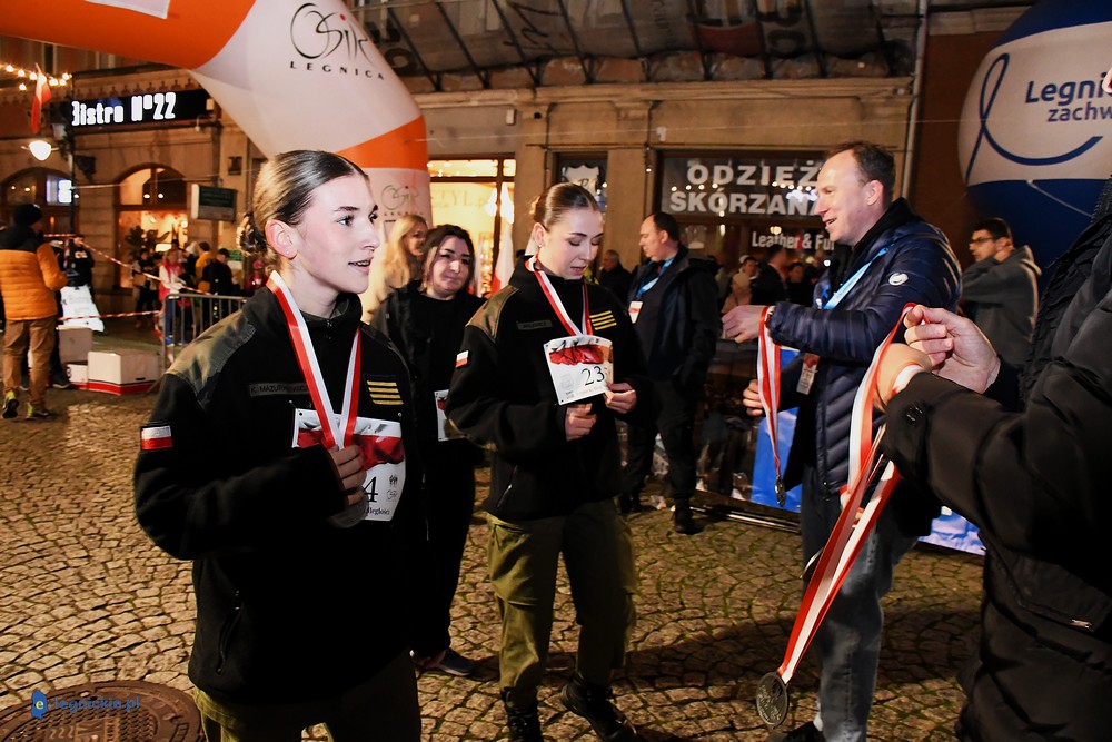 Bieg miał kapitalną, patriotyczną oprawę i nie ukrywajmy, powoli ta oprawa jest znakiem rozpoznawczym legnickiej imprezy biegowej. Podobnie jak nietuzinkowy, solidny medal, który dostawał każdy z biegaczy. Przed zawodami odśpiewano hymn, a przy biegnących uczestnikach trzymano biało-czerwone flagi i zapalone pochodnie. Był także poczęstunek dla mieszkańców, którzy mogli spróbować tradycyjnej gęsiny. Oczywiście nie zabrakło herbaty, bo czuć było mocny chłód.