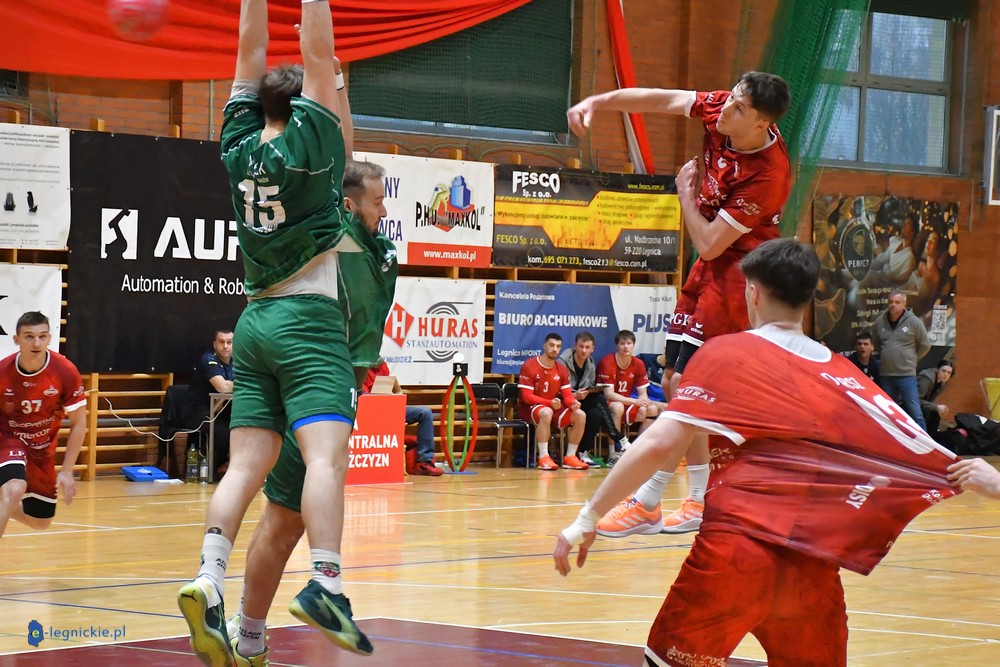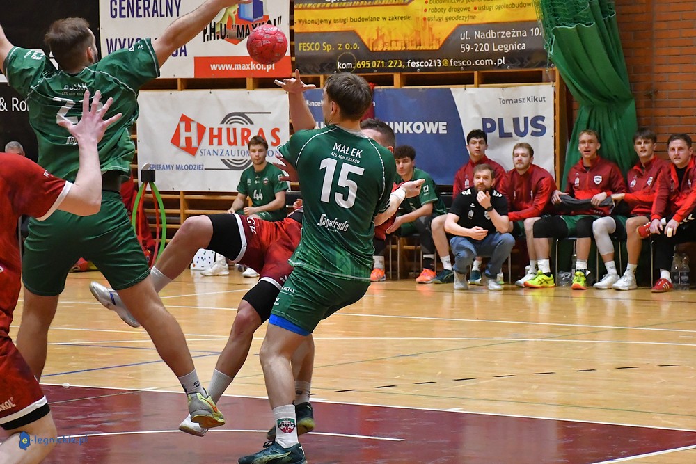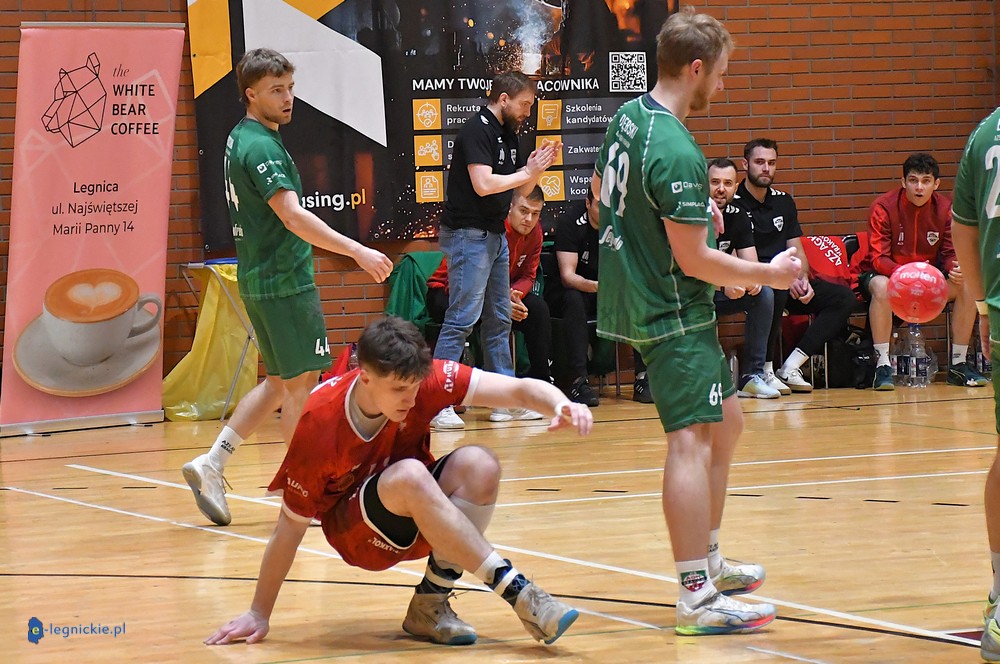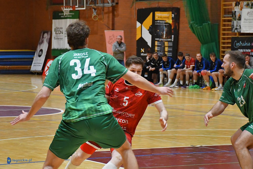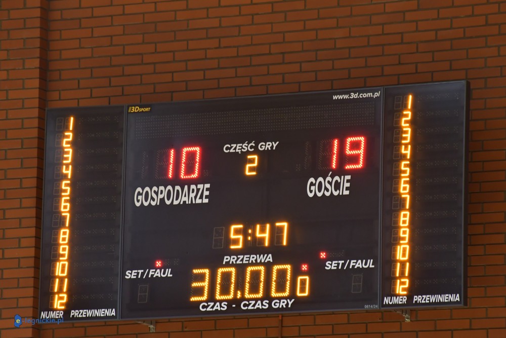 Co prawda w drugiej odsłonie nieco lepiej legniczanie grali w ataku, ale defensywa dalej nie dawała rady zatrzymać świetnych Jakuba Kaciuby czy Filipa Jarosza. Próby zmniejszenie dystansu niewiele dały, bo po 40 minutach wciąż akademicy prowadzili 9-trafieniami, a później jeszcze powiększyli przewagę.