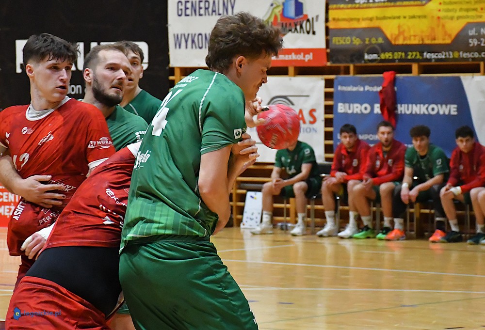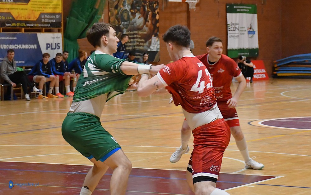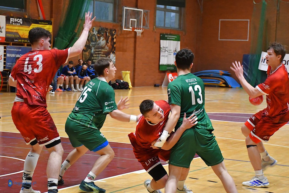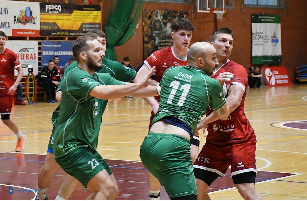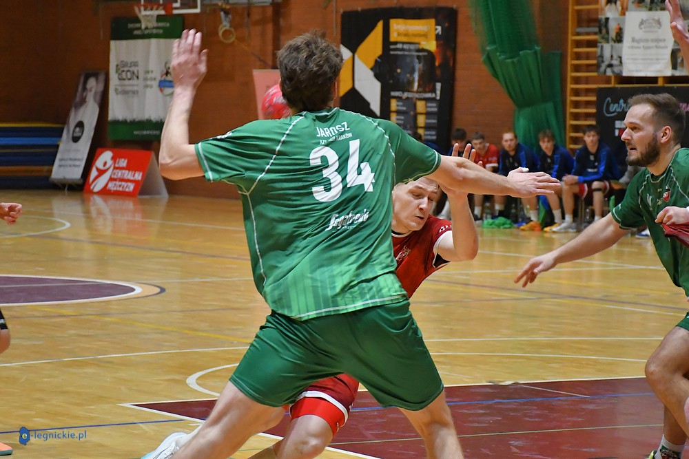 Co prawda w drugiej odsłonie nieco lepiej legniczanie grali w ataku, ale defensywa dalej nie dawała rady zatrzymać świetnych Jakuba Kaciuby czy Filipa Jarosza. Próby zmniejszenie dystansu niewiele dały, bo po 40 minutach wciąż akademicy prowadzili 9-trafieniami, a później jeszcze powiększyli przewagę.