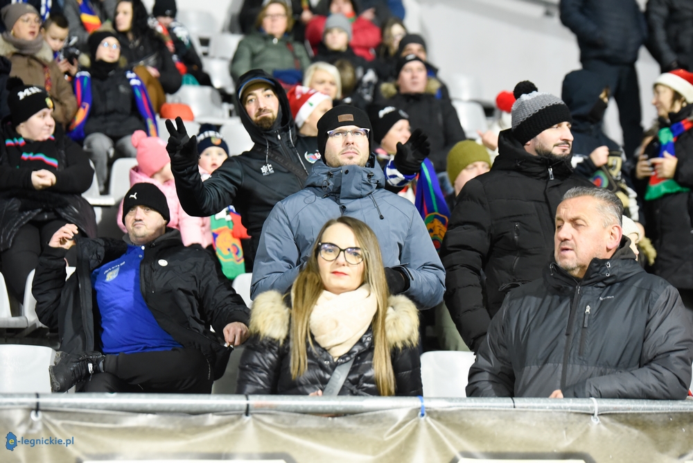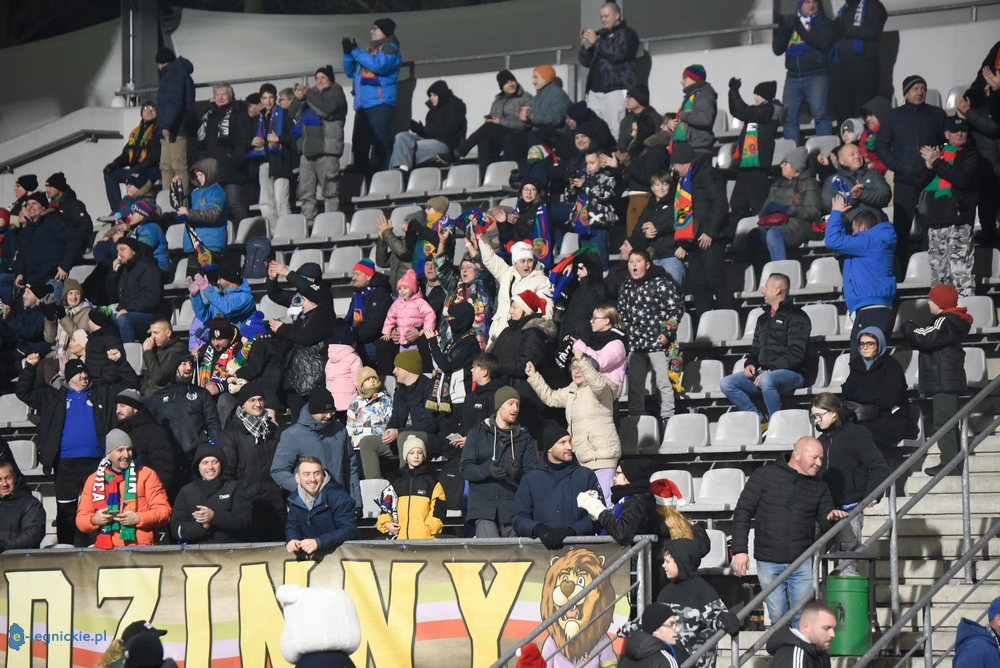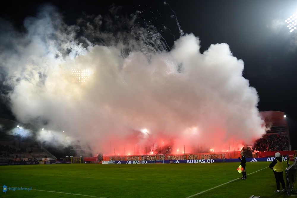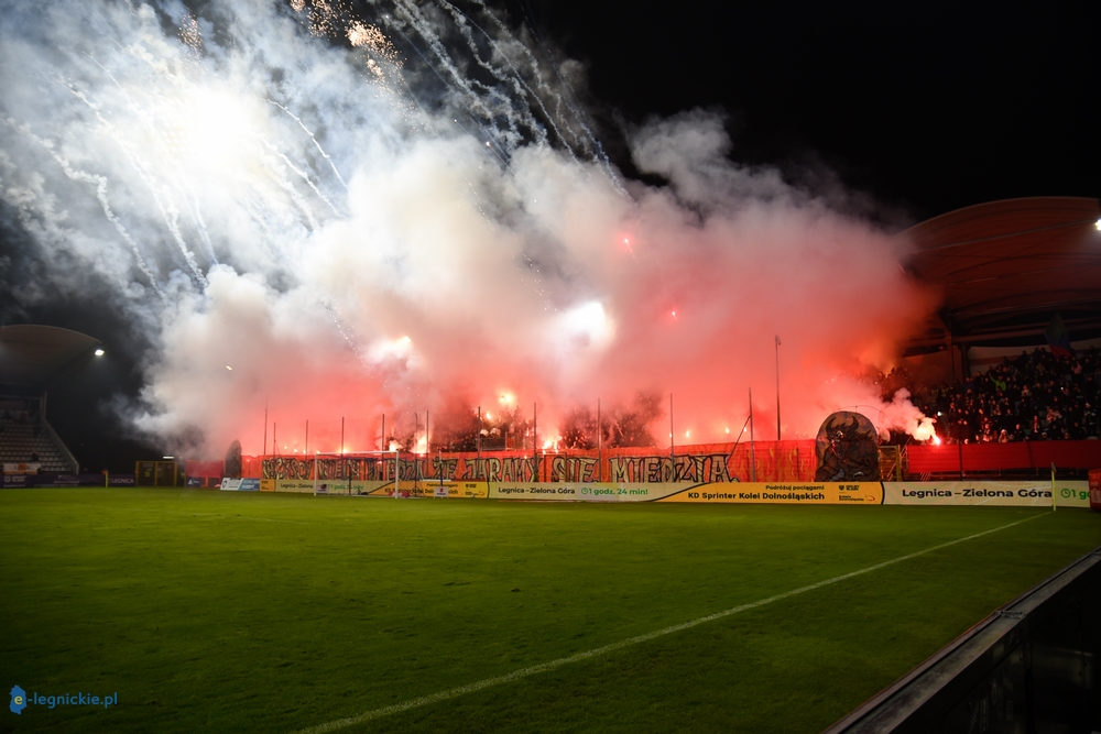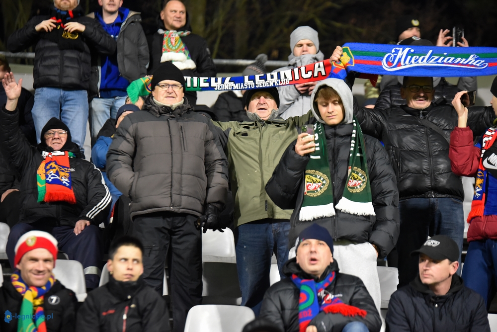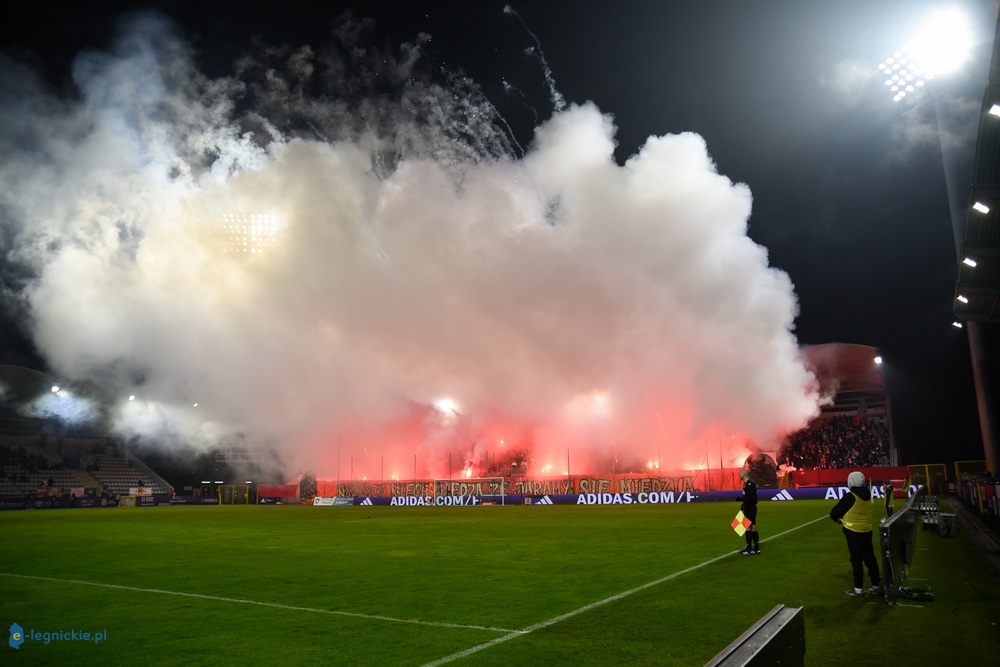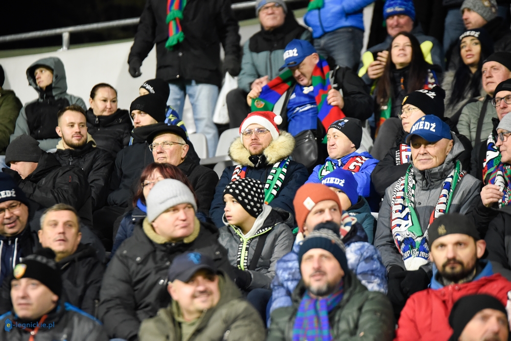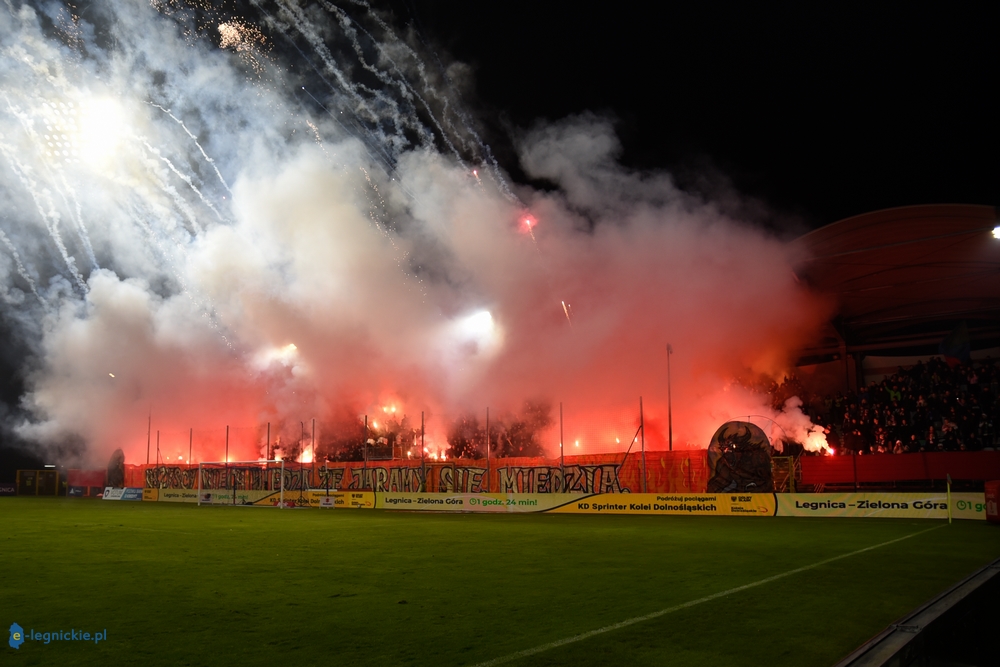 LEGNICA. To było iście fajerkowe pożegnanie piłkarskiego 2025 roku. 3500 widzów zasiadło na trybunach miejskiego stadionu podczas meczu Miedzi z Odra Opole. Jak na warunki pogodowe i klasę rywala frekwencyjny wynik więcej niż przyzwoity... Licznie przybyli fani z Opola, którzy musieli sobie radzić bez wsparcia z Lubina, a z kolei po drugiej stronie chyba padł rekord frekwencji kibicowskiej na sektorze C.