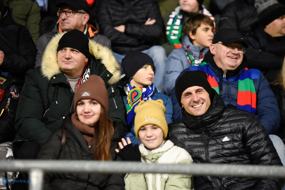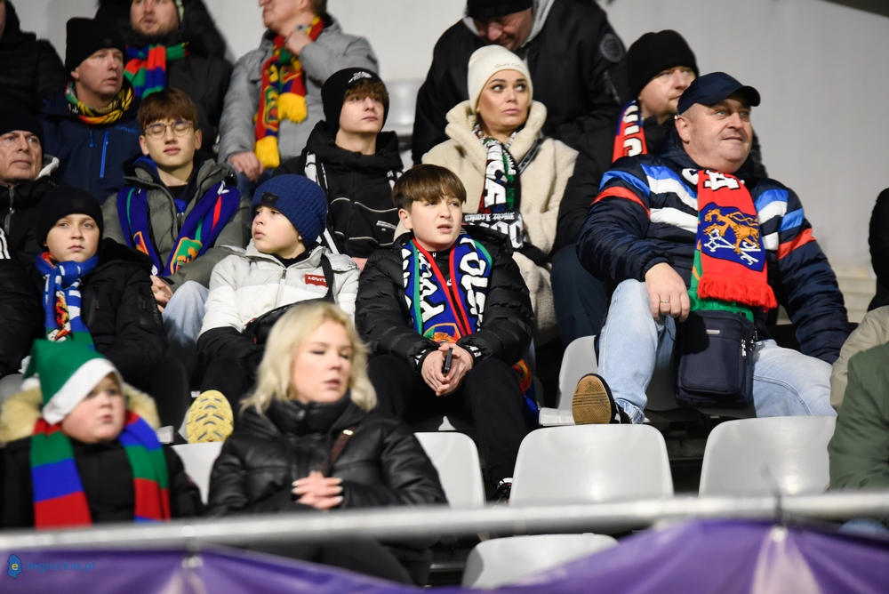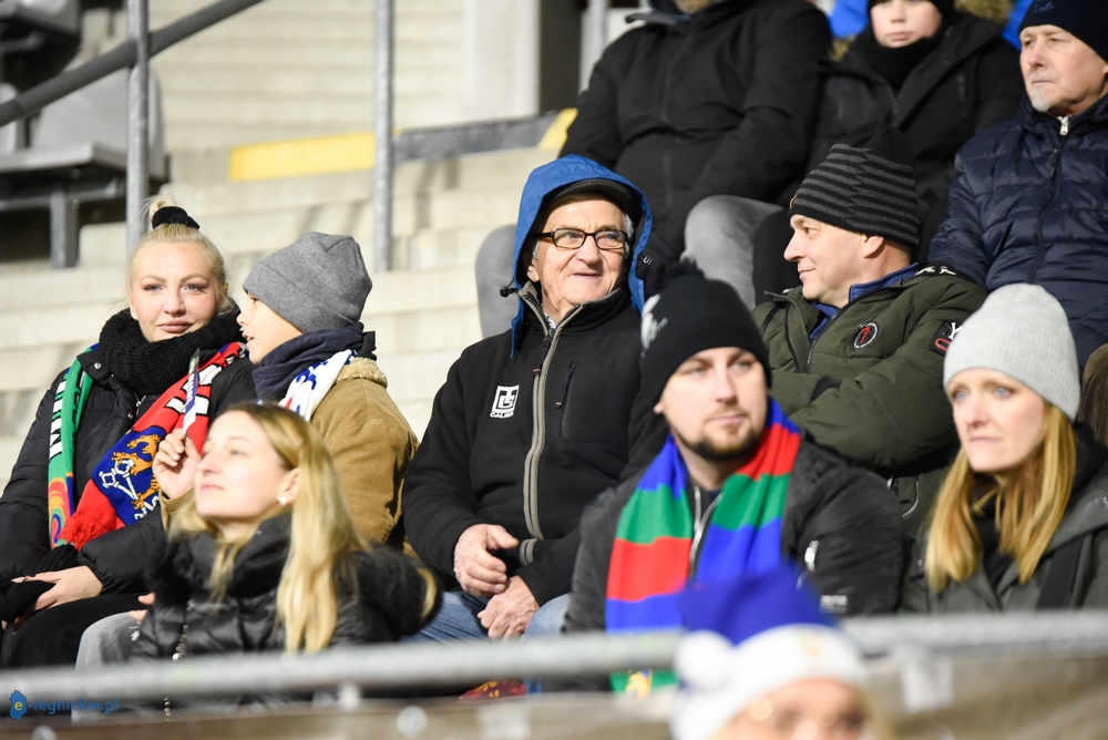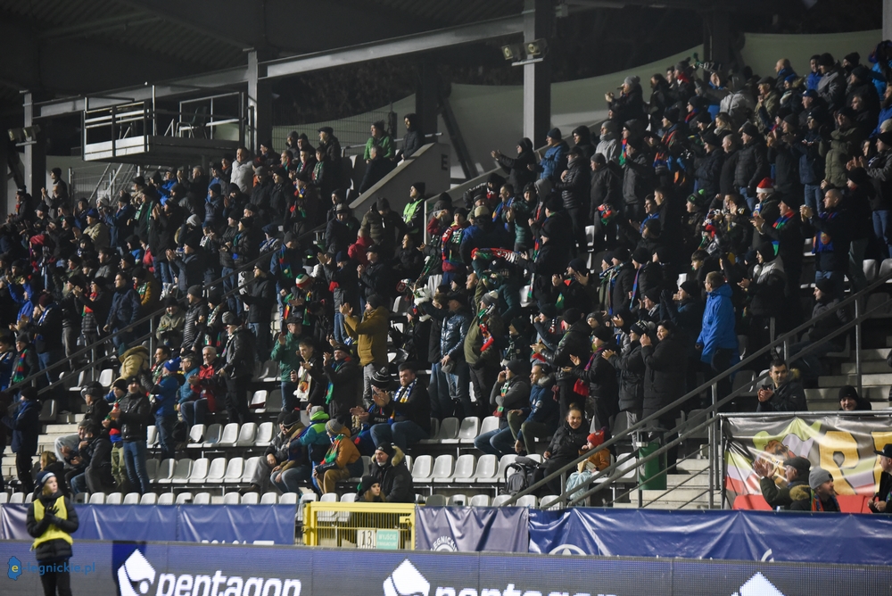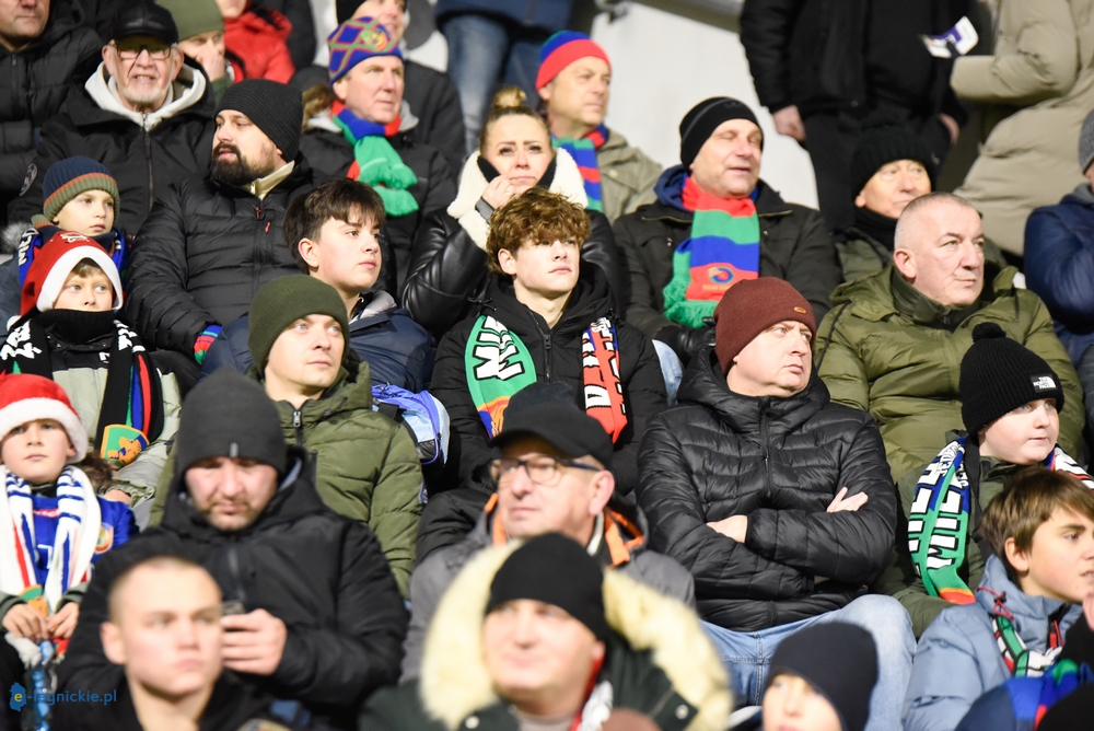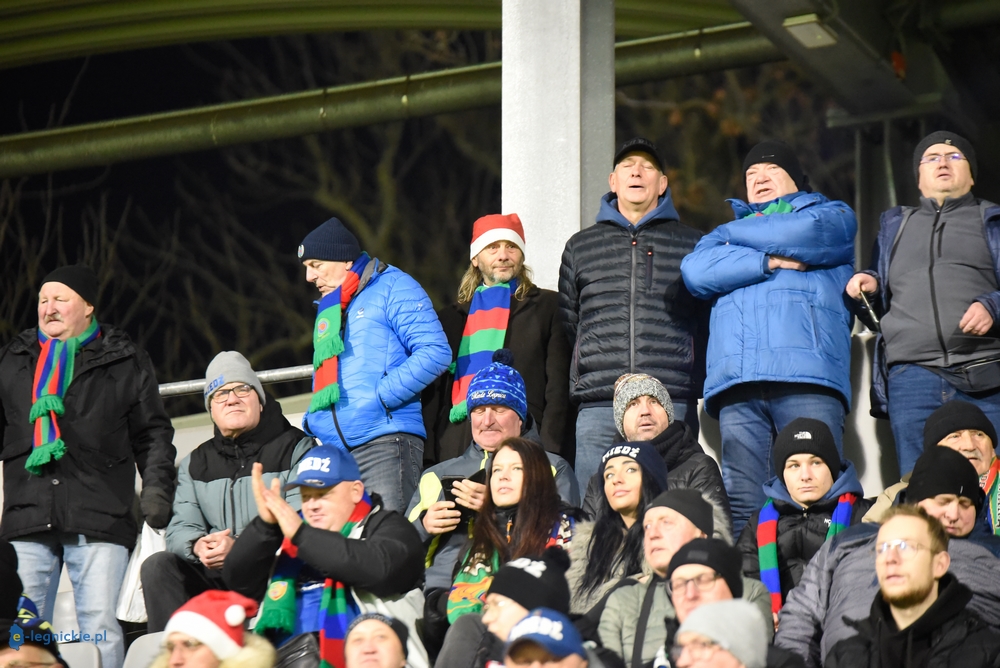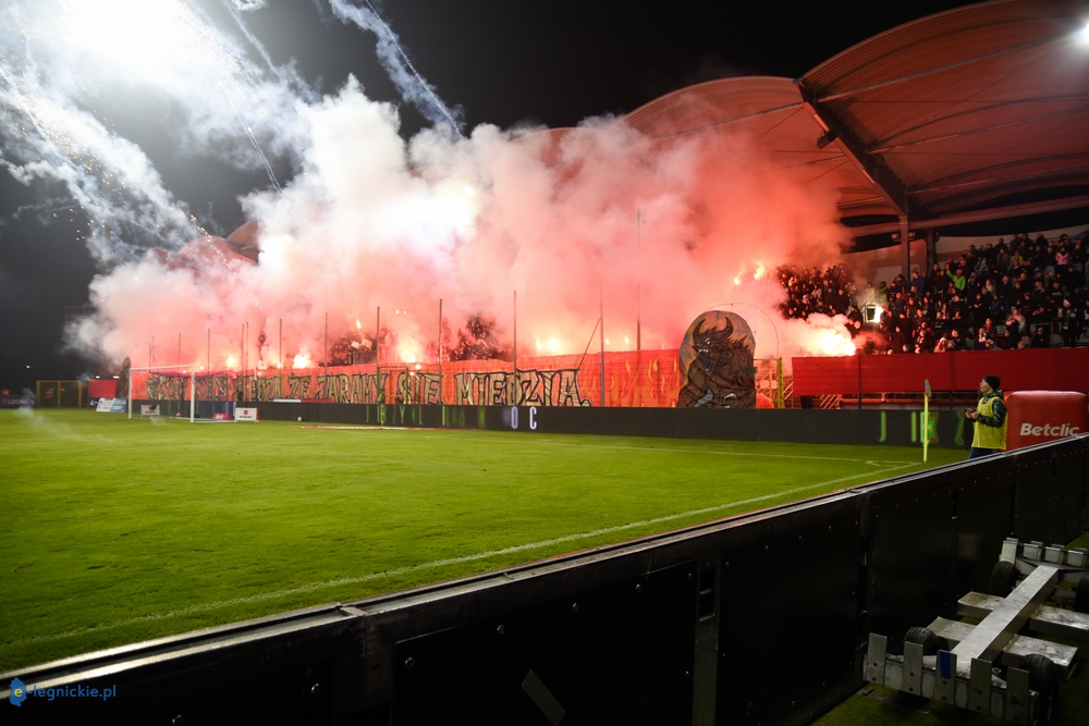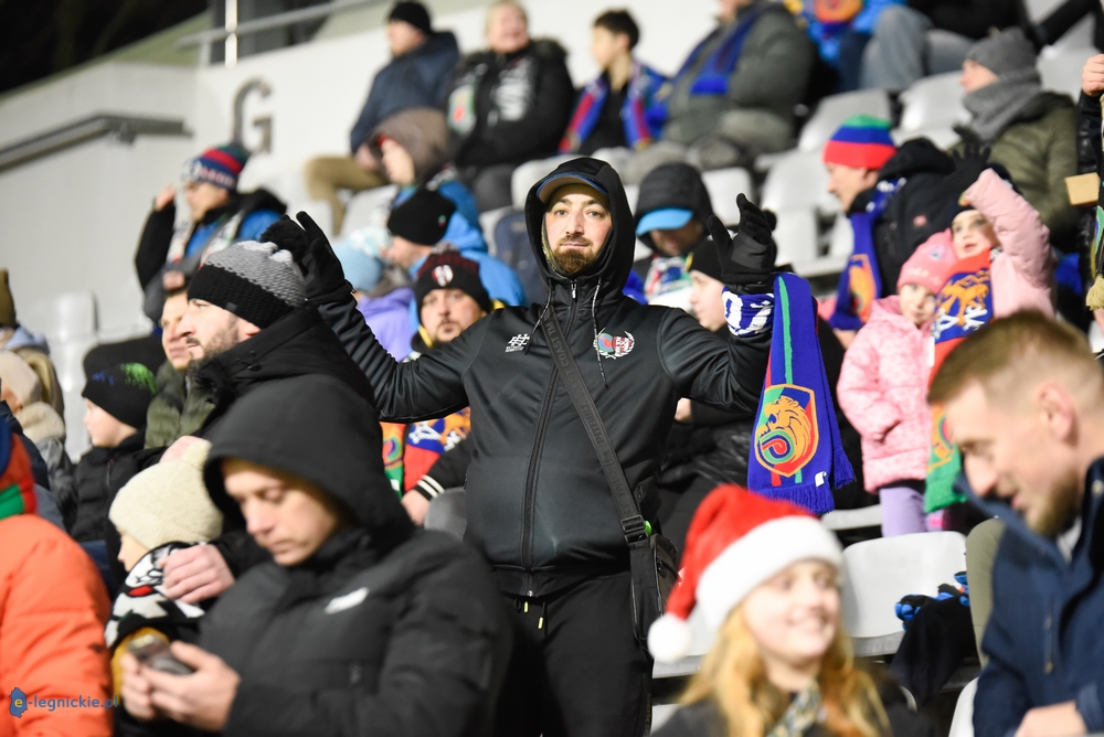 LEGNICA. To było iście fajerkowe pożegnanie piłkarskiego 2025 roku. 3500 widzów zasiadło na trybunach miejskiego stadionu podczas meczu Miedzi z Odra Opole. Jak na warunki pogodowe i klasę rywala frekwencyjny wynik więcej niż przyzwoity... Licznie przybyli fani z Opola, którzy musieli sobie radzić bez wsparcia z Lubina, a z kolei po drugiej stronie chyba padł rekord frekwencji kibicowskiej na sektorze C.