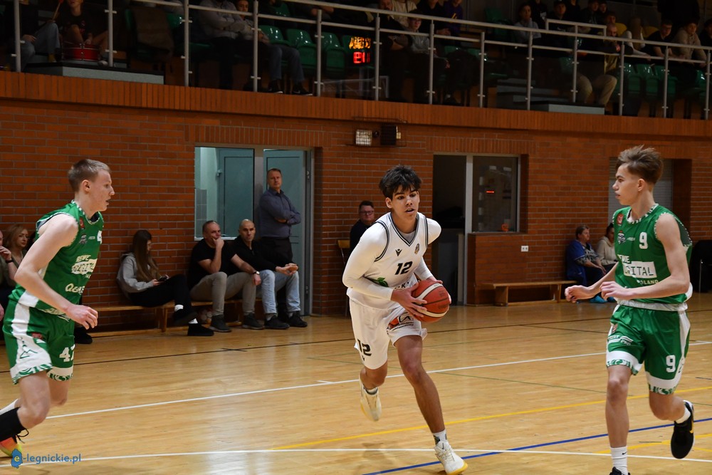 Pierwsza kwarta wskazała, kto jest faworytem i tutaj tę część legniczanie wygrali spokojnie 26:10. W kolejnych kwartach już nie było tak dobrze i pewnie. W grze zespołów wkradało się dużo chaosu, i o ile w ekipie goście mogło być to wybaczalna, bo to młodzi 16-17 letni zawodnicy, o tyle w przypadku zespołu Rafała Niesobskiego, gdzie w znacznym stopniu to doświadczeni gracze, takich błędów było za dużo. W konsekwencji w drugiej kwarcie było 21:20, w trzeciej 18:18 a czwartą legniczanie przegrali 13:21.