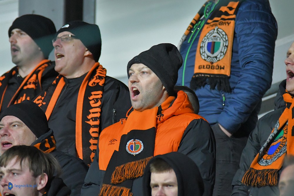 Mniejsza frekwencja ale "ciszy grobowej" na trybunach nie było, w czym zasługa fanów obu klubów. Z Głogowa przyjechało ok. 300 kibiców i praktycznie ani przez moment nie zamilkli. Nie zabrakło racowiska i flagowiska.