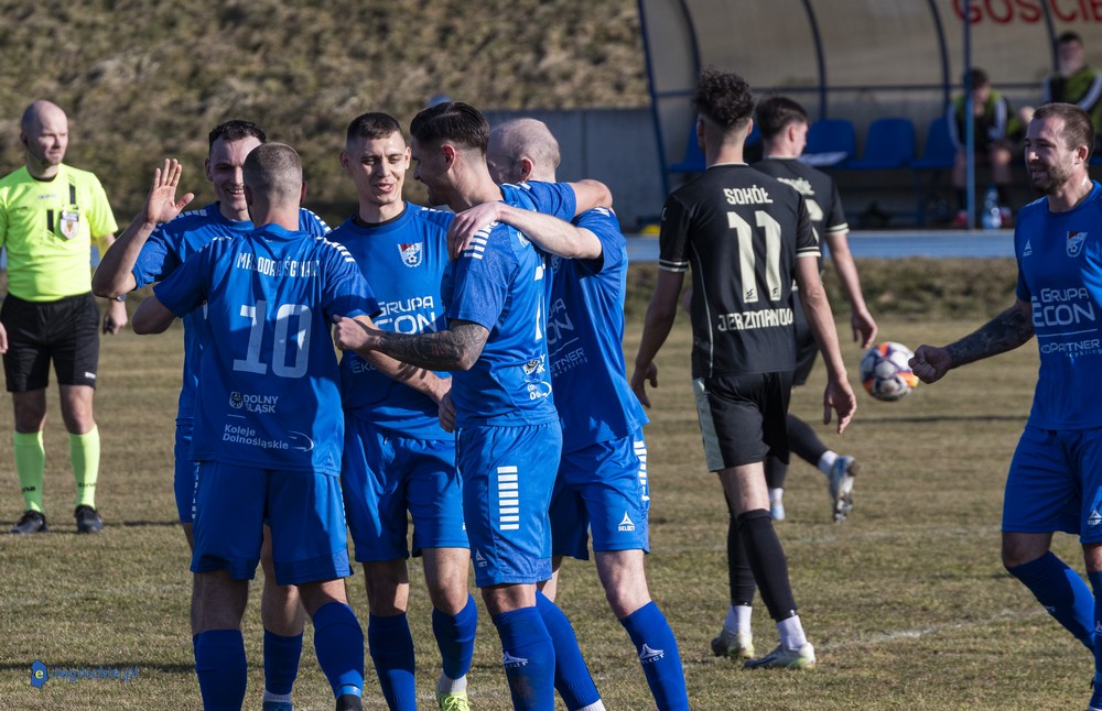 ŚCINAWA. Takiego mocnego i efektownego startu w lidze oczekiwali kibice w Ścinawie. Odra liderująca w klasie okręgowej pewnie pokonała Sokół Jerzmanowa 6:1 (3:1). Jednym z najbardziej szczęśliwych na murawie był Piotr AZIKIEWICZ, który zdobył dwa efektowne gole, a koledzy z drużyny zaprezentowali cieszynkę, czyli kołyskę dla Azikiewicza-juniora i jego mamy i żony w jednej osobie Kamili. Najmniej pocieszonym był obchodzący "18-e" urodziny bramkarz Odry Damian WÓJCIK, który z pewnością marzył o zachowaniu czystego konta, ale marzenie popsuł mu Adrian WOŹNIAK wykorzystując podania Karolczaka.