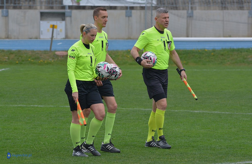 Sędziowali: Piotr Klaska (główny) oraz Paulina Anioł i Krzysztof Doszczenko (asystenci) – KS Legnica/rejon Głogów