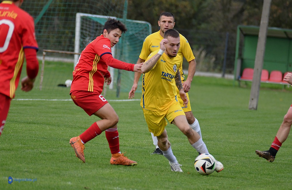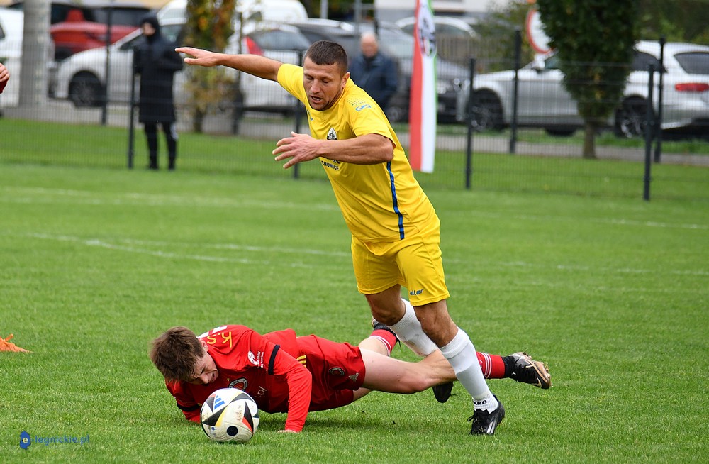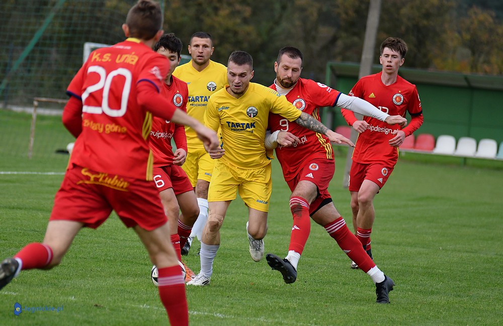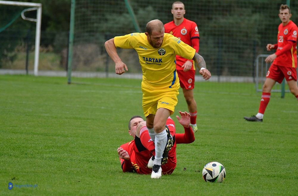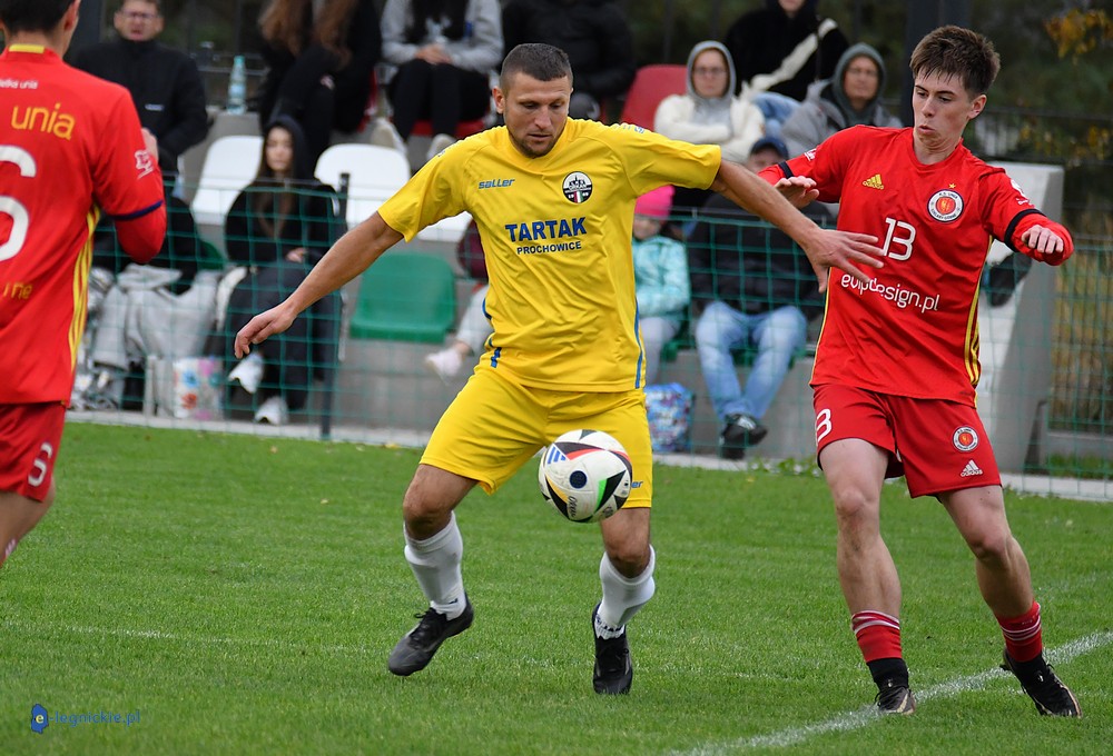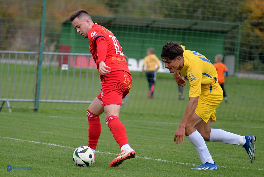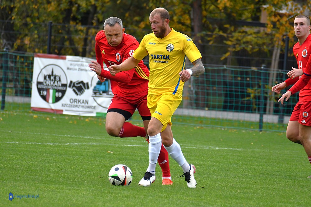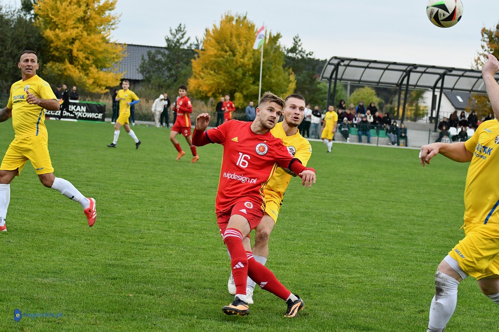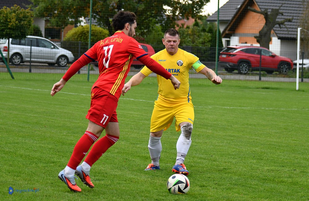Daniel BALICKI, trener Unii Szklary Górne: - Generalnie obawialiśmy się tego meczu i sam przebieg meczu zwłaszcza w drugiej połowie pokazał, że Orkan dysponuje jakością w składzie. Do przerwy wyglądało to fajnie i z gry i wyniku. Niemniej uczulałem podopiecznych, że Orkan to nie jest przypadkowa drużyna i trzeba w drugiej części grać tak jakby było 0:0. W drugiej połowie cofnęliśmy się, może ciut za głęboko. Była to konsekwencja ofensywnej gry gospodarzy i my chcieliśmy ich skontrować. Udało się w 76 minucie kiedy to Łukasz Kozłowski praktycznie zamknął mecz. I jak to jest zazwyczaj : wygrywa się 9 meczów z rzędu i gdzieś z tyłu głowy pojawia się myśl o awansie. Ale uważam, że najpierw dokończmy rundę jesienną, a potem usiądziemy i postawimy sobie cel na rundę rewanżową. Oczywiście mamy personalnie kilka punktów w składzie bardzo mocnych jak Dominik PAZIO czy Łukasz KOZŁOWSKI. Pazio trzyma nam tyły. Ale mamy też fajnych młodych zawodników, którzy robią niesłychany progres . Mam na myśli Tomka Madeja czy Fabiana Berdysa. Ten drugi dzisiaj popisał się zresztą fantastyczną asystą. Michał PIECHUTA gra z nr 9 na koszulce i nie jest to przypadek. Na koncie ma chyba 20 goli strzelonych rywalom. Nie chcę teraz na gorąco analizować czy mamy skład na okręgówkę bo do niej droga jeszcze daleka. Na pewno 8 punktów przewagi na tę chwilę nad drugim lub raczej drugimi zespołami daje takie poczucie psychicznego komfortu. I nie ukrywam, że z tym komfortem gra się Unii lepiej.