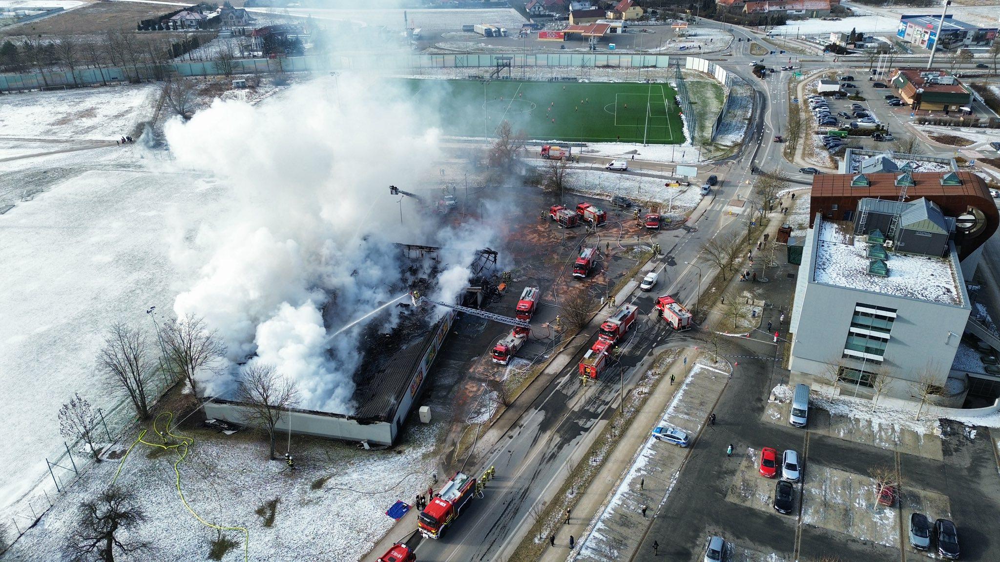 POLKOWICE. Spłonął market BIEDRONKA w Polkowicach na ulicy Ogrodowej (między budynkiem Starostwa Powiatowego a stadionem Górnika Polkowice). W akcji gaśniczej brało udział 20 zastępów strażackich z KP PSP Polkowice i jednostek OSP z powiatu polkowickiego i głogowskiego. Trudne warunki akcji gaśniczej spowodowały urazy u dwóch strażaków. Spalony budynek zawalił się.