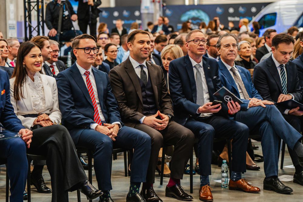 Burmistrz Emilian Bera na ręce Axela Bensa CEO Mercedes-Benz Manufacturing Poland i Sebastiana Streuffe lidera projektu nowej fabryki przekazał gratulacje dla całego zarządu i zespołu. Podkreślił również znaczenie inwestycji dla całego miasta i jego mieszkańców: