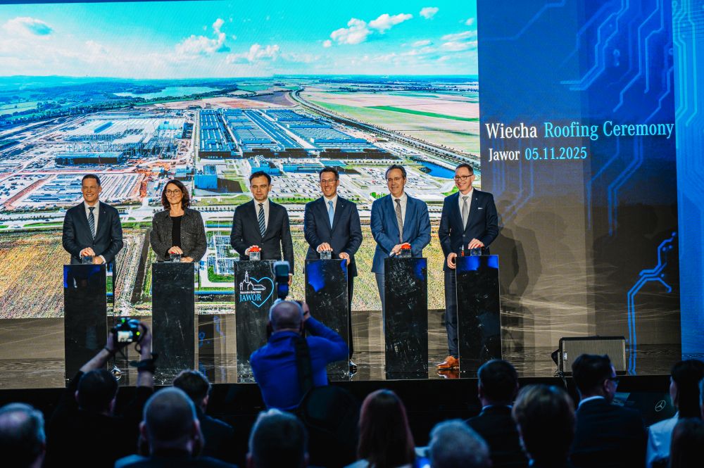 JAWOR. Mercedes-Benz umacnia swoją obecność w Jaworze. Po uruchomieniu fabryki silników i baterii koncern realizuje kolejny etap inwestycji: budowę zakładu produkującego elektryczne vany. Zawieszenie wiechy nad nową fabryką symbolizuje zakończenie kluczowego etapu prac i potwierdza, że Jawor staje się jednym z najważniejszych punktów na mapie nowoczesnej motoryzacji w Europie. – To wydarzenie, które z pewnością zapisze się w historii naszego miasta – podkreśla burmistrz Jawora Emilian BERA. – Wiecha symbolizuje wysiłek wielu ludzi, ale także dumę, jaką odczuwamy patrząc na tempo i skalę rozwoju przemysłowego Jawora i naszej Dolnośląskiej Strefy Aktywności Gospodarczej S3 – Jawor.