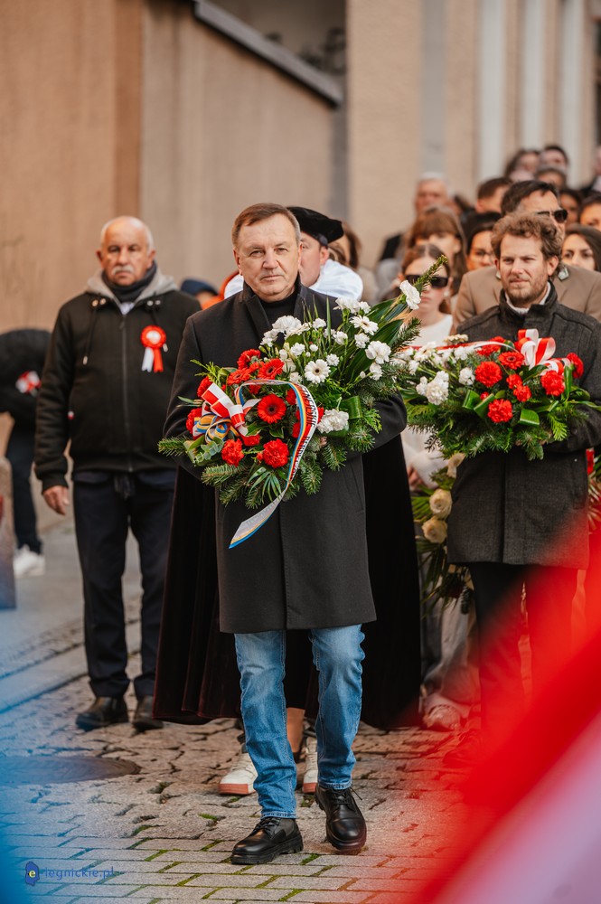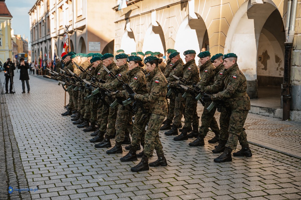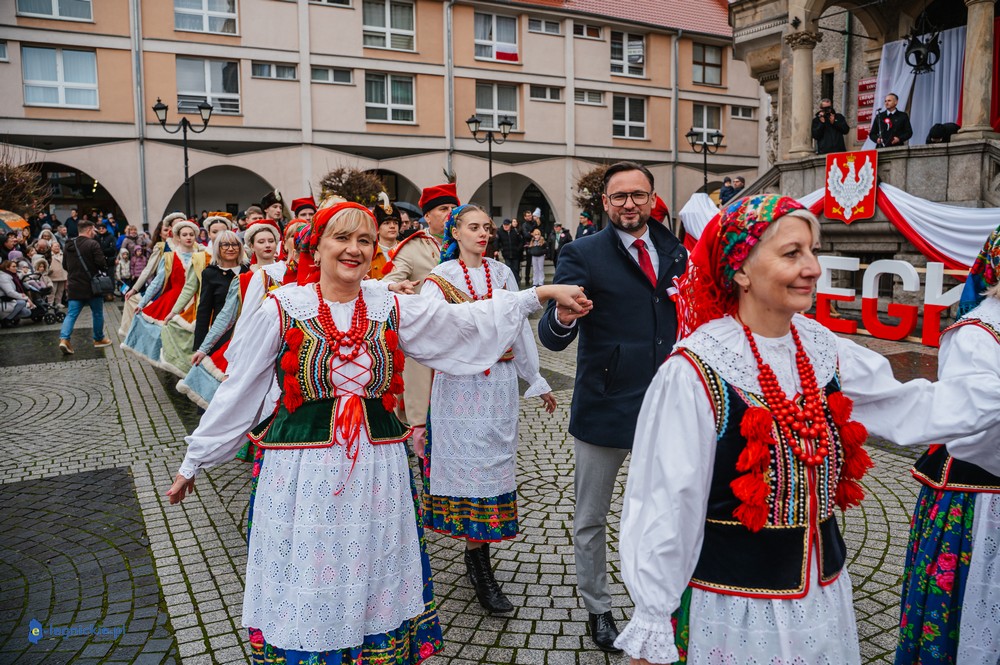 JAWOR. 11 listopada Jawor świętował podwójnie - Święto Niepodległości oraz Dzień Patrona Miasta, św. Marcina. Świętowanie rozpoczęła msza w intencji Ojczyzny , mieszkańców i władz miasta Jawora. Mszę Świętą odprawił ks. biskup Zbigniew Kiernikowski oraz ks. dziekan Łukasz Misiak. Po nabożeństwie korowód z flagą narodową przeszedł ulicami miasta na jaworski Rynek. W barwnym korowodzie z biało-czerwoną flagą zgromadzeni przeszli spod Kościoła Rzymskokatolickiego pw. św. Marcina na jaworski Rynek. Towarzyszyli w marszu m.in. żołnierze 10. Wrocławskiej Brygady Łączności oraz Orkiestra Kłos&Dąbrowski .