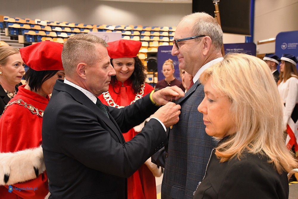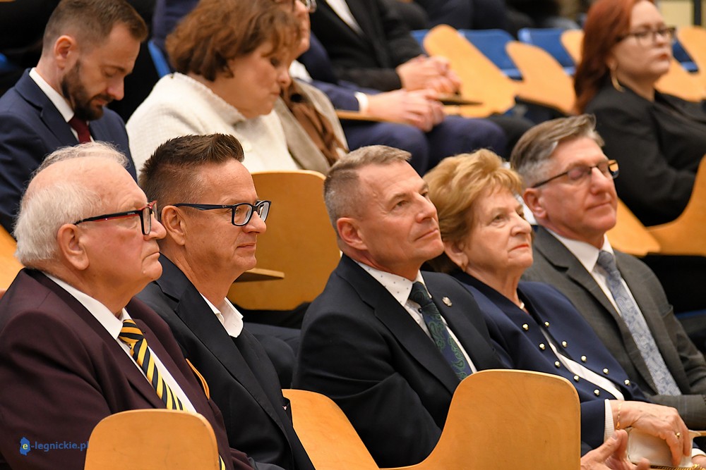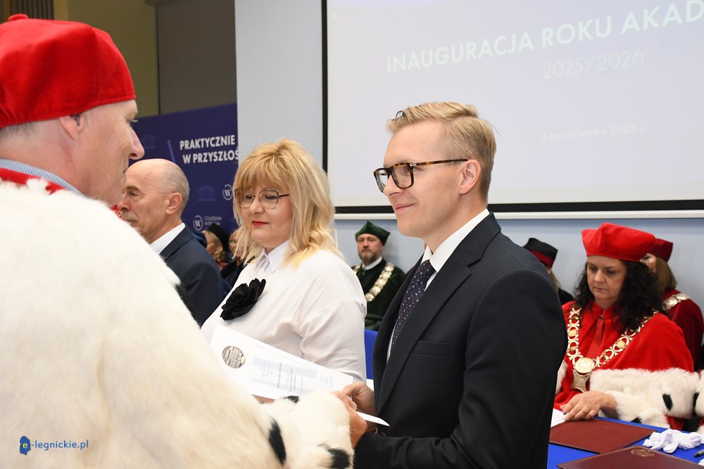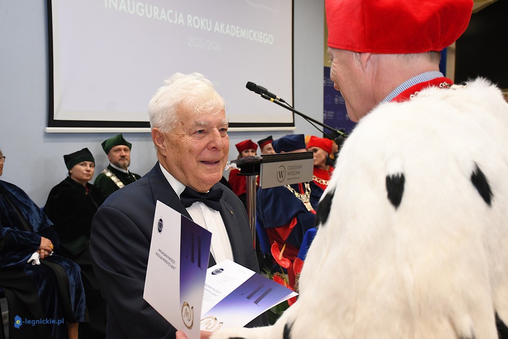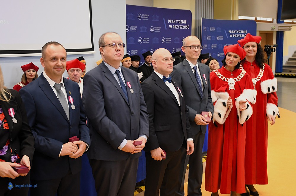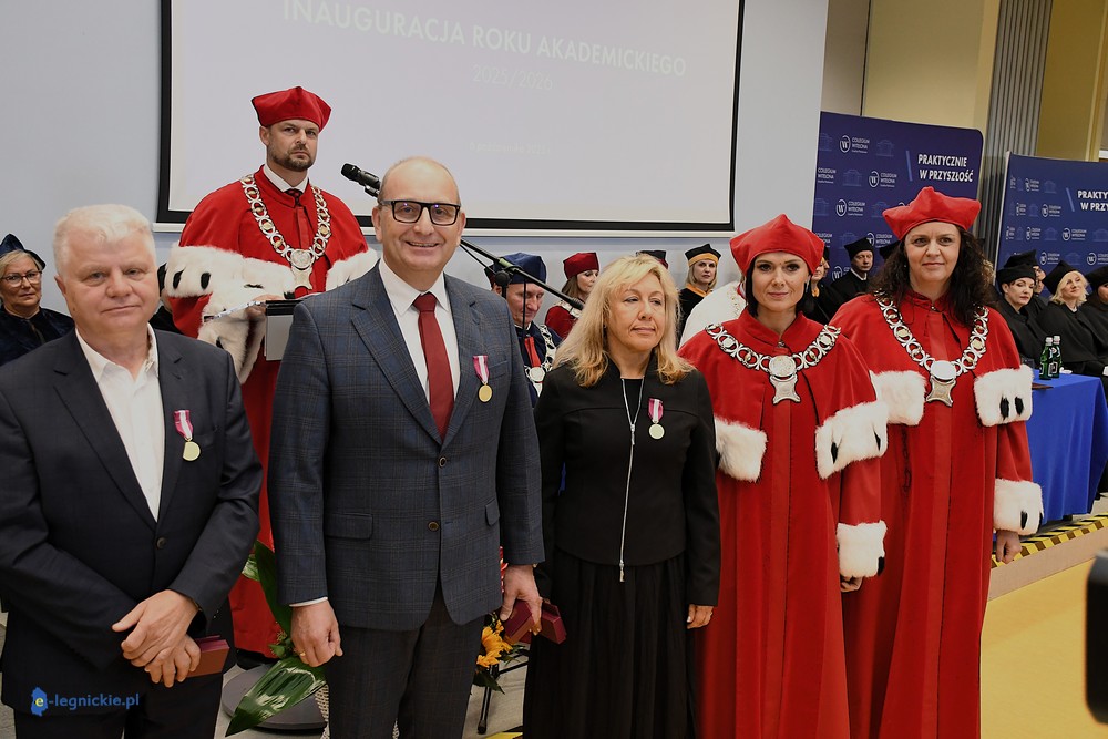 LEGNICA. W Centrum Konferencyjno-Widowiskowym Collegium Witelona Uczelnia Państwowa odbyła się uroczysta Inauguracja Nowego Roku Akademickiego 2025/2026. W wydarzeniu wzięli udział parlamentarzyści (dr Tadeusz SAMBORSKI). włądz wojewódzkich z wicewojewodą Arturem JURKOWSKIM, przedstawiciele władz samorządowych regionu (starosta Powiatu Jaworskiego Michał BANDER w towarzystwie Joanny PIOTROWICZ-DĘBICKIEJ), władze Powiatu Legnickiego ze starostami Adamem BABUŚKA i Janiną MAZUR, burmistrz Złotoryi Paweł KULIG, wójt gminy Paszowice Sebastian OSZCZĘDA, burmistrz Chojnowa Jan SERKIES, świata gospodarki (Piotr STRYCZEK, wiceprezes zarządu KGHM Polska Miedź oraz wiceprezes Fundacji Polska Miedź Grzegorz STYRKOWIEC), świata nauki, biznesu oraz studenci i pracownicy uczelni. Nie zabrakło prezesa LSSE dr Kajetana BATORA czy prezesów ARLEG-u. Z zażenowanie przyjęto fakt nieobecności przedstawicieli Ratusza w Legnicy...