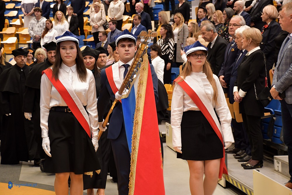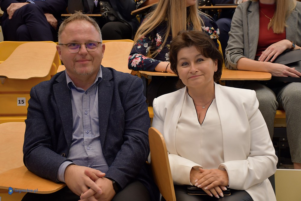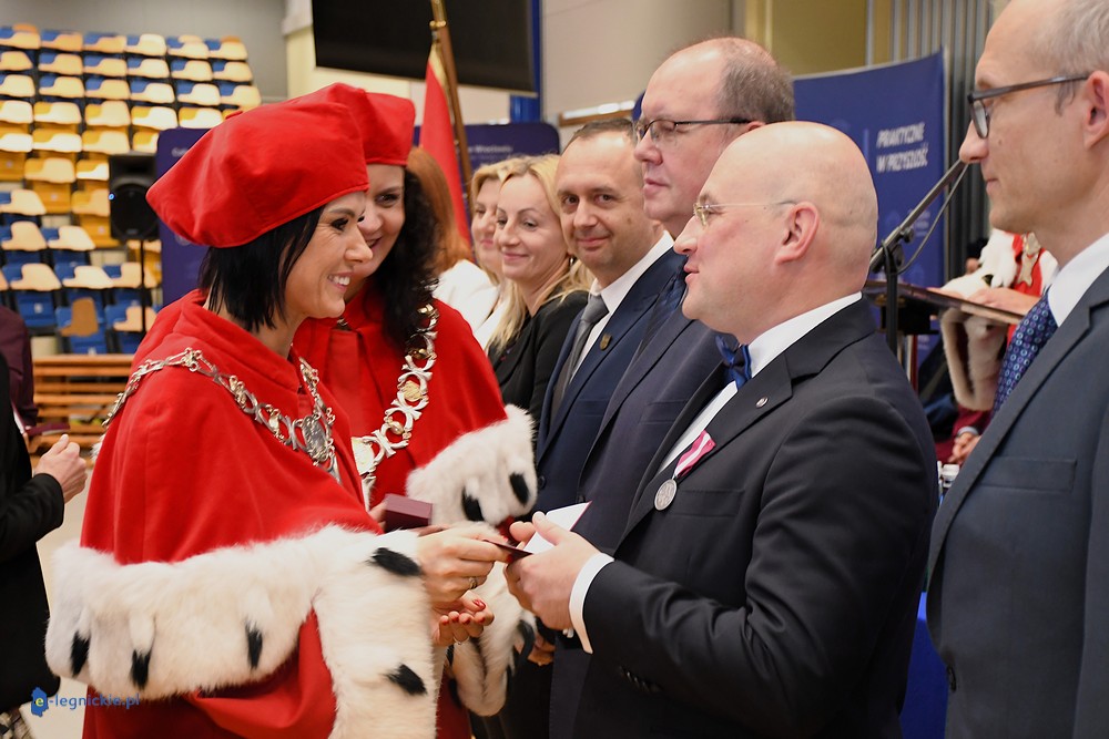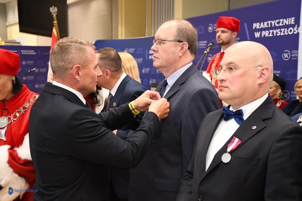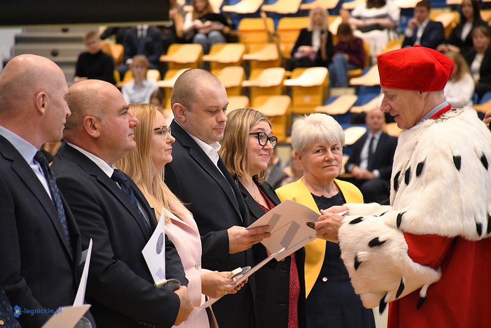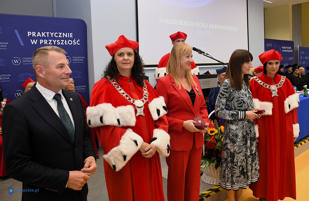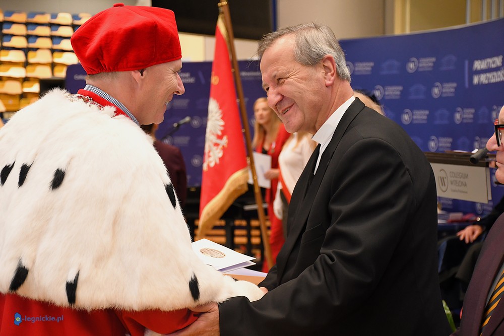LEGNICA. W Centrum Konferencyjno-Widowiskowym Collegium Witelona Uczelnia Państwowa odbyła się uroczysta Inauguracja Nowego Roku Akademickiego 2025/2026. W wydarzeniu wzięli udział parlamentarzyści (dr Tadeusz SAMBORSKI). włądz wojewódzkich z wicewojewodą Arturem JURKOWSKIM, przedstawiciele władz samorządowych regionu (starosta Powiatu Jaworskiego Michał BANDER w towarzystwie Joanny PIOTROWICZ-DĘBICKIEJ), władze Powiatu Legnickiego ze starostami Adamem BABUŚKA i Janiną MAZUR, burmistrz Złotoryi Paweł KULIG, wójt gminy Paszowice Sebastian OSZCZĘDA, burmistrz Chojnowa Jan SERKIES, świata gospodarki (Piotr STRYCZEK, wiceprezes zarządu KGHM Polska Miedź oraz wiceprezes Fundacji Polska Miedź Grzegorz STYRKOWIEC), świata nauki, biznesu oraz studenci i pracownicy uczelni. Nie zabrakło prezesa LSSE dr Kajetana BATORA czy prezesów ARLEG-u. Z zażenowanie przyjęto fakt nieobecności przedstawicieli Ratusza w Legnicy...
