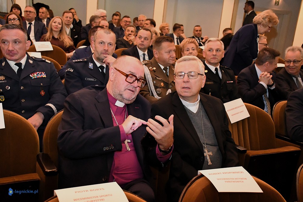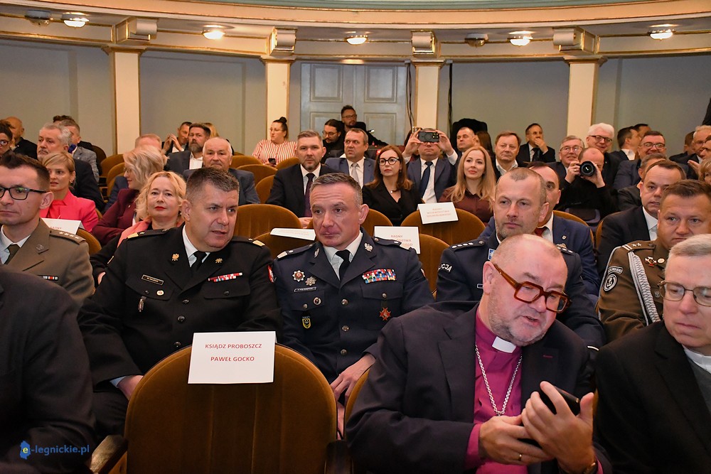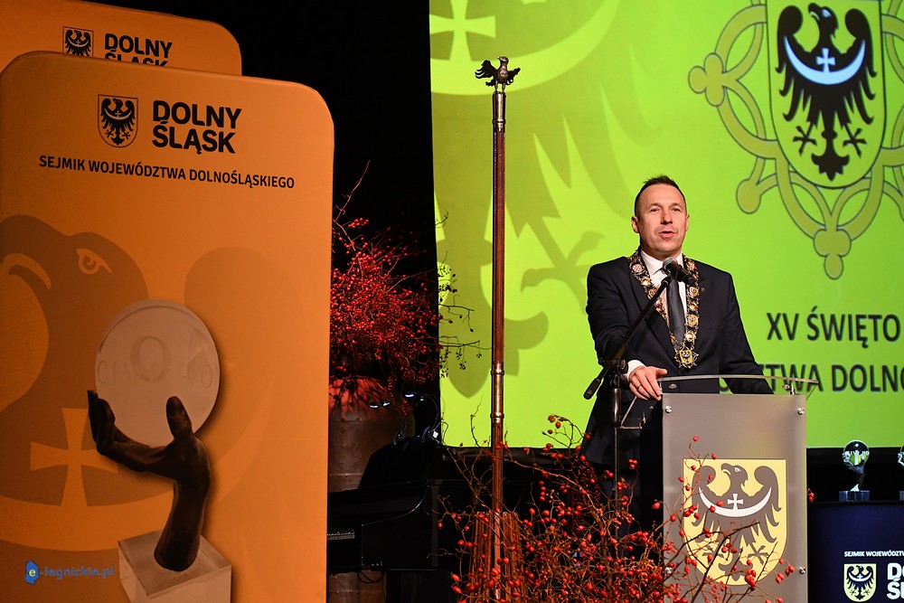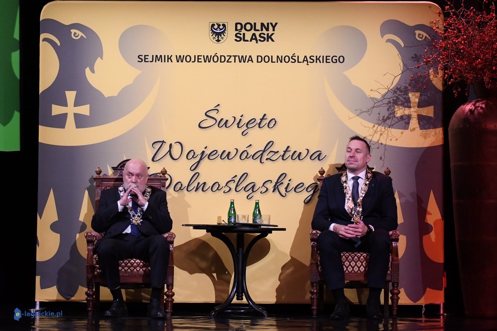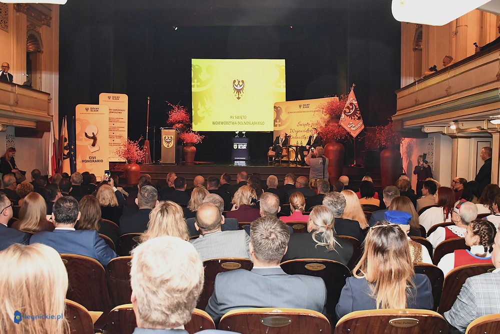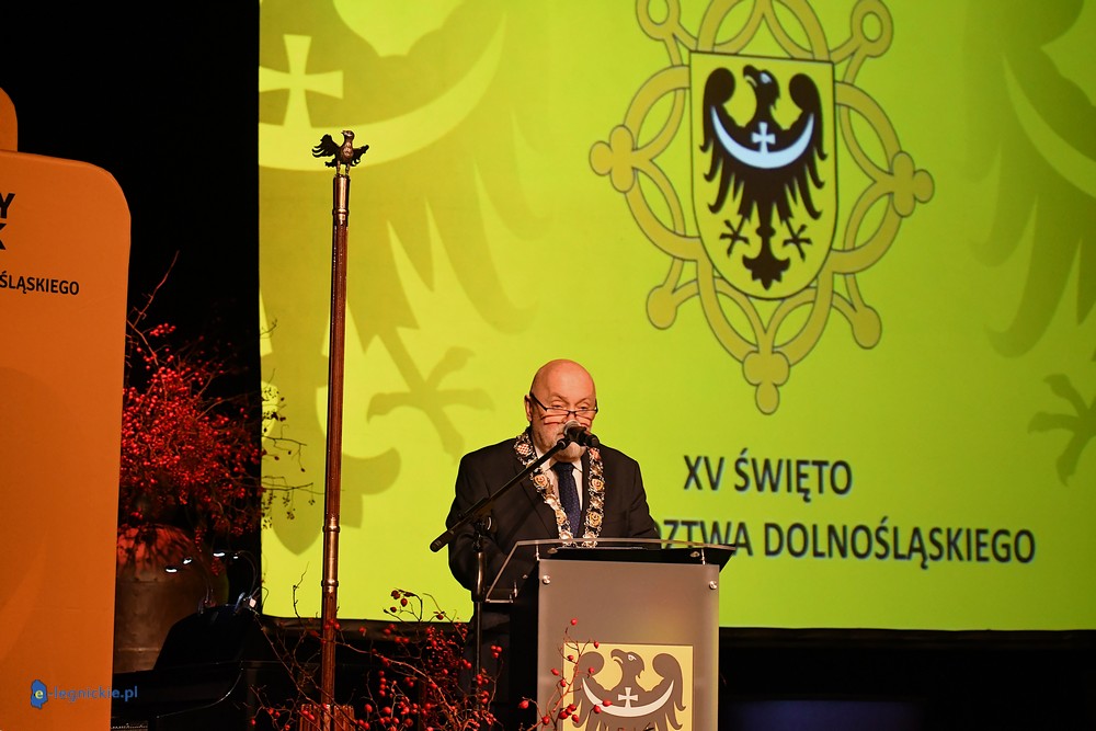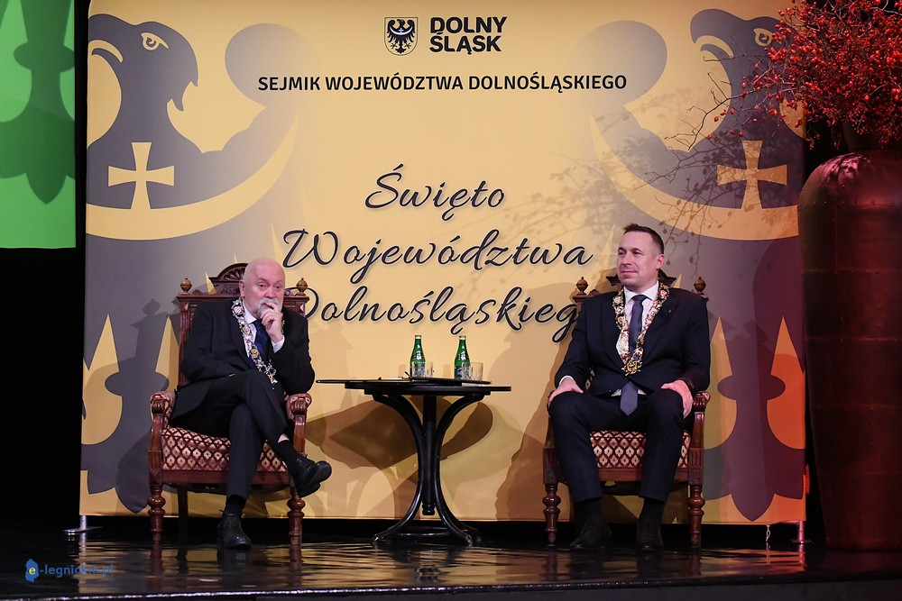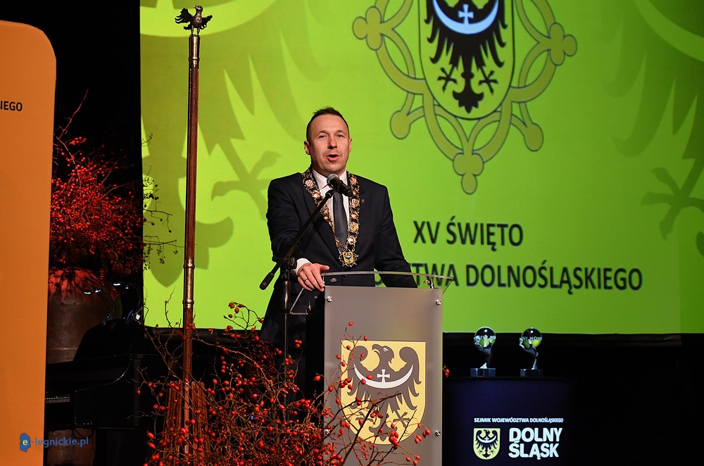 LEGNICA. Jerzy Pokój - Przewodniczący Sejmiku Województwa Dolnośląskiego otworzył uroczystą sesję Sejmik Województwa Dolnośląskiego...Dzisiaj w Legnicy obchodzimy Święto Dolnego Śląska. W tym roku połączone z 80 - leciem przyłączenia piastowskiego Dolnego Śląska do Polski. W Teatrze im H. Modrzejewskiej odbyła się uroczysta sesja sejmiku podczas której wręczono tytuły Civi Honorario. Legnica nieprzypadkowo została wybrana na miejsce celebrowania tak ważnej rocznicy. To właśnie w tym mieście tuż po wojnie miały siedzibę władze wojewódzkie- przypomniał Paweł Gancarz, marszałek Dolnego Śląska: