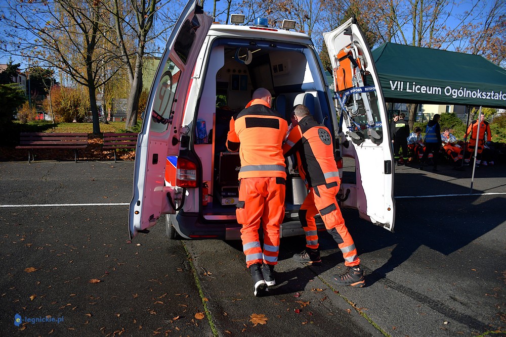 LEGNICA. W godzinach porannych na terenie VII Liceum Ogólnokształcącego w Legnicy odbyły się kompleksowe ćwiczenia z obrony cywilnej, zorganizowane przez Wydział Bezpieczeństwa i Zarządzania Kryzysowego Urzędu Miasta Legnicy. Wzięły w nich udział służby mundurowe – straż pożarna, policja, straż miejska oraz pogotowie ratunkowe – a także dyrektorzy legnickich szkół podstawowych i ponadpodstawowych, którzy obserwowali przebieg działań. Celem ćwiczeń było doskonalenie procedur ewakuacji i reagowania w sytuacjach kryzysowych w placówkach oświatowych.