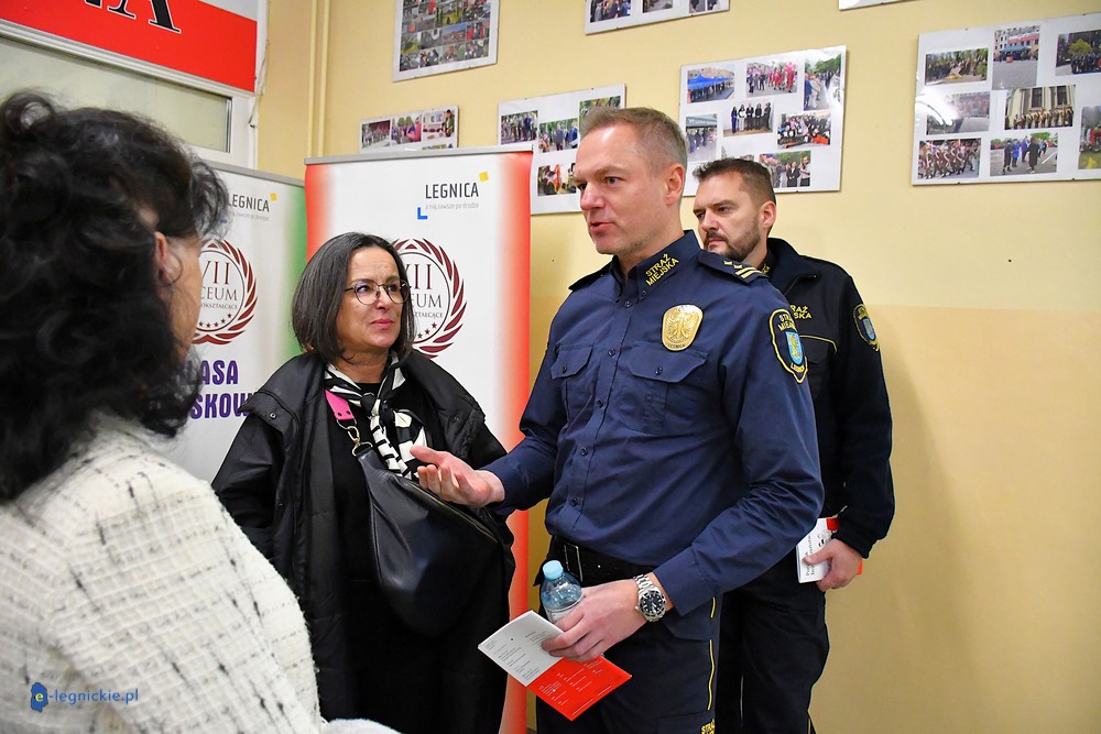 Doświadczeniem z podobnych działań podzielił się także dyrektor Zespołu Szkół Samochodowych w Legnicy Grzegorz GARGAŚ, który bacznie przyglądał się wzorcowej organizacji ewakuacji w VII LO:
