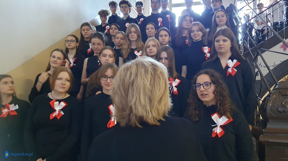 LEGNICA. Niech żyje Polska! Niech żyje Polska! - skandowali dziś uczniowie II Liceum Ogólnokształcącego w Legnicy, zaraz po tym, jak wspólnie ze szkolny m chórem odśpiewali hymn i Rotę. Tym samym placówka włączyła się w ogólnopolską akcję"Szkoła do Hymnu", organizowaną z okazji Narodowego święta Niepodległości.