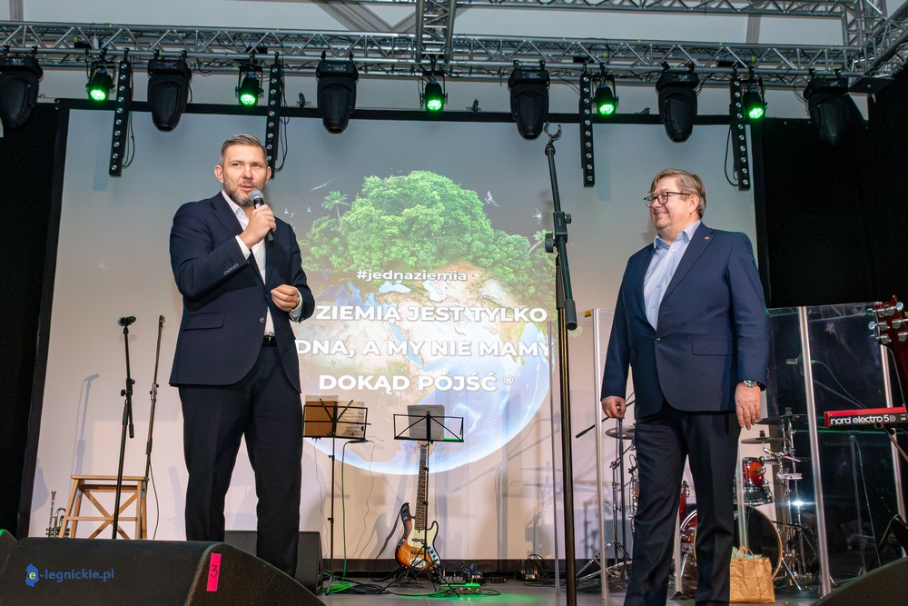 LEGNICA. LPGK i Legnickie Wodociągi zorganizowały Spektakl Muzyczny „Jedna Ziemia” w którym mieszkańcy mogli najpierw zapoznać się z kabaretem Eko-Resocjalizacja dotyczącym edukacji ekologicznej a później posłuchać koncertu tego zespołu wraz z gościem specjalnym Jackiem Krzaklewskim a zespołu Perfect.