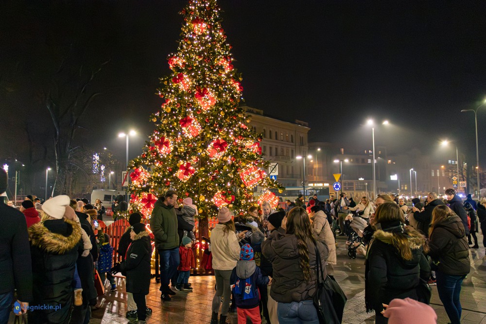 LEGNICA. Miasto rozbłysnęło już świątecznym blaskiem. Na placu Słowiańskim stanęła piękna choinka, a świąteczne dekoracje pojawiły się także na rynku. Nie zabrakło tradycyjnych elementów, które od lat cieszą oko legniczan.