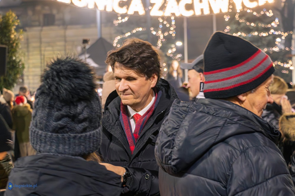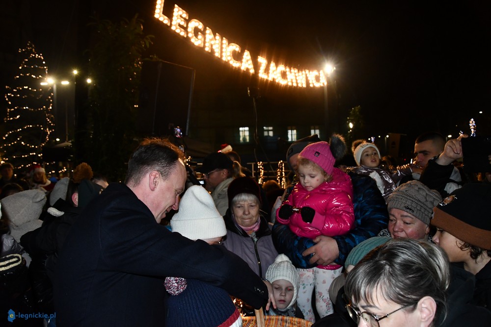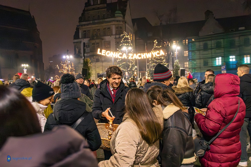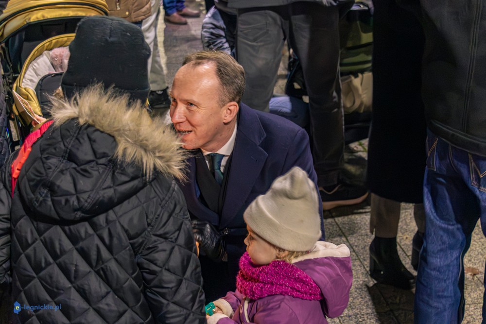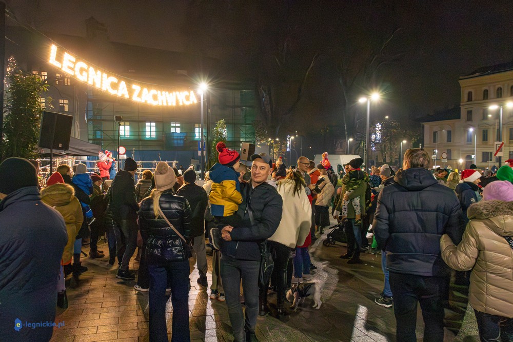 Podczas inauguracji świateł, na scenie pod napisem "Legnica zachwyca" odliczanie rozpoczął prezydent miasta Maciej Kupaj. Po chwili wszystkie elementy już świeciły: bombka, ramka, karuzela i inne ozdoby, tworząc magiczną, świąteczną atmosferę.
