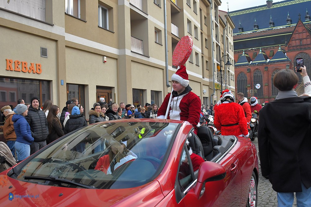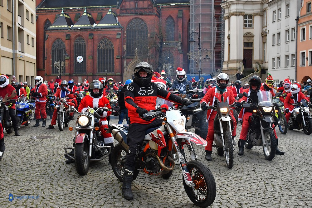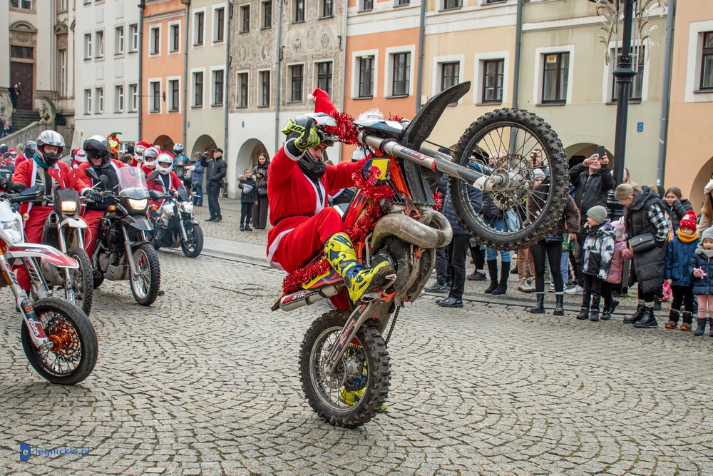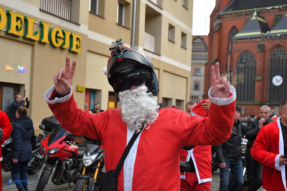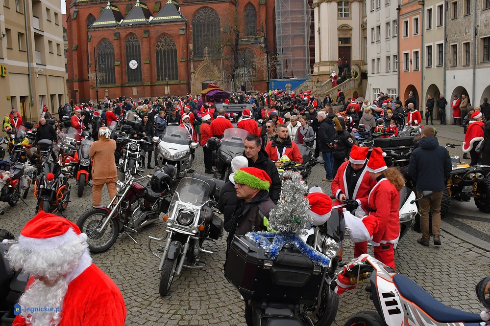 LEGNICA. Na legnicki Rynek dokładnie o godzinie 13 wjechał barwny konwój Św. Mikołaja, złożony z motoryzowanych Mikołajów, elfów oraz kilku zielonych Grinchów. To już szósta edycja cyklicznej imprezy organizowanej przez pasjonatów dwóch kółek – motocyklistów z powiatu legnickiego. Motomikołaje legnickim dzieciom rozdali aż 1200 świątecznych paczek.