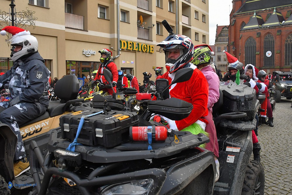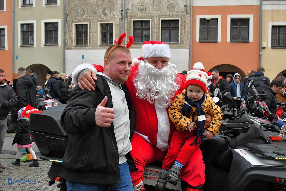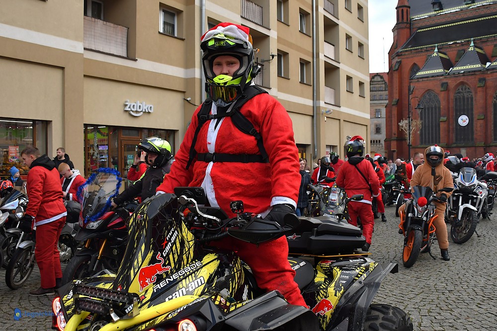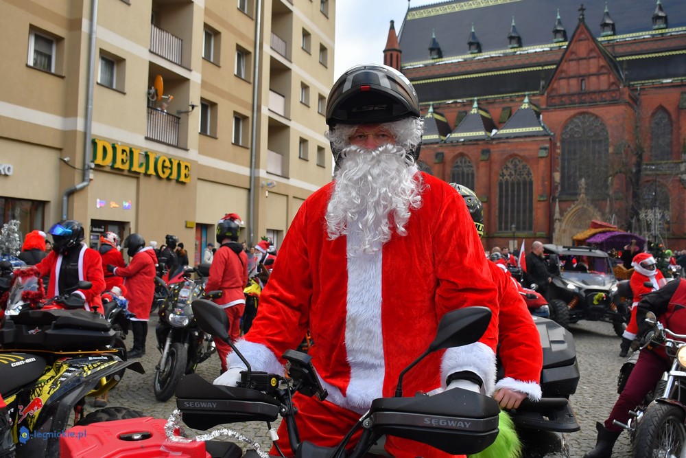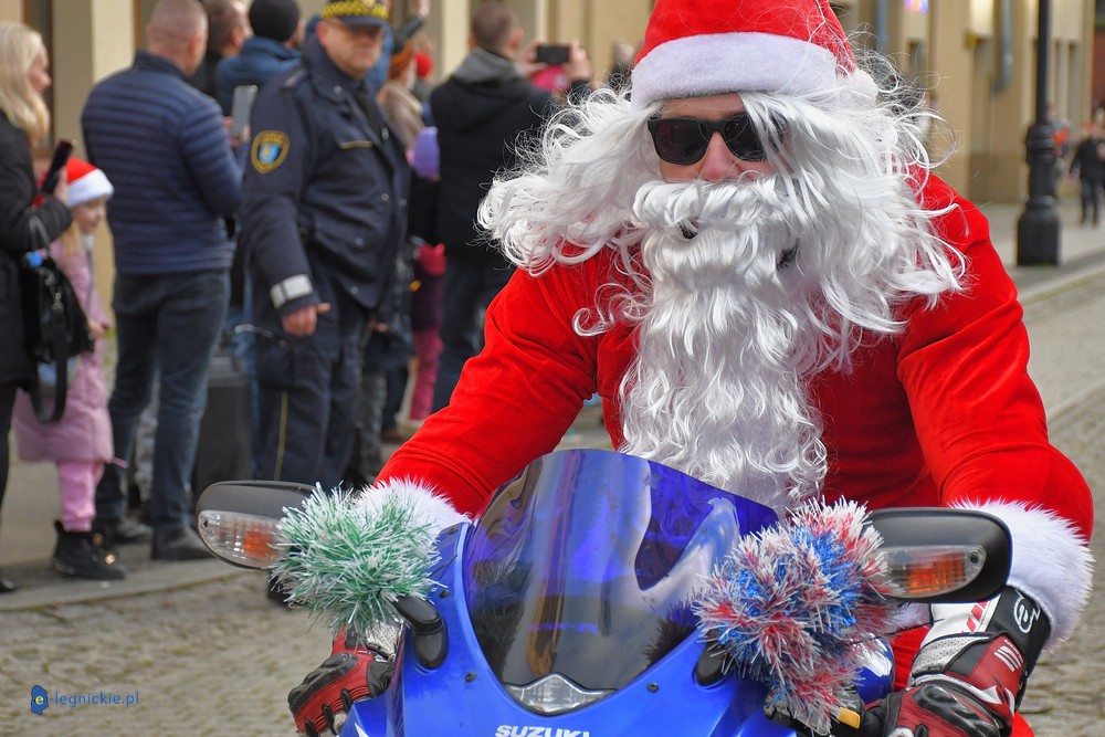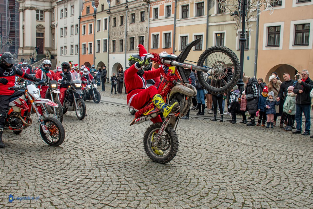 LEGNICA. Na legnicki Rynek dokładnie o godzinie 13 wjechał barwny konwój Św. Mikołaja, złożony z motoryzowanych Mikołajów, elfów oraz kilku zielonych Grinchów. To już szósta edycja cyklicznej imprezy organizowanej przez pasjonatów dwóch kółek – motocyklistów z powiatu legnickiego. Motomikołaje legnickim dzieciom rozdali aż 1200 świątecznych paczek.