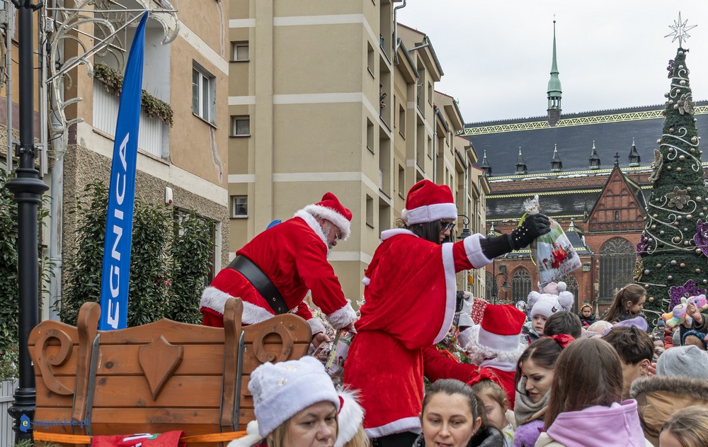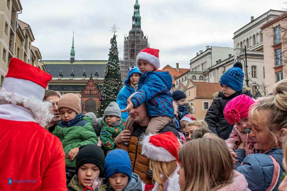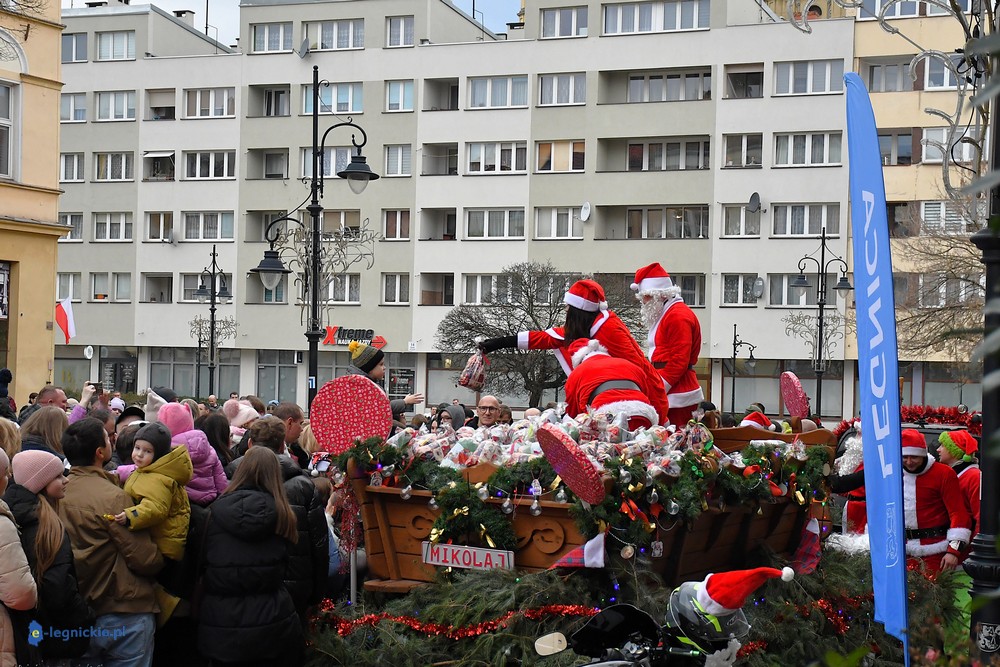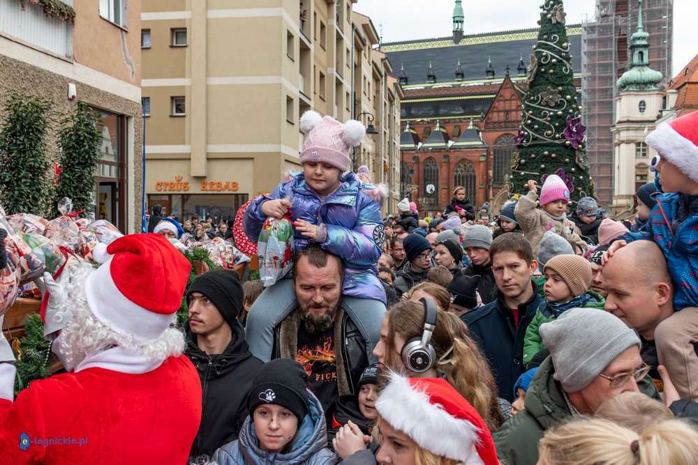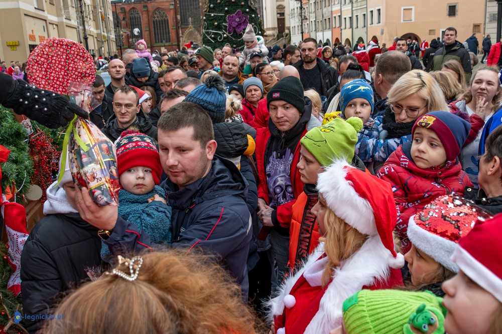 Już przed godziną 13 na legnickim Rynku czekał tłum dzieci w różnym wieku, którym towarzyszyli rodzice i dziadkowie. Na widok jadących Mikołajów najmłodsi reagowali zachwytem, a każdy z nich wracał do domu z upominkiem.
