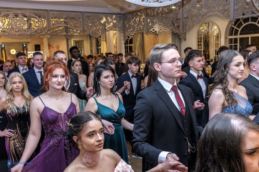 LEGNICA. W Sali Kryształowej przy ulicy Kawaleryjskiej bawiło się 240 maturzystów z siedmiu klas V Liceum Ogólnokształcącego wraz z osobami towarzyszącymi. Tegoroczna studniówka na jeden wieczór zamieniła się w prawdziwe święto młodości i elegancji. Piękne, balowe suknie, uroczyście ubrani młodzi ludzie oraz wyjątkowa atmosfera sprawiły, że ten wieczór na długo pozostanie w pamięci uczestników. Ze względu na liczbę par tradycyjnego chodzonego zatańczono dwukrotnie.
