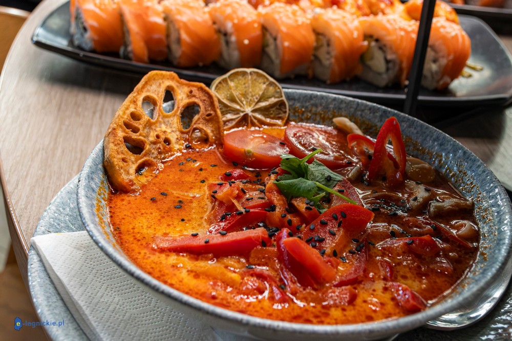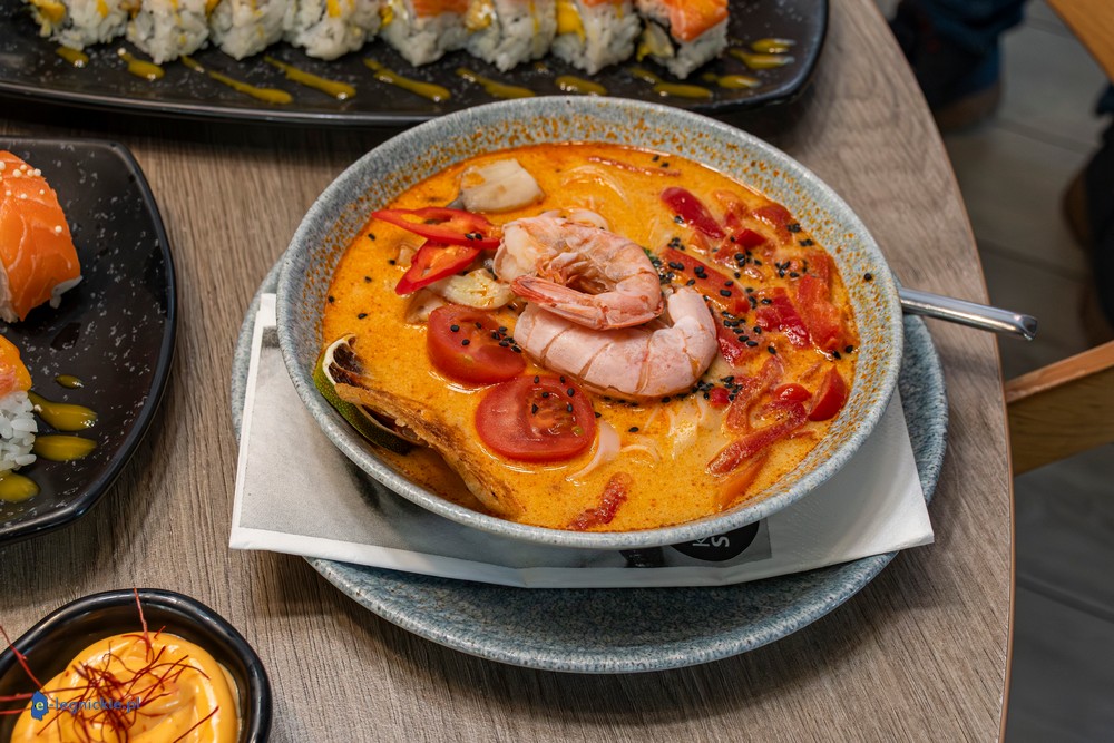 – Zupka tom yum to nowość, ale taka, która trochę powraca po czasie, bo wielu naszych gości pamięta jeszcze zupkę kokosową. Teraz wróciła w nieco innej formie. Są krewetki, świeże warzywa, kolendra i jest gotowana na mleczku kokosowym, więc to jednocześnie smak odświeżający i lekko ostry – mówi Dawid Belka.