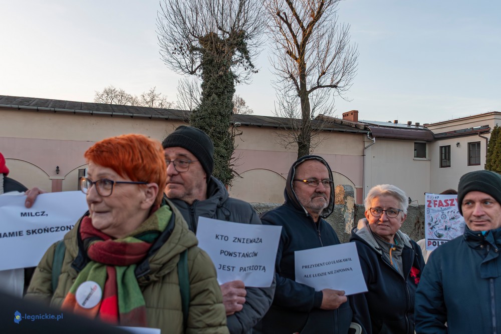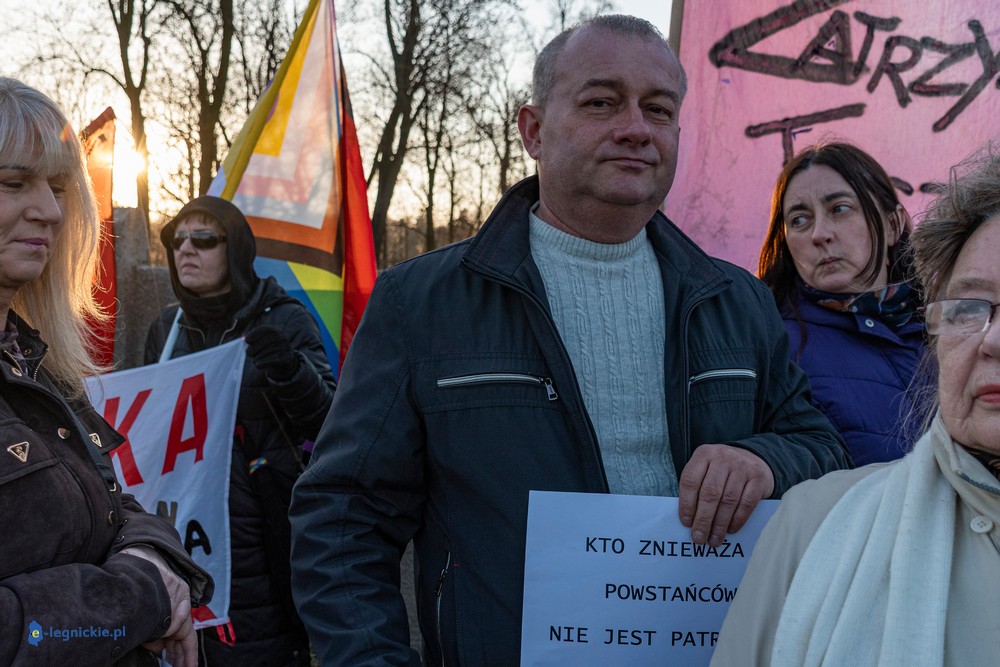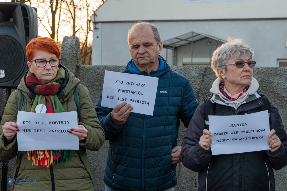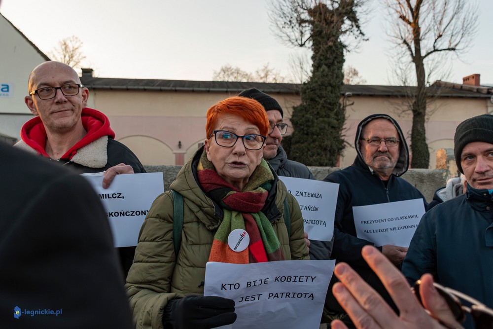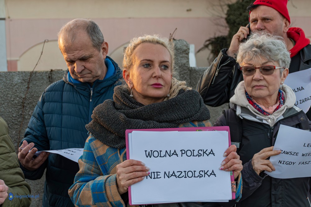 Na miejscu pikiety było wielu policjantów dowodzonych osobiście przez Zastępca Komendanta Miejskiego Policji w Legnicy nadkomisarza Kamila Piaseckiego. I trzeba przyznać, że profesjonalna postawa właśnie policji zarówno służb mundurowanych jak i licznych policjantów operacyjnych po cywilnemu, zapobiegała narastaniu emocji i eskalacji nienawiści. Z grupy pikietujących wylegitymowano i spisano dwie osoby: jeden z protestujących był wbrew ustawie o zgromadzeniach zamaskowany, a drugi - co jest niepokojące i godne potępienia - kierował groźby karalne pod adresem Joanny Śliwińskiej-Łokaj.