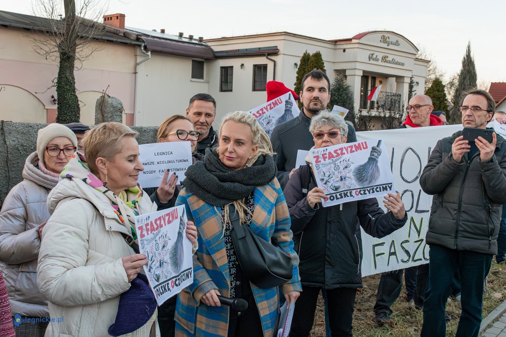 Pikietujący - w tym radne legnickiej Rady Miejskiej Katarzyna Odrowską, Radosława Janowską-Lascar i Bogusława Wszelaka - mieli ze sobą transparenty z hasłami jak "Precz z faszyzmem". Poza artykułowaniem swojego sprzeciwu przeciwko wizycie polityka uznawanego przez protestujących za faszystę, niestety ponownie wylano kubły hejtowskich "pomyj" na Joannę Śliwińska-Łokaj, radną i przede wszystkich właścicielkę Magnolii. W pewnym momencie pikieta stała się groteskowa, bo można było odnieść wrażenie, że jest  wymierzona nie w Bąkiewicza lecz w Śliwińską-Łokaj…