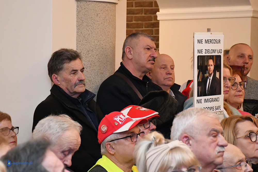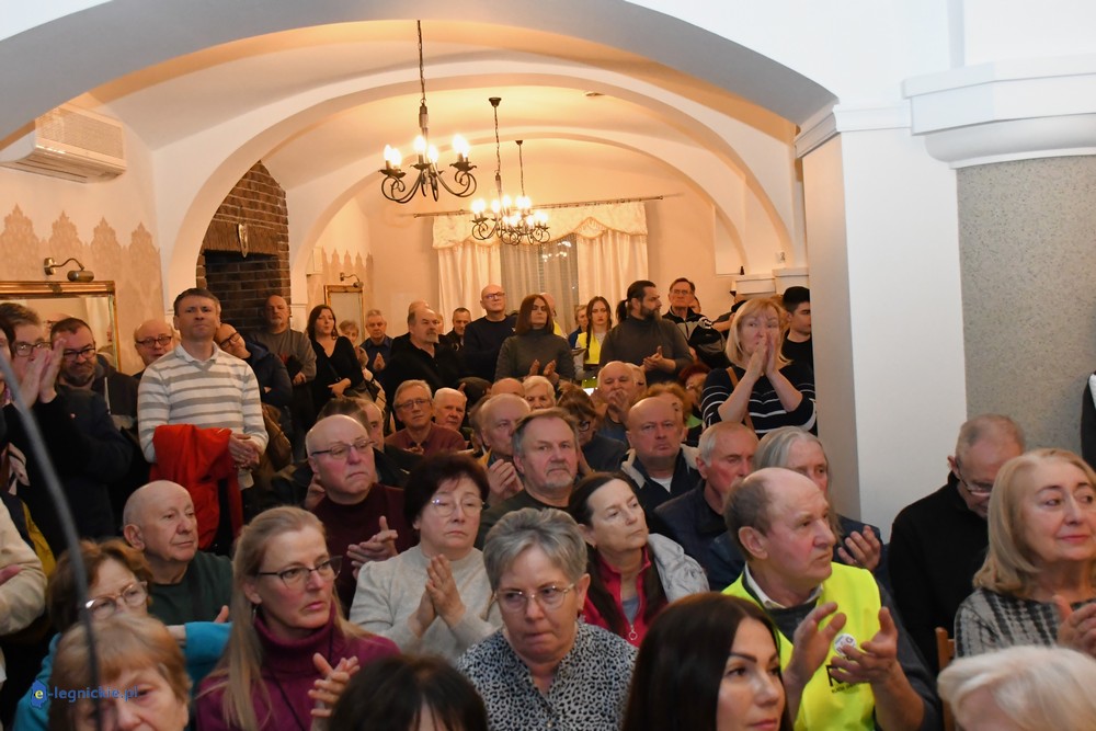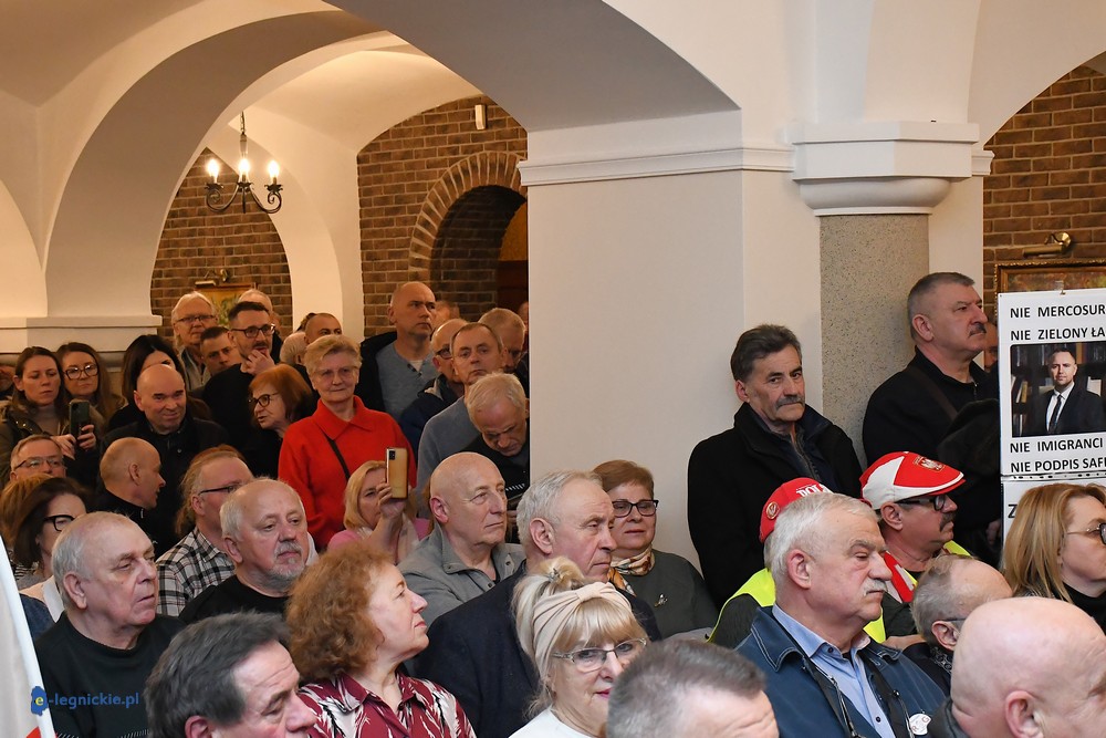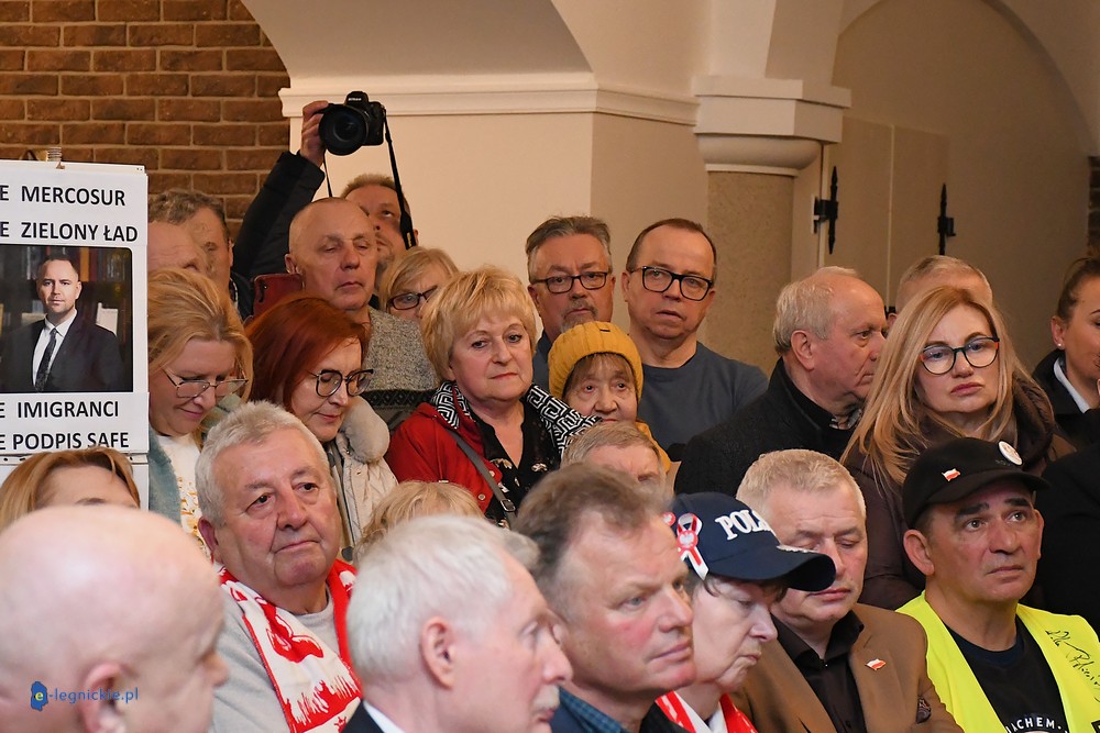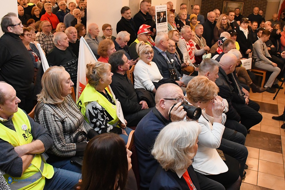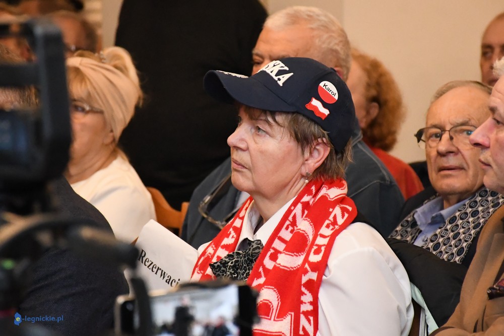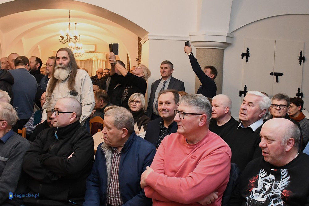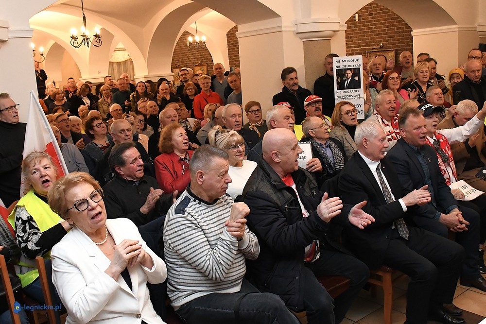 Tymczasem Sala Magnolia wypełniła się po brzegi. Byli prawicowi radni miejscy, politycy spoza Legnicy, byli parlamentarzyści i ponad 600 osób. Tłok, ścisk, duchota trudna do wytrzymania... Zapytaliśmy uczestników spotkania, co sądzą o proteście na zewnątrz lokalu?